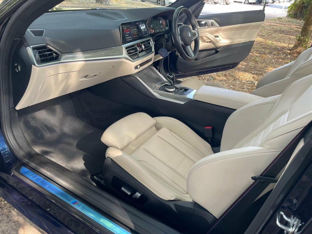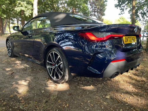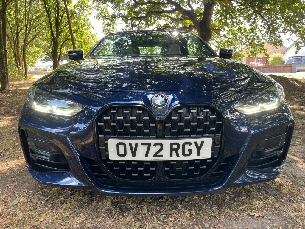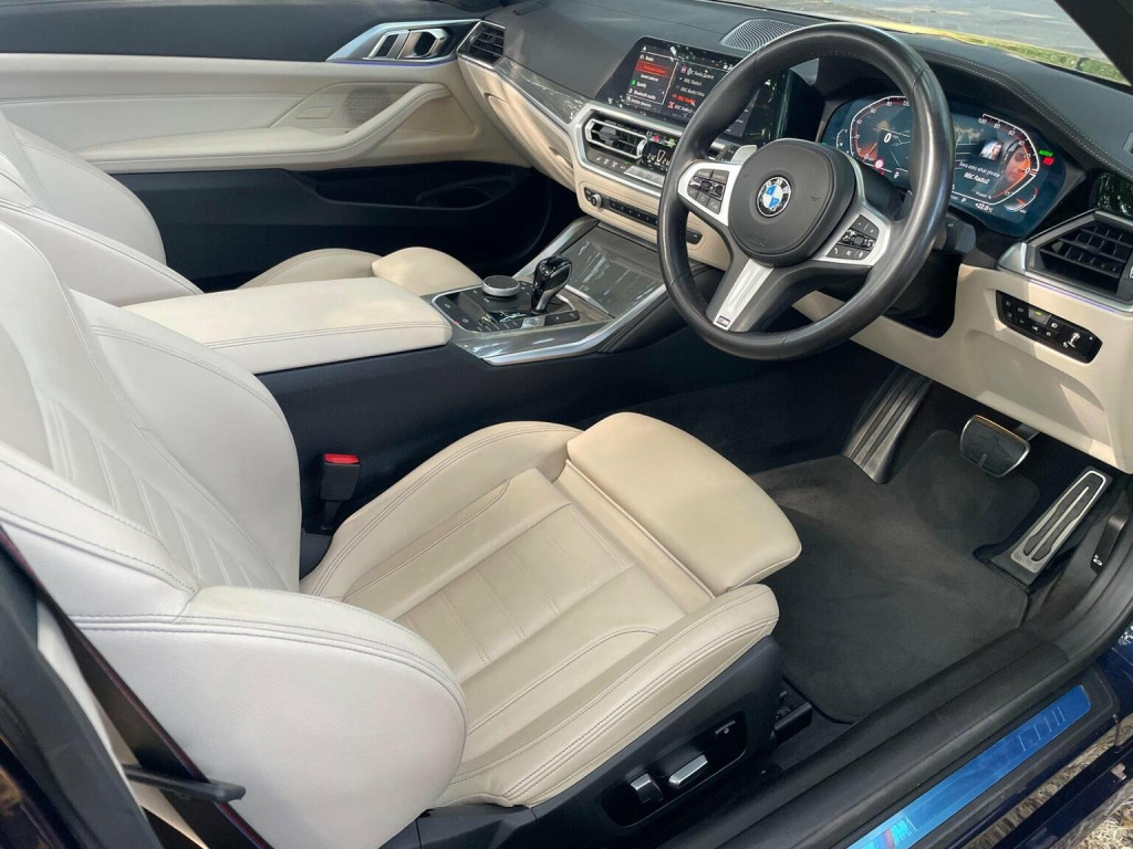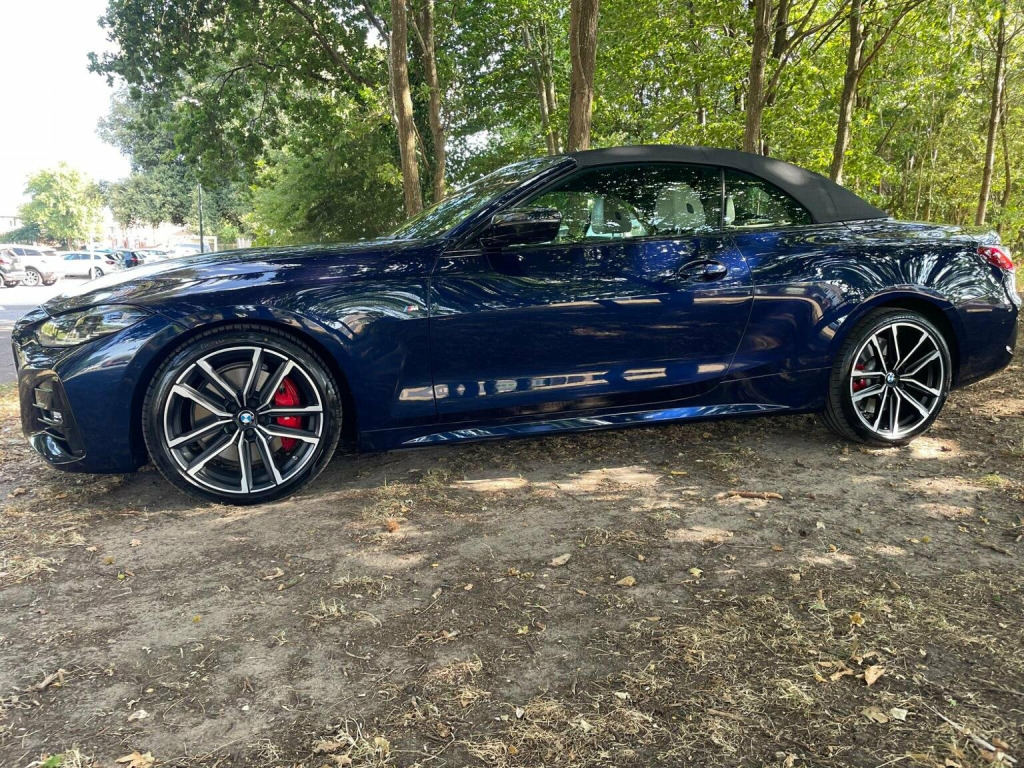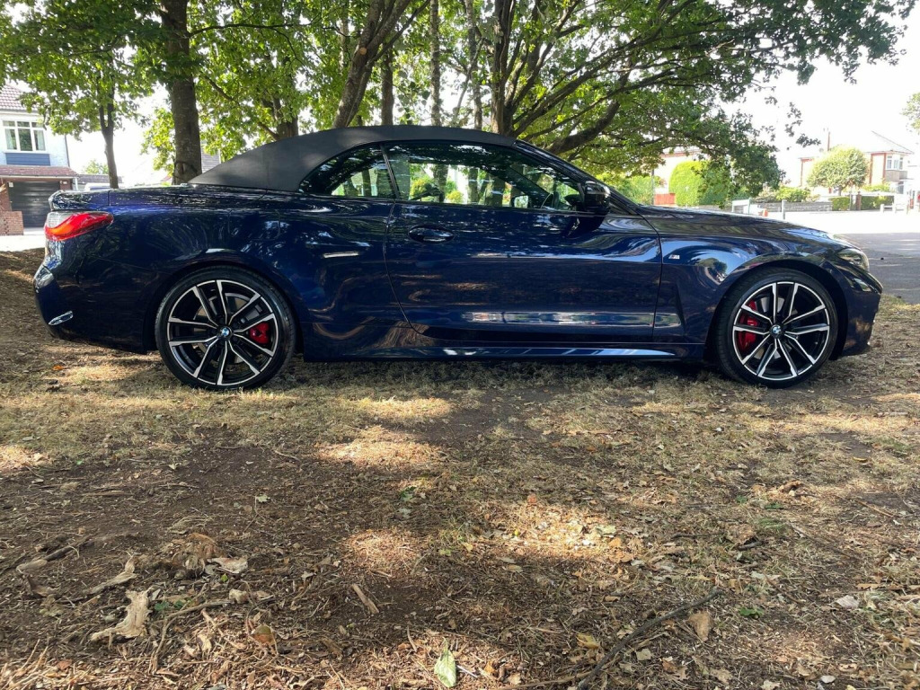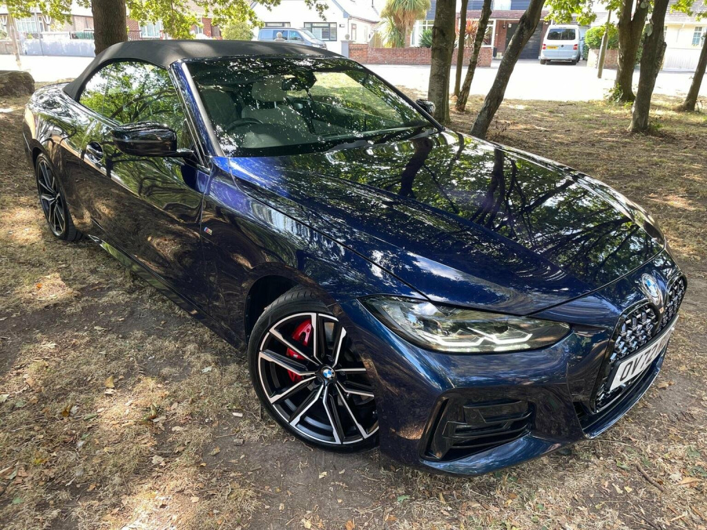 THIS CAR COMES WITH A SERVICE PLAN UNTIL SEPT 2027 UPTO 100,000 KM INCLUDED SO SERVICING IS INCLUDED WITH BMW UNTIL THIS DATE. IT WAS A BMW MANAGERS CAR FOR 7 MONTHS AND 1 PRIVATE OWNER (WHO I PURCHASED IT FROM LOCALLY IN BOURNEMOUTH) SINCE THEN . THIS STUNNING M SPORT PRO EDITION STANDS OUT FROM THE CROWD IN THE MOST AMAZING TANZINITE PEARL BLUE WITH OYSTER SPORTS LEATHER. With a full dealership service history and a clear vehicle check, this 2022 BMW 4 Series 430d M Sport Pro Edition is a sound choice. This vehicle is equipped with a 3.0L Diesel Hybrid engine and meets Euro 6 emission standards. The M Sport Pro Edition trim adds a touch of sporty sophistication. Enjoy the open air with its Anthracite soft-top featuring silver flecks, and stay comfortable with automatic three-zone air conditioning, including independent rear controls, and heated seats for both the driver and front passenger. Adaptive LED headlights provide excellent visibility, and the BMW Connected Package Professional keeps you connected with Android Auto and Apple CarPlay integration. This BMW 4 Series stands out with its large boot space, offering practicality beyond its sleek design. It also benefits from a low insurance group, potentially saving you money on your premiums. For peace of mind, it comes with a 6-month warranty and MOT UNTIL 12/10/2026 ensuring its road-worthy and ready to drive away.IT IS AN AMAZING OPPORTUNITY TO PURCHASE THIS AMAZING CAR AT A GOOD PRICE WITH WARRANTY FOR FULL PEACE OF MIND SO CALL TONY ON 07831862654 TO ARRANGE A VIEWING AT MY BOURNEMOUTH SHOWROOM OF OVER 35 YEARS . A J AUTOS 970 WIMBORNE ROAD MOORDOWN BOURNEMOUTH BH92DF . I AM FCA REGISTERED AND REGULATED.IF REQUIRED I CAN OFFER 3RD PARTY FINANCE HP/PCP FROM 8.9% APR SUBJECT TO STATUS AND CONDITIONS WITH MOTONOVO FINANCE .PART EXCHANGE IS WELCOME. ALSO VISIT THIS CAR AT MY WEBSITE ajautos.com WITH FINANCE CALCULATOR .