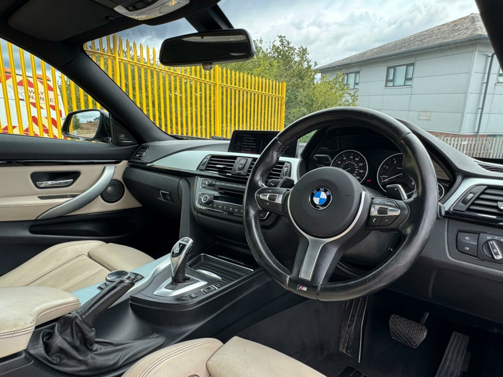With only three previous owners, this 2014 BMW 4 Series 435d M Sport is a fine example of a performance vehicle. The M Sport trim adds sporty styling and performance enhancements to this four-wheel drive coupe. It features a 3.0L diesel engine and meets Euro 6 emission standards. The vehicle is equipped with adaptive M Sport suspension for enhanced handling, and it rides on stylish 19-inch M Star Spoke alloy wheels. The interior offers practicality with 40-20-40 split-folding rear seats and a premium audio experience thanks to the Harman Kardon speaker system, which includes a branded sound system. Enhanced Bluetooth telephone preparation with USB audio interface and voice control is also included.This BMW 4 Series stands out with its impressive acceleration, reaching 0-62mph in just 4.7 seconds, showing its exceptional performance capabilities. It also benefits from a low insurance group, potentially saving you money on premiums compared to similar vehicles. The large boot space adds to its practicality, making it more versatile than other coupes in its class. v power socket in front centre console and passenger footwell, 18in alloy wheels - light m star spoke style - 441m, 6.5in colour display screen, abs - anti lock braking system, asc - automatic stability control, air conditioning - automatic - dual zone control, air conditioning and radio control panel in high gloss, air microfilter, airbags - curtain, airbags - driver, airbags - front side, airbags - passenger, airbags - passenger deactivation, alarm system thatcham 1 with remote control, ambient lighting - switchable bmw classic orange - white, armrest - front with storage compartment, armrest - rear centre, automatically dimming rear view mirror, auxiliary input, bmw emergency call, bmw navigation system, bmw professional radio - single cd and mp3, bmw teleservices, battery safety cut off, bluetooth hands free with usb audio interface, bottle holders - front door storage compartments, brake assist, brake drying, brake pad wear indicator, brake pre-tensioning, bumpers - body colour, cbc - cornering brake control, central locking - remote, check control warning system, child seat isofix attachment - rear, comfort go keyless engine start, crash sensor - activating central locking release, cruise control with brake function, cup holders - front x2, dab digital radio, dbc - dynamic brake control, dsc - dynamic stability control plus, dtc - dynamic traction control, daytime running lights, door handles - body colour, door mirrors - body coloured, door mirrors - electric and heated, door sill finishers - bmw designation, drive performance control with comfort-sport and sport modes, dynamic brake lights, electric windows - front open and close fingertip control, electronic differential lock, extended lighting, exterior trim - high-gloss shadowline, first aid kit, floor mats - velour, follow me home headlight function, front fog lights, gearshift lever with m designation, glove box opener with chrome trim, grab handles - in roof lining x4, handbrake lever - gear lever knob and gaiters in leather, headlights - automatic activation, headlights - washer system, headlining - anthracite, heat protection glazing with green tint, heated windscreen washer jets, height adjustable drivers seat - manual, height adjustable passenger seat - manual, high level third brake light, hill start assist, interior trim - aluminium hexagon with estoril blue finisher, kidney grille - chrome extra-wide high-gloss black vertical slats, led tailights, luggage compartment - lashing eyes x2, luggage compartment - securing rings x2, m aerodynamic bodystyling, m sport package, m sport steering wheel, media package - bmw business, multifunction controls for steering wheel, navigation system - bmw business advanced, non smokers package, obc - on-board computer, pdc - park distance control - front and rear, pdc - park distance control - rear, power steering - electric with servotronic, rain sensor with automatic headlight activation, run flat tyres, seat adjustment - front electric with driver memory, seats - front heated, shark fin aerial, speakers x6, sport seats - front, steering column with manual reach and rake adjustment, tpws - tyre pressure warning system, tool kit located in luggage compartment, trim finisher - estoril blue - matt, usb audio interface, windscreen with grey shade band, xenon headlights, idrive controller with shortcut buttons, speaker system - harman kardon, 19in alloy wheels - m star spoke - 403m, suspension - adaptive - m sport, enhanced bluetooth telephone preparation with usb audio interface and voice control, sun protection glazing, concierge service, 40-20-40 split folding rear seats, interior trim - brushed aluminium, bmw individual extended merino leather - cashmere beige