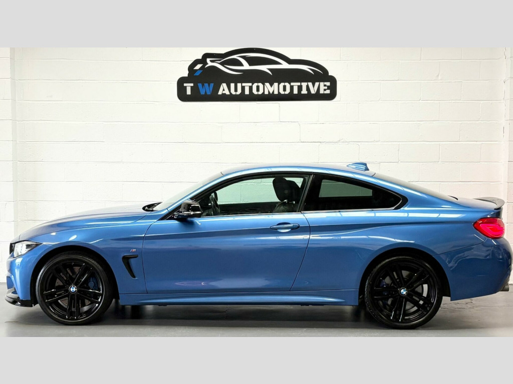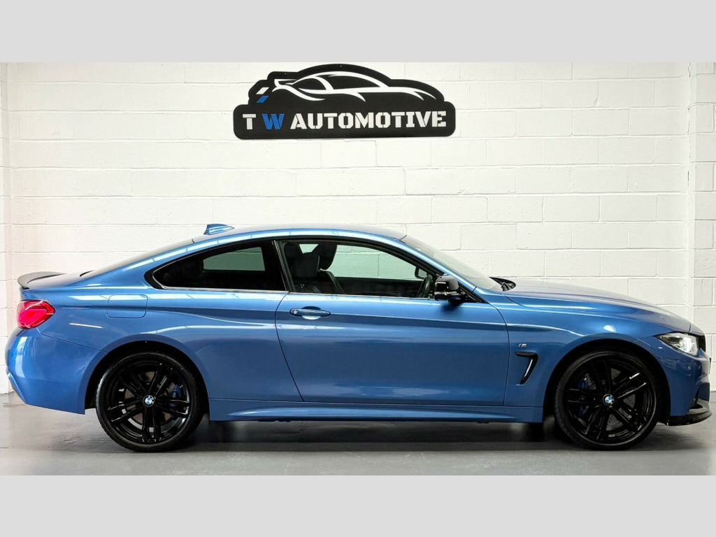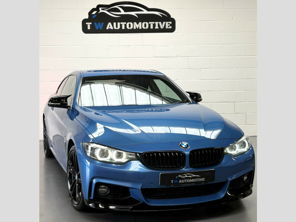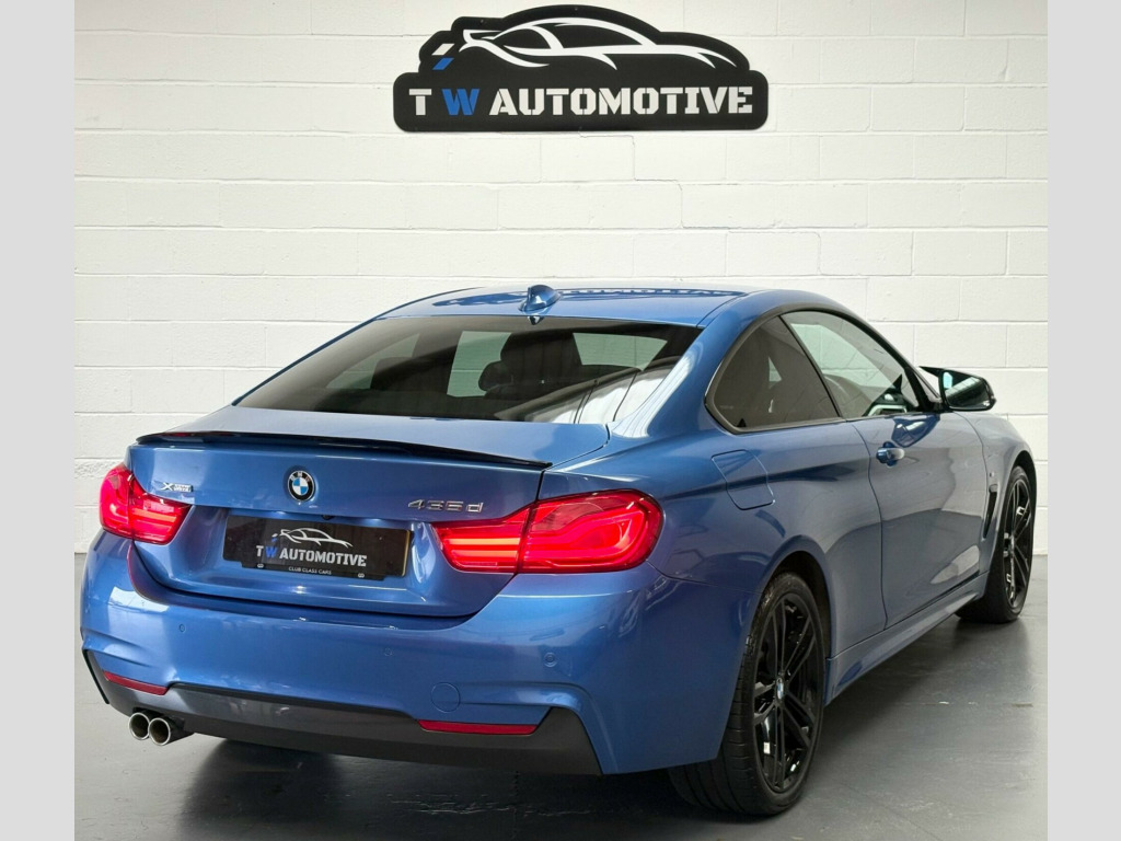 BMW 4 SERIES 3.0 435D M Sport X Drive finished in stunning estoril blue, comes with 18inch unmarked alloy wheels finished in gloss black with good tyres all round. Our example boasts a full seevice history including 6 services and wjll also be serviced prior to sale, along with a new MOT. High specification car including full black dakota leather, heated seats, pro navigation, M sport plus package, 19inch alloys, reverse camera, harmon kardon, parking distance control front and rear, cruise control plus more! Really standa out with refined M performance front splitter, gloss black mirror caps and kidney grill and M performance rear spoiler. In great consideration throughout and must be seen and driven to be appreciated! WILL COME WITH 12 MONTHS MOT, ALL MAJOR DEBIT AND CREDIT CARDS ACCEPTED sport plus package, dynamic package, loudspeaker system - harman kardon, m sport braking system, adaptive m sport suspension, reversing assist camera, exterior mirrors - electrically folding with anti dazzle, sun protection glazing, apple carplay preparation, variable sport steering, steering wheel - heated, high-beam assistant, 19in alloy wheels - m double spoke style 704m - bi-colour orbit grey, interior trim - brushed aluminium with black high-gloss trim finisher, dakota leather - black with oyster highlights with black interior, 19in alloy wheels - m double spoke style 704m, dakota leather - black with black interior, 12v power socket in front centre console and passenger footwell, 18in alloy wheels - m double spoke - 400m, air breather - black high gloss, air conditioning - automatic with two-zone control, air conditioning and radio control panel in high gloss black, airbags, alarm system - thatcham 1 with remote control and engine immobiliser, ambient lighting - switchable bmw classic orange - cold white - led, armrest - front - folding with storage compartment, bmw connecteddrive online services, bmw emergency call, bmw professional navigation, bmw teleservices, battery safety cut off, bluetooth hands-free facility with usb audio interface and audio streaming, bottle holders integrated into door trim storage compartments - front - up to 1 litre, brake pad wear indicator - front and rear, bumper system front and rear - replaceable deformation elements for impacts up to 9mph, central locking switch - doors - fuel filler cap - luggage compartment, centre armrest for rear seats - include two cup holders, centre console - panel highlight in chrome, check control warning system for monitoring of lights and door-luggage compartment open warning, child seat isofix attachment - rear with passenger airbag deactivation, condition based service, crash sensor, cruise control with brake function, cup holders - two in front with sliding lid, dab digital radio, dsc - dynamic stability control plus, direction indicator - side repeaters - integrated in exterior mirrors, direction indicator lenses - led, door sill finishers - m designation, dynamic brake lights, eps - electric power steering, electric windows - front with open-close fingertip control - anti-trap facility and comfort closing function, exhaust tailpipes - dual left - with chrome finisher, extended lighting, exterior mirrors - heated - electrically adjustable, exterior parts in body colour, exterior trim - high-gloss shadowline, first aid kit and warning triangle, floor mats - velour, full black panel display, glove compartment, glove compartment - opener with chrome trim, handbrake lever - gear knob in leather, headlining - anthracite, heat protection glazing with green tint, high level third brake light, incorrect fuelling protection system, instrument cluster, integrated rear seat headrests - two, interior lighting - front centre over interior mirror with soft-light and rear centre, interior trim - aluminium hexagon trim finishers with estoril blue matt highlight, kidney grille - chrome with extra wide black - high gloss vertical slats, led front foglights, led headlights, led tailights, lights-on warning by audio warning signal when ignition is switched off, luggage compartment - lashing eyes, luggage compartment - light, m aerodynamic bodystyling, m sport instrument cluster, m sport multi-function leather steering wheel - three-spoke, m sport package, media package - bmw professional, model designation, non smoker package, obc - on-board computer, oil sensor for level and grade - warning by check control system, optimum shift indicator, pdc - park distance control - front and rear, personal profile, rain sensor with automatic headlight activation, real time traffic information, rear suspension - five-link, remote control with integrated key with insert in blue, run flat tyres, seat adjustment - front electric with driver memory, seat belt security check for driver, seat heating for driver and front passenger, seatbelt handover for driver and front passenger - automatic, servotronic steering, shark fin, side armrests - front and rear integrated into door trim, side exterior m designation badges, side impact protection, sport seats - front, start-stop button with comfort go keyless engine start and auto start-stop deactivation button, steering column with manual reach and rake adjustment, storage compartment in rear centre console, sun visors with vanity mirrors and ticket holder, suspension - front aluminium, three-point seat belts - all seats, toolkit located in luggage compartment, twin horns, tyre pressure monitor with a three-level warning strategy, tyres - reduced rolling resistance, visible vin, welcome light, windscreen washer jets - heated, windscreen wipers - two-speed with adjustable intervals, windscreen with grey shade band, idrive controller - 8 favourite buttons