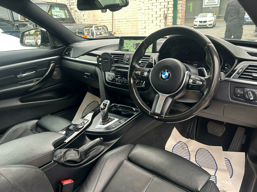 This 2017 BMW 4 Series 435d M Sport stands out with its exceptionally low mileage of just 45,500 miles for its age. This Euro 6 compliant model boasts a powerful 3.0L diesel engine paired with a four wheel drive drivetrain, offering a dynamic driving experience. Inside, you'll find the M Sport trim, featuring a digital cockpit and lumbar support for both the driver and front passenger. The interior is enhanced by BMW Individual Piano Black trim finishers with a pearl chrome highlight, complemented by a premium Harman Kardon loudspeaker system for immersive sound. Furthermore, the adaptive M Sport suspension ensures a refined and engaging ride.The performance of this 435d M Sport is truly impressive, achieving 0-62mph in a rapid 4.7 seconds, demonstrating its superior acceleration compared to similar vehicles. This model also benefits from a low insurance group, making it a more economical choice. Practicality is not overlooked, with generous boot space that provides ample room for luggage or shopping. These combined highlights, from its performance and economy to its comfort and practicality, make this BMW 4 Series a compelling option. sport plus package, loudspeaker system - harman kardon, m sport braking system, adaptive m sport suspension, interior trim - bmw individual - piano black trim finishers with pearl chrome highlight, reversing assist camera, exterior mirrors - electrically folding with anti dazzle, digital cockpit, lumbar support - driver and front passenger, sun protection glazing, high-beam assistant, 19in alloy wheels - m double spoke style 704m - bi-colour orbit grey, dakota leather - black with blue contrast stitching, 12v power socket in front centre console and passenger footwell, 18in alloy wheels - m double spoke - 400m, air breather - black high gloss, air conditioning - automatic with two-zone control, air conditioning and radio control panel in high gloss black, airbags, alarm system - thatcham 1 with remote control and engine immobiliser, ambient lighting - switchable bmw classic orange - cold white - led, armrest - front - folding with storage compartment, bmw connecteddrive online services, bmw emergency call, bmw professional navigation, bmw teleservices, battery safety cut off, bluetooth hands-free facility with usb audio interface and audio streaming, bottle holders integrated into door trim storage compartments - front - up to 1 litre, brake pad wear indicator - front and rear, bumper system front and rear - replaceable deformation elements for impacts up to 9mph, central locking switch - doors - fuel filler cap - luggage compartment, centre armrest for rear seats - include two cup holders, centre console - panel highlight in chrome, check control warning system for monitoring of lights and door-luggage compartment open warning, child seat isofix attachment - rear with passenger airbag deactivation, condition based service, crash sensor, cruise control with brake function, cup holders - two in front with sliding lid, dab digital radio, dsc - dynamic stability control plus, direction indicator - side repeaters - integrated in exterior mirrors, direction indicator lenses - led, door sill finishers - m designation, dynamic brake lights, eps - electric power steering, electric windows - front with open-close fingertip control - anti-trap facility and comfort closing function, exhaust tailpipes - dual left - with chrome finisher, extended lighting, exterior mirrors - heated - electrically adjustable, exterior parts in body colour, exterior trim - high-gloss shadowline, first aid kit and warning triangle, floor mats - velour, full black panel display, glove compartment, glove compartment - opener with chrome trim, handbrake lever - gear knob in leather, headlining - anthracite, heat protection glazing with green tint, high level third brake light, incorrect fuelling protection system, instrument cluster, integrated rear seat headrests - two, interior lighting - front centre over interior mirror with soft-light and rear centre, interior trim - aluminium hexagon trim finishers with estoril blue matt highlight, kidney grille - chrome with extra wide black - high gloss vertical slats, led front foglights, led headlights, led tailights, lights-on warning by audio warning signal when ignition is switched off, luggage compartment - lashing eyes, luggage compartment - light, m aerodynamic bodystyling, m sport instrument cluster, m sport multi-function leather steering wheel - three-spoke, m sport package, media package - bmw professional, model designation, non smoker package, obc - on-board computer, oil sensor for level and grade - warning by check control system, optimum shift indicator, pdc - park distance control - front and rear, personal profile, rain sensor with automatic headlight activation, real time traffic information, rear suspension - five-link, remote control with integrated key with insert in blue, run flat tyres, seat adjustment - front electric with driver memory, seat belt security check for driver, seat heating for driver and front passenger, seatbelt handover for driver and front passenger - automatic, servotronic steering, shark fin, side armrests - front and rear integrated into door trim, side exterior m designation badges, side impact protection, sport seats - front, start-stop button with comfort go keyless engine start and auto start-stop deactivation button, steering column with manual reach and rake adjustment, storage compartment in rear centre console, sun visors with vanity mirrors and ticket holder, suspension - front aluminium, three-point seat belts - all seats, toolkit located in luggage compartment, twin horns, tyre pressure monitor with a three-level warning strategy, tyres - reduced rolling resistance, visible vin, welcome light, windscreen washer jets - heated, windscreen wipers - two-speed with adjustable intervals, windscreen with grey shade band, idrive controller - 8 favourite buttons