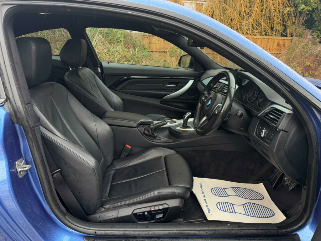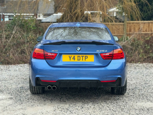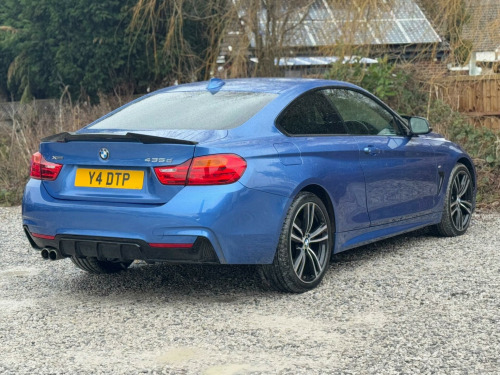 SERVICE HISTORY - MOST RECENT SERVICE DONE 58,210Y4DTPK219in Alloy Wheels - M Double Spoke Style - 442MValuableVIN specInterior Comfort PackageRareVIN specExterior Mirrors - Automatically Dimming - FoldingRareVIN specExtended StorageRareVIN specEnhanced Bluetooth Telephone Preparation with USB Audio Interface and Voice ControlVIN specSun Protection GlazingVIN specConcierge ServiceVIN specArmrest - Front with Sliding AdjustmentVIN specInterior Trim - Brushed AluminiumVIN specDakota Leather - Black with Black InteriorVIN specThis 2014 BMW 4 Series 435d M Sport is a remarkable find, boasting exceptionally low mileage for its age at just 61,500 miles. This four wheel drive coupe features a powerful 3.0L diesel engine and meets Euro 6 emission standards. The M Sport trim enhances its sporty appeal, complemented by 19 inch M Double Spoke Style 442M alloy wheels. Inside, you'll appreciate the Extended Storage and Interior Comfort Package, along with automatically dimming and folding exterior mirrors. Parking is made effortless with Park Distance Control for both the front and rear, including front and rear sensors.This particular 435d M Sport offers compelling advantages over similar vehicles. Its impressive acceleration, achieving 0 to 62mph in a swift 4.7 seconds, showcases its dynamic performance. Furthermore, its Euro 6 compliance and low insurance group highlight its cost effectiveness. Practicality is also a strong point, with generous boot space making it suitable for everyday use and longer journeys alike. in alloy wheels - m double spoke style - 442m, interior comfort package, exterior mirrors - automatically dimming - folding, extended storage, enhanced bluetooth telephone preparation with usb audio interface and voice control, sun protection glazing, concierge service, armrest - front with sliding adjustment, interior trim - brushed aluminium, dakota leather - black with black interior, 12v power socket in front centre console and passenger footwell, 18in alloy wheels - light m star spoke style - 441m, 6.5in colour display screen, abs - anti lock braking system, asc - automatic stability control, air conditioning - automatic - dual zone control, air conditioning and radio control panel in high gloss, air microfilter, airbags - curtain, airbags - driver, airbags - front side, airbags - passenger, airbags - passenger deactivation, alarm system thatcham 1 with remote control, ambient lighting - switchable bmw classic orange - white, armrest - front with storage compartment, armrest - rear centre, automatically dimming rear view mirror, auxiliary input, bmw emergency call, bmw navigation system, bmw professional radio - single cd and mp3, bmw teleservices, battery safety cut off, bluetooth hands free with usb audio interface, bottle holders - front door storage compartments, brake assist, brake drying, brake pad wear indicator, brake pre-tensioning, bumpers - body colour, cbc - cornering brake control, central locking - remote, check control warning system, child seat isofix attachment - rear, comfort go keyless engine start, crash sensor - activating central locking release, cruise control with brake function, cup holders - front x2, dab digital radio, dbc - dynamic brake control, dsc - dynamic stability control plus, dtc - dynamic traction control, daytime running lights, door handles - body colour, door mirrors - body coloured, door mirrors - electric and heated, door sill finishers - bmw designation, drive performance control with comfort-sport and sport modes, dynamic brake lights, electric windows - front open and close fingertip control, electronic differential lock, extended lighting, exterior trim - high-gloss shadowline, first aid kit, floor mats - velour, follow me home headlight function, front fog lights, gearshift lever with m designation, glove box opener with chrome trim, grab handles - in roof lining x4, handbrake lever - gear lever knob and gaiters in leather, headlights - automatic activation, headlights - washer system, headlining - anthracite, heat protection glazing with green tint, heated windscreen washer jets, height adjustable drivers seat - manual, height adjustable passenger seat - manual, high level third brake light, hill start assist, interior trim - aluminium hexagon with estoril blue finisher, kidney grille - chrome extra-wide high-gloss black vertical slats, led tailights, luggage compartment - lashing eyes x2, luggage compartment - securing rings x2, m aerodynamic bodystyling, m sport package, m sport steering wheel, media package - bmw business, multifunction controls for steering wheel, navigation system - bmw business advanced, non smokers package, obc - on-board computer, pdc - park distance control - front and rear, pdc - park distance control - rear, power steering - electric with servotronic, rain sensor with automatic headlight activation, run flat tyres, seat adjustment - front electric with driver memory, seats - front heated, shark fin aerial, speakers x6, sport seats - front, steering column with manual reach and rake adjustment, tpws - tyre pressure warning system, tool kit located in luggage compartment, trim finisher - estoril blue - matt, usb audio interface, windscreen with grey shade band, xenon headlights, idrive controller with shortcut buttons