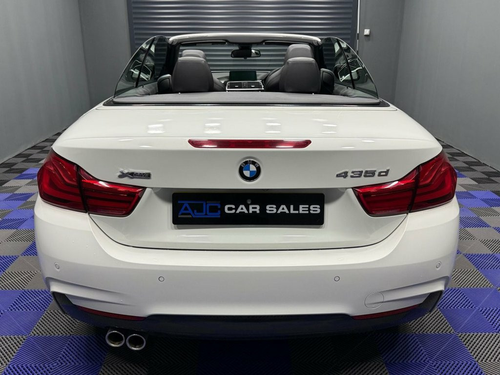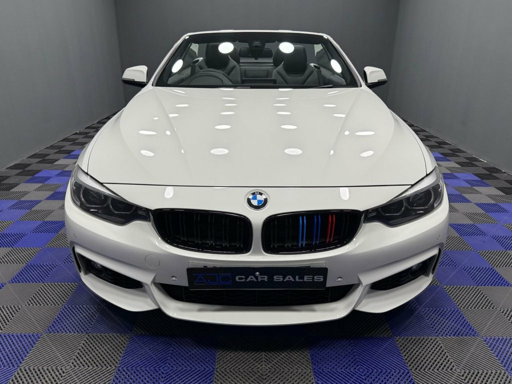 AJC Car Sales presents this stunning BMW 4 SERIES 3.0 435d M Sport Convertible 2dr Diesel Auto xDrive Euro 6 (s/s) (313 ps) finished off in Alpine White Metallic with upgraded 19" M Double Spoke Style Alloys, Two Keys and a Great Service Record. This BMW 435d comes loaded with over £6000 worth of optional extras such as: M Sport Plus Package, Harmon Kardon Sound System, Electric Adjustable Memory Seats, M Sport Braking System, Warm Air Collar, 19" M Double Spoke Alloys, Heated Steering Wheel, Advanced Parking Package, Driving Assistance and more. Experience the perfect blend of luxury, performance, and year-round usability with this superb 2017 BMW 435d M Sport Convertible. Powered by a refined 3.0-litre twin-turbo diesel engine producing an impressive 313 PS, it delivers exceptional performance while maintaining outstanding efficiency. BMW's intelligent xDrive all-wheel-drive system ensures confident handling in all weather conditions, making this convertible as capable as it is stylish. Finished in BMW's signature M Sport styling, the car features an athletic exterior design, a premium cabin, and meticulous build quality throughout. The retractable hard-top roof transforms the driving experience at the touch of a button, offering open-air motoring when desired and coupe-like refinement when closed. Inside, the driver-focused cockpit is equipped with high-quality materials and advanced technology, delivering comfort and convenience on every journey. 12V Power Socket in Front Centre Console, Bluetooth Hands-Free Facility with USB A, BMW ConnectedDrive Online Services, BMW Emergency Call, BMW Professional Navigation, BMW TeleServices, DAB Digital Radio, Full Black Panel Display, Media Package - BMW Professional, Real Time Traffic Information, Shark Fin, 18in Alloy Wheels - M Double Spoke - 400, Air Breather - Black High Gloss, Direction Indicator - Side Repeaters - I, Direction Indicator Lenses - LED, Electric Windows - Front with Open-Close, Exhaust Tailpipes - Dual Left - with Chr, Exterior Mirrors - Heated - Electrically, Exterior Parts in Body Colour, Exterior Trim - High-Gloss Shadowline, Heat Protection Glazing with Green Tint, Kidn