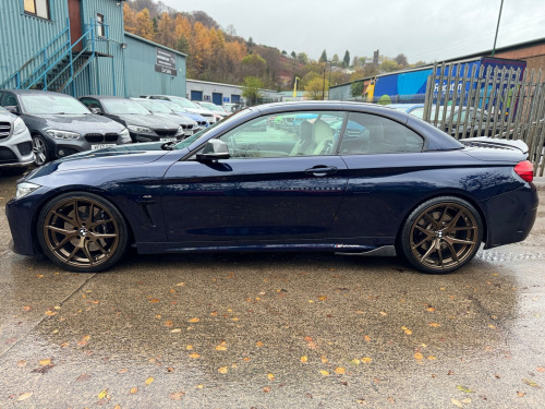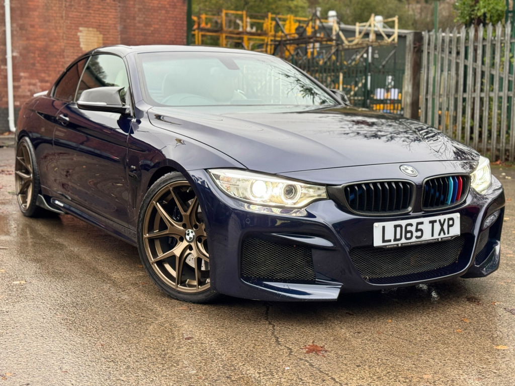 This 2015 BMW 4 Series 3.0 435d M Sport Convertible, with a mileage of 50448 miles, is the perfect vehicle for those who enjoy the open road. This diesel car is not only fuel-efficient, but also boasts an impressive 313 ps. Its convertible design is perfect for enjoying sunny weather to the fullest. The car also comes with 19in Alloy Wheels, M Sport Plus Package, and a Wind Deflector, as well as a M Sport Braking System, making it both stylish and safe. Finished in a sleek Tanzanite Blue and featuring xDrive Euro 6 (s/s) technology, this BMW offers both power and sophistication for a truly luxurious driving experience.UK delivery available.Part exchange welcome.AA extended warranty partner.AA standards approved dealership.Trading standards approved dealership.Autotrader highly rated dealership. v power socket - centre console, 12v power socket - passenger footwell, 20gb memory, auxiliary input, bmw apps interface, bmw connecteddrive online services, bmw emergency call, bmw professional radio - single cd-dvd and mp3, bmw remote services, bmw teleservices, bluetooth hands free with audio streaming, bluetooth hands free with usb audio interface, concierge service, dab digital radio, display - 8.8in colour screen, full black panel display, media package - bmw professional, navigation system - bmw professional multimedia, real time traffic information, speakers x6, 18in alloy wheels - m double spoke - 400m, air breather - black high gloss, bumpers - body colour, door handles - body colour, door mirrors - body coloured, door mirrors - drivers aspheric, door mirrors - electric and heated, door mirrors - integrated indicator side repeaters, door mirrors - passenger side convex, electric windows - front and rear with open-close fingertip control, exhaust tailpipe - dual round - left with chrome finisher, exterior trim - high-gloss shadowline, heat protection glazing with green tint, heated windscreen washer jets, illuminated led corona rings, indicator lenses - clear, kidney grille - chrome extra-wide high-gloss black vertical slats, m aerodynamic bodystyling, m sport package, roof - retractable hard top, roof mouldings - body colour, run flat tyres, side exterior m designation badges, tyres - reduced rolling resistance, windscreen with grey shade band, a pillar trim upper section - foam-backed material grained - black, active carbon microfilter, air conditioning - automatic with two-zone control, air conditioning and radio control panel in high gloss black, ambient lighting - switchable bmw classic orange - cold white - led, armrest - front centre console - dakota leather - black, armrest - front and rear integrated into door trim, armrest - front with storage compartment, armrest - front-rear lateral - upper section - leather dakota - black, automatically dimming rear view mirror, bottle holders - front door storage compartments, comfort go keyless engine start, cup holders - front, door panels - upper arm trim panel - foam-backed material grained - black, door sill finishers - m designation, door trim - foam-backed material grained - black, extended lighting, floor carpet - velour - anthracite, floor mats - velour, footwell lights - front, gear knob - leather, gearshift-lever gaiter - leather walknappa - black, glove compartment - opener with chrome trim, glove-box lid - plastic grained - black, handbrake - leather, handbrake-lever gaiter - artificial leather grained - black, handbrake-lever grip - leather mano - black, head restraints - front and rear, headlining - knitted cloth - anthracite, instrument panel - lower section - plastic grained - black, instrument panel - upper section - plastic grained - black, interior lighting - front and rear centre, interior trim - aluminium hexagon with estoril blue finisher, loading aid, luggage compartment - lashing eyes x2, luggage compartment - light, luggage compartment - storage tray, luggage compartment trim - needle felt - anthracite-melange, m sport instrument cluster, multifunction controls for steering wheel, non smokers package, personal profile, rain sensor, reading lights, rear fog light, seat adjustment - front electric with driver memory, seat belts - fabric weave - black, seat finishers - side - plastic - black, seats - front - electric height adjustment, seats - front heated, seats - front sports, seats - rear of seat backrest - artificial leather grained - black, soft close - boot, steering column with manual reach and rake adjustment, steering wheel - gearshift paddles, steering wheel - leather - m sport, steering-wheel rim - leather mano - black, storage compartment - behind rear seat backrest, storage compartment in door - plastic grained - black, storage compartment in rear seat base centre, sun visors - foil grained - black, sun visors with vanity mirrors and ticket holder, tool kit located in luggage compartment, upholstery insert in door trim - artificial leather grained - black, welcome light, abs - anti lock braking system, asc - automatic stability control, airbags - driver, airbags - front side, airbags - passenger, airbags - passenger deactivation, alarm system thatcham 1 with remote control, automatic lock when driving away selectable, battery safety cut off, belt force limiters - front, brake assist, brake drying, brake pre-tensioning, bumper system front and rear - replaceable deformation elements for impacts up to 9mph, cbc - cornering brake control, central locking - remote, child seat isofix attachment - rear, crash sensor - activating central locking-hazard warning lights-fuel cut off, dbc - dynamic brake control, dsc - dynamic stability control plus, dtc - dynamic traction control, dynamic brake lights, engine immobiliser, first aid kit, hill start assist, pyrotechnic belt tensioners - front, remote control including integrated key - 2, rollover protection system, seat belt security check for driver, side impact protection, warning triangle, brake pad wear indicator, check control warning system, cruise control with 
