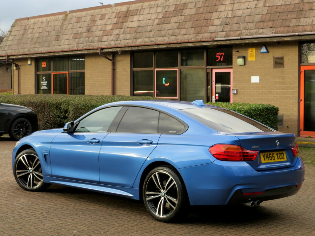 2016 (66) BMW 435d M Sport xDrive Gran Coupe - Estoril BlueFinished in stunning standout Estoril Blue Metallic with Dakota Black leather, this BMW 435d M Sport xDrive Gran Coupe is an exceptional example of BMW's performance diesel flagship. With its combination of aggressive M Sport styling, xDrive four-wheel-drive traction and effortless twin-turbo power, it delivers an outstanding balance of performance, refinement and everyday practicality.This car is very well specified, featuring BMW Professional Navigation, Sports Automatic Transmission, Heated Sports Seats, Xenon Headlights with Wash, Bluetooth with USB Audio, DAB Digital Radio, Powered Tailgate, Front & Rear Park Distance Control, and Cruise Control with Brake Function.The cabin is a genuinely premium place to be, finished with Estoril Blue interior trim, Anthracite headlining, Extended Interior Lighting, Automatic Climate Control, and an M Sport leather steering wheel with gearshift paddles, creating a sporty yet refined driving environment.Externally, this Gran Coupe really stands out thanks to a tasteful selection of M Performance upgrades, including 20'' 405M M Performance alloy wheels, M Performance front splitter, rear diffuser and side skirts, complemented by M Aerodynamic bodystyling, High-Gloss Shadowline trim and privacy glass. The result is a striking, purposeful car that looks every bit as good parked as it does on the move.With 129,000 miles, the car benefits from a full service history, including a recent service with gearbox oil and filter replacement. Supplied with two keys, all original book packs, and a fresh MOT for added peace of mind.A seriously smart and powerful Gran Coupe that turns heads wherever it goes this 435d looks even better in the flesh and must be seen to be fully appreciated.Nationwide delivery available at additional cost.,