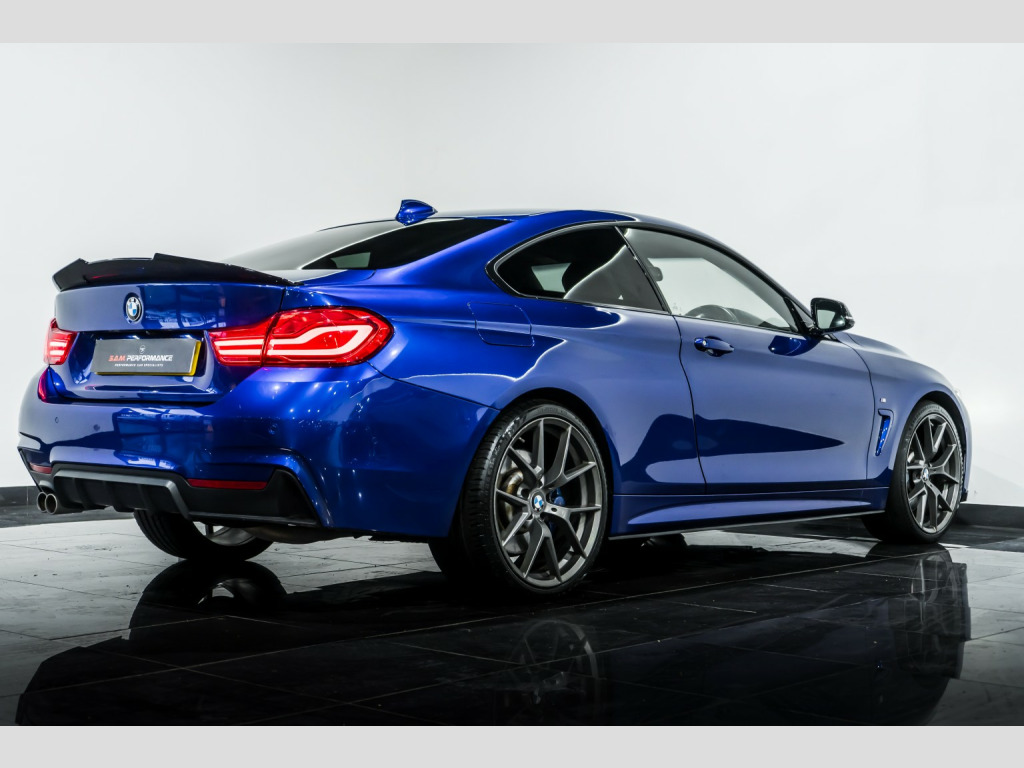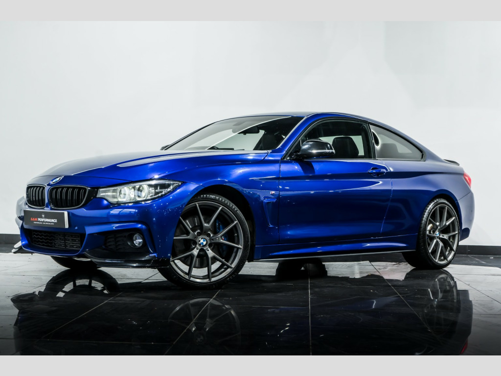 2019 BMW 4 Series 3.0 435d Xdrive M Sport Coupe 2dr Diesel Auto xDrive finished in Individual San marino Blue with contrasting Black leather Interior. This car comes with: Full Service History, M performance kit, Digital Cockpit, M Sport plus package, Apple CarPlay Preparation, Reverse Camera, 19in Alloy Wheels, Harmon Kardon Sound System, Advanced Parking Package, High-Beam Assistant, M Sport Braking System, Heated Front Seats, Interior Trim - Aluminium Hexagon Trim Finishers with Black High-Gloss Highlight Front and Rear Parking Sensors, Arm Rest, Cruise Control with brake function, Multifunctional Steering Wheel, LED Headlights, Rain sensors, Dab Radio, plus much more... , All our vehicles at S A M Performance are HPI Clear. We offer low rates finance packages tailored to suit every individual, subject to terms and conditions. For more information speak to our sales team today on 01706 659966 or to view our stock list go on to our website www.samperformance.co.uk, , NATIONWIDE DELIVERY AVAILABLE. , Please note:, All descriptions and specifications are provided in good faith and believed to be correct. However, errors may occur. Buyers are advised to confirm full details- including vehicle history and any previous modifications with our sales team prior to purchase.