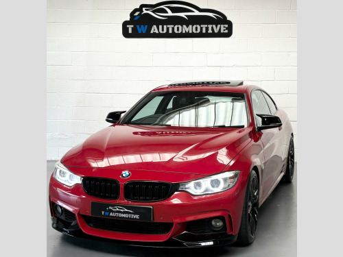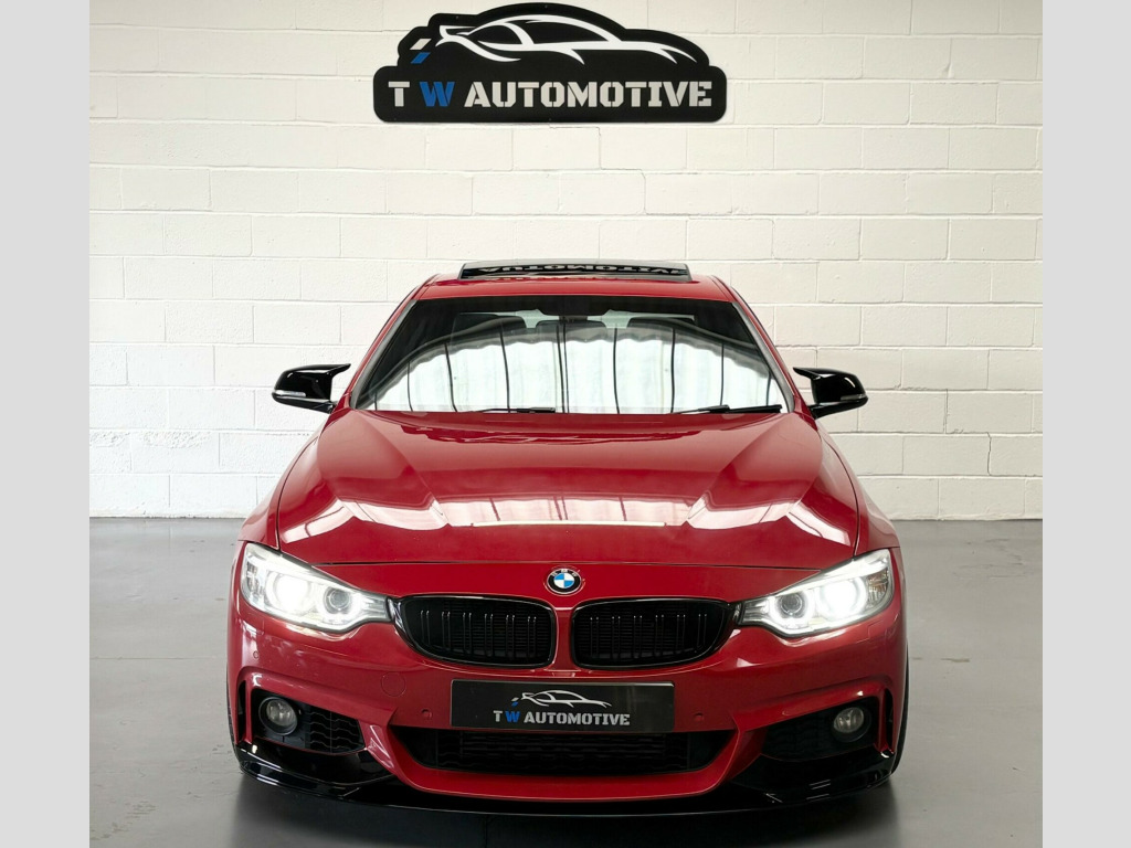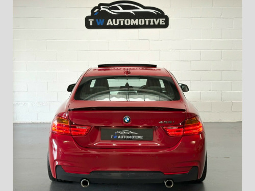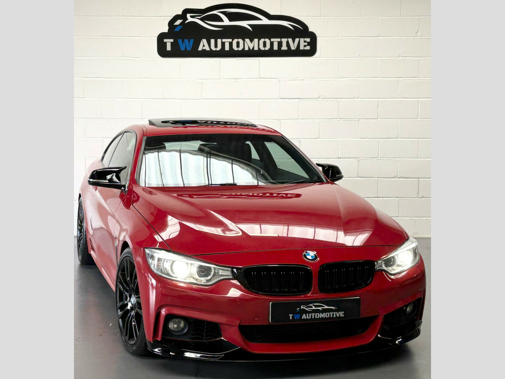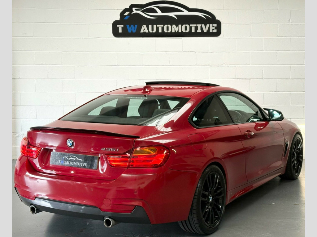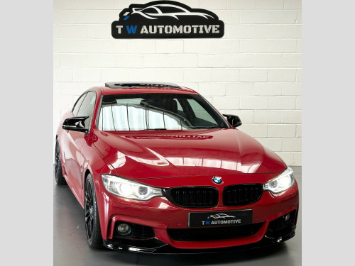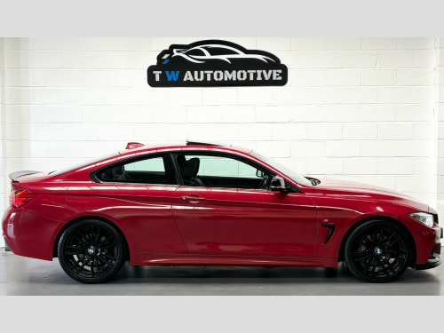 BMW 4 Series 3.0 435i M Sport auto finished in stunning Melbourne red, comes with 19inch unmarked alloys finished in gloss black and good tyres all round. Our example has a full service history including 6 services having last been serviced on 20/09/2025 84,921 miles along with new front discs and pads and cam cover gasket replacement + 2 new front tyres. High specification car including full black leather seats, heated seats with driver memory, navigation system, parking sensors, cruise control plus RARE tilt and slide sunroof! In great condition throughout and must be seen and driven to be appreciated. MOT EXPIRY 13/08/2026, ALL MAJOR DEBIT AND CREDIT CARDS ACCEPTED v power socket in front centre console and passenger footwell, 18in alloy wheels - light m star spoke style - 441m, 6.5in colour display screen, abs - anti lock braking system, asc - automatic stability control, air conditioning - automatic - dual zone control, air conditioning and radio control panel in high gloss, air microfilter, airbags - curtain, airbags - driver, airbags - front side, airbags - passenger, airbags - passenger deactivation, alarm system thatcham 1 with remote control, ambient lighting - switchable bmw classic orange - white, armrest - front with storage compartment, armrest - rear centre, automatically dimming rear view mirror, auxiliary input, bmw emergency call, bmw professional radio - single cd and mp3, bmw teleservices, battery safety cut off, bluetooth hands free with usb audio interface, bottle holders - front door storage compartments, brake assist, brake drying, brake pad wear indicator, brake pre-tensioning, bumpers - body colour, cbc - cornering brake control, central locking - remote, check control warning system, child seat isofix attachment - rear, comfort go keyless engine start, crash sensor - activating central locking release, cruise control with brake function, cup holders - front x2, dab digital radio, dbc - dynamic brake control, dsc - dynamic stability control plus, dtc - dynamic traction control, daytime running lights, door handles - body colour, door mirrors - body coloured, door mirrors - electric and heated, door sill finishers - bmw designation, drive performance control with comfort-sport and sport modes, dynamic brake lights, electric windows - front open and close fingertip control, electronic differential lock, extended lighting, exterior trim - high-gloss shadowline, first aid kit, floor mats - velour, follow me home headlight function, front fog lights, gearshift lever with m designation, glove box opener with chrome trim, grab handles - in roof lining x4, handbrake lever - gear lever knob and gaiters in leather, headlights - automatic activation, headlights - washer system, headlining - anthracite, heat protection glazing with green tint, heated windscreen washer jets, height adjustable drivers seat - manual, height adjustable passenger seat - manual, high level third brake light, hill start assist, interior trim - aluminium hexagon with estoril blue finisher, kidney grille - chrome extra-wide high-gloss black vertical slats, led tailights, luggage compartment - lashing eyes x2, luggage compartment - securing rings x2, m aerodynamic bodystyling, m sport package, m sport steering wheel, m sport suspension, media package - bmw business, multifunction controls for steering wheel, navigation system - bmw business advanced, non smokers package, obc - on-board computer, pdc - park distance control - front and rear, pdc - park distance control - rear, power steering - electric with servotronic, rain sensor with automatic headlight activation, run flat tyres, seat adjustment - front electric with driver memory, seats - front heated, shark fin aerial, speakers x6, sport seats - front, steering column with manual reach and rake adjustment, tpws - tyre pressure warning system, tool kit located in luggage compartment, trim finisher - estoril blue - matt, usb audio interface, windscreen with grey shade band, xenon headlights, idrive controller with shortcut buttons, glass sunroof, 19in alloy wheels - m star spoke - 403m, enhanced bluetooth telephone preparation with usb audio interface and voice control, exterior mirrors - automatically dimming - folding, sport automatic transmission, interior trim - brushed aluminium, dakota leather - black with black interior