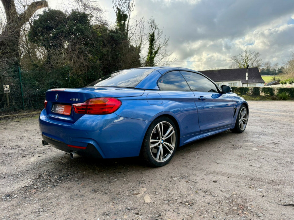 HARMON KARDON+BEIGE LEATHER+ELECTRIC MEMORY HEATED SEATS+NECK LEVEL HEATING+CAMERA+19'' ALLOYS+CONVERTIBLE COMFORT PACK+ADVANDED PARK PACK+PRIVACY GLASS+THROUGH LOADING+ELEC FOLD MIRRORS+ARK SENSORS+SPORTS AUTO TRANSMISSION+ARM REST+BURR WALNUT WOOD+PEARL CHROME FINISHER+HIGH SPEC CAR+FINANCE AND PART EXCHANGE ARRANGED.This 2014 BMW 4 Series 435i M Sport boasts an exceptionally low mileage of just 59,000 miles, complemented by a full dealership service history, offering excellent provenance. This Euro 6 compliant model features a powerful 3.0L petrol engine and comes with a 6 month warranty for your peace of mind. The M Sport trim enhances its sporty appeal, and notable features include a Reversing Assist Camera with Parking Assistance, stylish 19in M Double Spoke Style 442M alloy wheels, and sophisticated Burr Walnut wood interior trim. The Advanced Parking Package and Smokers Package further add to the convenience and comfort of this well appointed vehicle.The performance of this 435i M Sport is truly impressive, achieving 0-62mph in a rapid 5.5 seconds, a highlight that sets it apart from many other vehicles in its class. Its low insurance group rating also indicates that running costs are likely to be more economical than comparable models. This combination of exhilarating performance, comprehensive service history, and desirable features makes this BMW 4 Series a compelling choice for those seeking a premium driving experience.. 12V Power Socket - Centre Console, 12V Power Socket - Passenger Footwell, 18in Alloy Wheels - Light M Star Spoke Style - 441M, ABS - Anti Lock Braking System, ASC - Automatic Stability Control, Air Breather - Black High Gloss, Air Conditioning - Automatic with Two-Zone Control, Air Conditioning and Radio Control Panel in High Gloss Black, Airbags - Driver, Airbags - Front Side, Airbags - Passenger, Airbags - Passenger Deactivation, Alarm System Thatcham 1 with Remote Control, Ambient Lighting - Switchable BMW Classic Orange - Cold White - LED, Armrest - Front with Storage Compartment, Automatically Dimming Rear View Mirror, Auxiliary Input, BMW Emergency Call, BMW Navigation Business System, BMW Professional Radio - Single CD and MP3, BMW TeleServices, Battery Safety Cut Off, Bluetooth Hands Free Facility, Bottle Holders - Front Door Storage Compartments, Brake Assist, Brake Drying, Bumpers - Body Colour, CBC - Cornering Brake Control, Central Locking - Remote, Child Seat ISOFIX Attachment - Rear, Comfort Go Keyless Engine Start, Crash Sensor - Activating Central Locking-Hazard Warning Lights-Fuel Cut Off, Cruise Control with Brake Function, Cup Holders - Front, DAB Digital Radio, DBC - Dynamic Brake Control, DSC - Dynamic Stability Control Plus, DTC - Dynamic Traction Control, Daytime Running Lights, Display - 6.5in Colour Screen, Door Handles - Body Colour, Door Mirrors - Body Coloured, Door Mirrors - Electric and Heated, Door Mirrors - Integrated Indicator Side Repeaters, Door Sill Finishers - M Designation, Drive Performance Control - ECO PRO - Comfort - Sport and Sport Plus, Dynamic Brake Lights, Electric Windows - Front and Rear with Open-Close Fingertip Control, Electronic Differential Lock, Exhaust - Dual with Chrome Finisher, Extended Lighting, Exterior Trim - High-Gloss Shadowline, Exterior Trim - Matt Aluminimum, First Aid Kit, Floor Mats - Velour, Follow Me Home Headlight Function, Front Fog Lights, Glove Box Opener with Chrome Trim, Head Restraints - Front and Rear, Headlights - Automatic Activation, Headlights - Washer System, Headlining - Anthracite, Heat Protection Glazing with Green Tint, Heated Windscreen Washer Jets, High Level Third Brake Light, Hill Start Assist, Indicator Lenses - Clear, Interior Lighting - Front and Rear Centre, Interior Trim - Aluminium Hexagon, Kidney Grille - Chrome with Black Vertical Slats, LED Tailights, Lights-on Audio Warning, Loading Aid, Luggage Compartment - Lashing Eyes x2, Luggage Compartment - Light, Luggage Compartment - Storage Tray, M Aerodynamic Bodystyling, M Sport Instrument Cluster, M Sport Package, Media Package - BMW Business, Multifunction Controls for Steering Wheel, Non Smokers Package, OBC - On-Board Computer, PDC - Park Distance Control - Front and Rear, PDC - Park Distance Control - Rear, Personal Profile, Power Steering - Electric, Rain Sensor, Rollover Protection System, Roof - Retractable Hard Top, Roof Mouldings - Body Colour, Run Flat Tyres, Seat Adjustment - Front Electric with Driver Memory, Seats - Front Heated, Seats - Front Sports, Side Exterior M Designation Badges, Soft Close - Boot, Speakers x6, Steering Column with Manual Reach and Rake Adjustment, Steering Wheel - Leather - M Sport, Storage Compartment - Behind Rear Seat Backrest, Suspension - M Sport, TPWS - Tyre Pressure Warning System, Tool Kit Located in Luggage Compartment, Tyres - Reduced Rolling Resistance, USB Connection, Warning Triangle, Welcome Light, Windscreen with Grey Shade Band, Xenon Headlights, iDrive Controller - 8 Favourite Buttons, Convertible Comfort Package, Speaker System - Harman Kardon, 19in Alloy Wheels - M Double Spoke Style - 442M, Advanced Parking Package, Warm Air Collar, Interior Comfort Package, Enhanced Bluetooth Telephone Preparation with USB Audio Interface and Voice Control, Reversing Assist Camera, Door Mirrors - Folding - Automatically Dimming, Wind Deflector, Through-Loading System, Extended Storage, Steering Wheel - Heated, Armrest - Front with Sliding A. Full dealership history