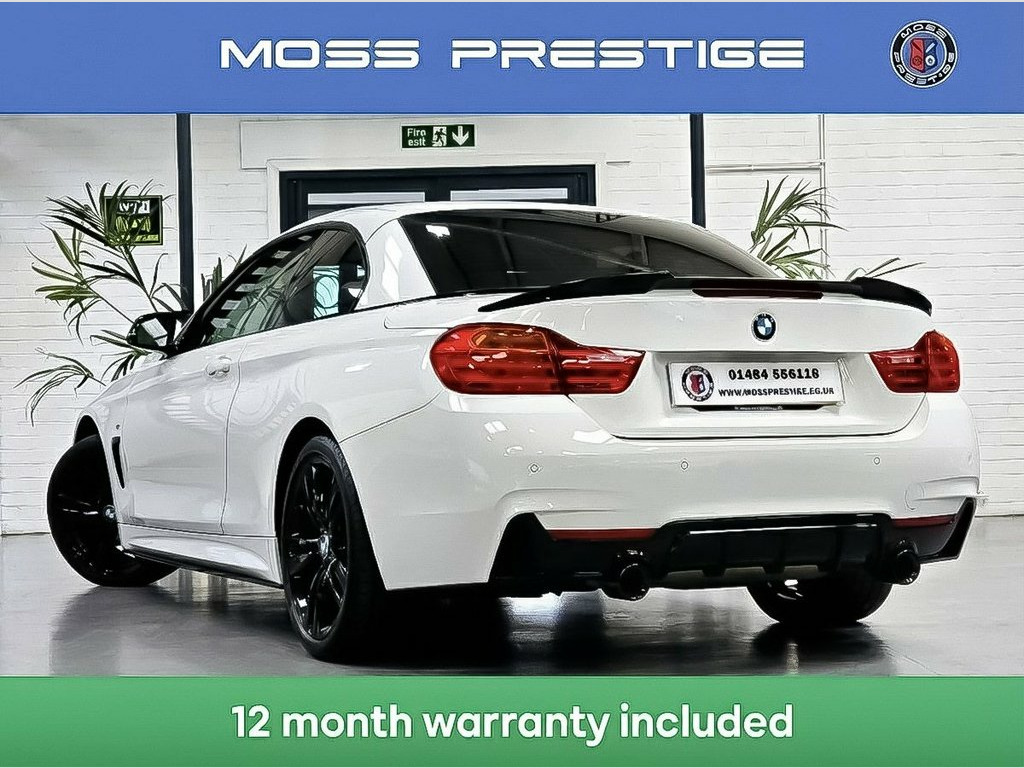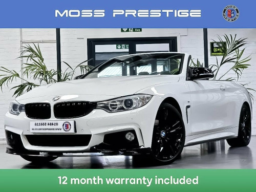 Moss Prestige are proud to offer this Stunning BMW 4 SERIES 3.0 435i M Sport Convertible Euro 6 with Full Service History and over £9K worth of extras. Coming with service history plus 12 Months Moss Prestige Care Package which also Includes 12 Months Warranty and 12 Months MOT for the new Owners peace of mind. Finished in Alpine White, Full M Performance Black Pack Kit, including Gloss Black Front Splitter, Gloss Black Double Spoke Kidney Grilles, M4 Gloss Black Mirror Covers, Gloss Black Side skirt extensions and Rear Upside down shark fin Diffuser. 19inch Gloss Black Alloys with TPMS and M-sport Monte Carlo Blue Callipers - M-sport Braking system. This beauty also comes with extras including, Flappy Paddle Gear shifters, Harman Kardon Premium Sound System, Pro Nav System with in-dash instructions, Parking Sensors, Electric memory heated Leather Interior & heated steering wheel, enhanced Telephone Bluetooth, CD/USB/Aux Media Player with Bluetooth streaming and DAB Radio, Adaptive Headlights, with High-beam Assist, folding mirrors, Cruise Control. Climate Control and Air Conditioning just to name a few. One Not to be missed and has to be seen in the flesh to be appreciated. All Our Cars Are Fully HPI Checked Including Write Off, Stolen& Recovered, Mileage Data Check & Finance So You Can Rest Assured Knowing Our Vehicles Don't Have An Hidden Past., All Cars Come With A Full HPI Printout., Part Exchange Welcome, Credit & Debit Cards accepted, Financ 19in Alloy Wheels - M Double Spoke Style, 12V Power Socket - Centre Console, 12V Power Socket - Passenger Footwell, 18in Alloy Wheels - M Double Spoke - 400, 20GB Memory, ABS - Anti Lock Braking System, ASC - Automatic Stability Control, Air Breather - Black High Gloss, Air Conditioning - Automatic with Two-Zo, Air Conditioning and Radio Control Panel, Airbags - Curtain, Airbags - Driver, Airbags - Front Side, Airbags - Passenger, Airbags - Passenger Deactivation, Alarm System Thatcham 1 with Remote Cont, Ambient Lighting - Switchable BMW Classi, Armrest - Front with Storage Compartment, Automatically Dimming Rear View Mirror, Auxiliary Input, BMW Apps Interface, BMW ConnectedDrive Online Se