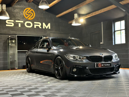 At Storm we have this stunning example of the BMW 440i and what a car it is. Presented with a full service History, 12 months MOT and in immaculate condition, this 440 has a great specification to go with those looks, namely 19 ALLOYS - GORGEOUS RED LEATHER - HEADS UP DISPLAY - HEATED FRONT SEATS - ELCTRIC MEMEORY DRIVERS SEAT - BMW PRO NAVIGATION - CONCIERGE SERVIES - HANDS FREE WITH USB INTERFACE - DAB TUNER - LED FOG LIGHTS - LIGHT PACKAGE - CRUISE CONTROL WITH BRAKE FUNCTION - XENON LIGHTS - PDC - HEADLIGHT CLEANING SYSTEM - STORAGE COMPARTMENT PACKAGE - SPORTS SEATS along with a few lovely additions including  SIDE SKIRTS - FRONT SPLITTER - REAR DIFFUSER - REAR SPOILER AND FRONT CANYARDS. At Storm we would be happy to take a look at your part exchange with finance packages available to suit. Why not find out a little more about Storm and the service we offer www.storm-uk.com