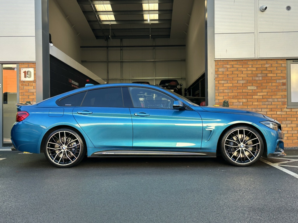 AN OUTSTANDING EXAMPLE OF A BMW 440i GRAN COUPE. THIS CAR IS FINISHED IN THE ULTRA INDIVIDUAL LONG BEACH BLUE METALLIC PAINTWORK. IT HAS A MASSIVE FACTORY SPECIFICATION WITH ALL THE DESIRABLE OPTIONS. ITS BEEN FITTED WITH THE GENUINE BMW MPPSK (M PERFORMANCE POWER + SOUND KIT) THIS INCLUDES THE FULL BMW M PERFORMANCE EXHAUST AND BMW POWER INCREASE. IT ALSO HAS THE GENUINE BMW M PERFORMANCE BODY KIT + WHEELS. THESE GENUINE BMW M PERFORMANCE UPGRADES ARE ALMOST £10,000 NEW!, , Upgrades/Spec Includes: Long Beach Blue Metallic Paintwork, Black Dakota Leather Electric M Sport Seats With Lumbar Support And Drivers Memory Function, Heated Seats, M Performance Bodykit, M Performance Power And Sound Kit Upgrade, Navigation System Professional, Apple Car Play, Bluetooth Handsfree With Bluetooth Audio, DAB Radio, Harman Kardon Surround Sound System, Head Up Display, Lane Departure Warning, Collision Warning, Xenon Headlights, Main Beam Assist, Front And Rear Parking Sensors, Reverse Camera, Dual Climate Control, Connected Drive Services, Cruise Control With Brake Function, Interior Light Package, LED Fog Lights, M Sport Brakes, Electric Folding Mirrors, Auto Lights/Wipers, Auto Dimming Mirrors, Multi Function Steering Wheel, Rear Privacy Glass, Storage Compartment Package, Through Load System, Retractable Armrest, 405M Wheels, 2x Keys. , SPEAK TO US ABOUT OUR FLEXIBLE LOW RATE FINANCE OPTIONS, OR TRY OUR FREE FINANCE ELIGIBILITY CHECKER ON OUR WEBSITE!, , ANY PART EXCHANGE ACCEPTED!