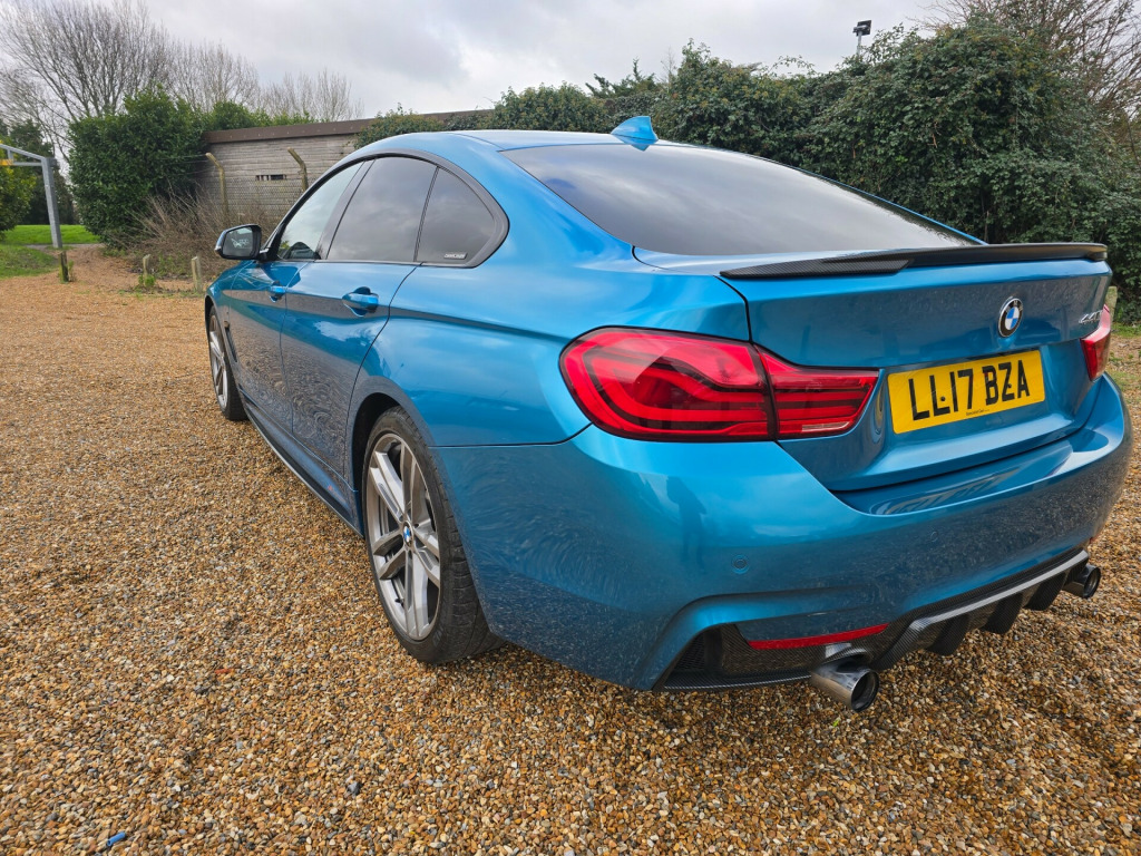 As an AA partnered garage, we take immense pride in offering you only the best. Every vehicle we sell is fully inspected and AA-approved, ensuring that there are absolutely no hidden issues. You can buy from us with complete peace of mind, knowing that we work hand-in-hand with AA to deliver top-notch quality. Plus, we include an AA warranty and breakdown cover for your added assurance. Your confidence in our dealership is our top priority. This 2017 BMW 4 Series Gran Coupe is a stunning hatchback with a powerful 3.0 440i M Sport Petrol engine with only 81273 miles on the clock. With 5 seats, 5 doors, and ULEZ compliant, this car is perfect for both city and long-distance driving. The MOT is valid until 03/12/2026, providing peace of mind for years to come. The stylish Snapper Rocks Blue exterior is complemented by the 19in Alloy Wheels and Electrically Folding and Anti-Dazzle Exterior Mirrors, while the Sun Protection Glazing adds a touch of luxury. With the added M Sport Plus Package, this car is a true head-turner, offering both style and performance. This car comes with Harman Kardon Premium Sound System. Reversing Camera. Electric Boot. Electric Memory Front Seats. Bmw Front and Rear Dash Cam fitted. Adaptive Led Headlights. Genuine Bmw M Performance Exhaust. Keyless Entry. Auto Fold Side Mirrors. 2x keys. Full BMW Service History 5 in total. Last full Service done 77k v power socket in front centre console and passenger footwell, bmw connecteddrive online services, bmw emergency call, bmw professional navigation, bmw teleservices, bluetooth hands-free facility with usb audio interface and audio streaming, dab digital radio, full black panel display, media package - bmw professional, real time traffic information, shark fin, 18in alloy wheels - m double spoke - 400m, air breather - black high gloss, direction indicator - side repeaters - integrated in exterior mirrors, direction indicator lenses - led, electric windows - front with open-close fingertip control - anti-trap facility and comfort closing function, exhaust tailpipes - dual left - with chrome finisher, exterior mirrors - heated - electrically adjustable, exterior parts in body colour, exterior trim - high-gloss shadowline, heat protection glazing with green tint, kidney grille - chrome with extra wide black - high gloss vertical slats, m aerodynamic bodystyling, m sport package, model designation, run flat tyres, side exterior m designation badges, tyres - reduced rolling resistance, windscreen washer jets - heated, windscreen with grey shade band, air conditioning - automatic with two-zone control, air conditioning and radio control panel in high gloss black, ambient lighting - switchable bmw classic orange - cold white - led, armrest - front - folding with storage compartment, bottle holders integrated into door trim storage compartments - front - up to 1 litre, central locking switch - doors - fuel filler cap - luggage compartment, centre armrest for rear seats - include two cup holders, centre console - panel highlight in chrome, cup holders - two in front with sliding lid, door sill finishers - m designation, extended lighting, floor mats - velour, glove compartment, glove compartment - opener with chrome trim, handbrake lever - gear knob in leather, headlining - anthracite, instrument cluster, interior lighting - front centre over interior mirror with soft-light and rear centre, interior trim - aluminium hexagon trim finishers with estoril blue matt highlight, luggage compartment - lashing eyes, luggage compartment - light, m sport instrument cluster, m sport multi-function leather steering wheel - three-spoke, non smoker package, personal profile, rain sensor with automatic headlight activation, rear seat headrests - two, seat adjustment - front electric with driver memory, seat heating for driver and front passenger, seats - 60-40 split folding rear, side armrests - front and rear integrated into door trim, sport seats - front, start-stop button with comfort go keyless engine start and auto start-stop deactivation button, steering column with manual reach and rake adjustment, storage compartment in rear centre console, sun visors with vanity mirrors and ticket holder, tailgate operation - automatic, toolkit located in luggage compartment, twin horns, welcome light, windscreen wipers - two-speed with adjustable intervals, airbags, alarm system - thatcham 1 with remote control and engine immobiliser, battery safety cut off, bumper system front and rear - replaceable deformation elements for impacts up to 9mph, child seat isofix attachment - rear with passenger airbag deactivation, crash sensor, dsc - dynamic stability control plus, dynamic brake lights, first aid kit and warning triangle, remote control with integrated key with insert in blue, seat belt security check for driver, side impact protection, three-point seat belts - all seats, visible vin, brake pad wear indicator - front and rear, condition based service, cruise control with brake function, eps - electric power steering, m sport suspension, obc - on-board computer, oil sensor for level and grade - warning by check control system, optimum shift indicator, pdc - park distance control - front and rear, rear suspension - five-link, servotronic steering, suspension - front aluminium, tyre pressure monitor with a three-level warning strategy, idrive controller - 8 favourite buttons, check control warning system for monitoring of lights and door-luggage compartment open warning, high level third brake light, led front foglights, led headlights, led tailights, lights-on warning by audio warning signal when ignition is switched off