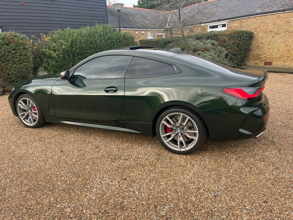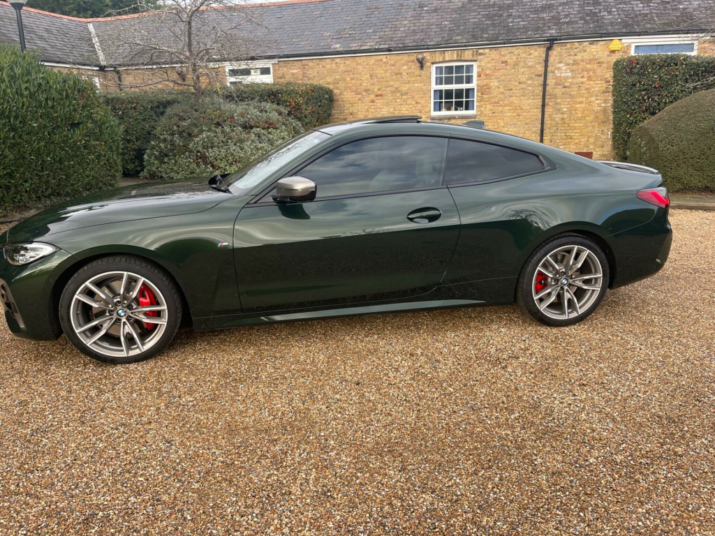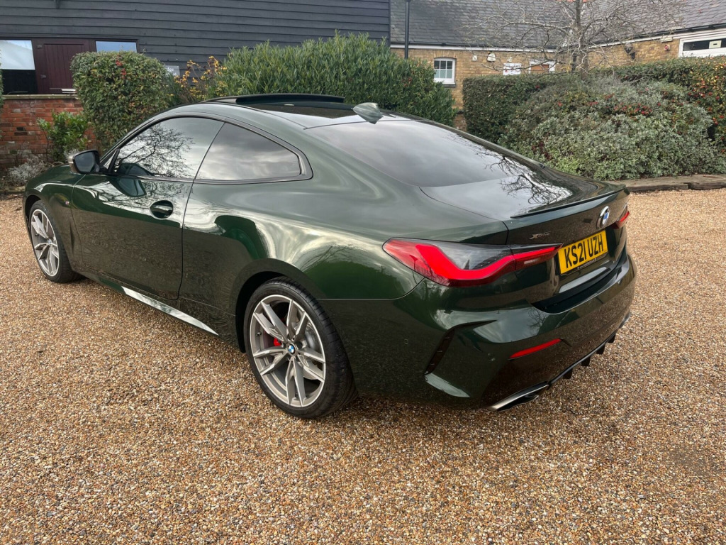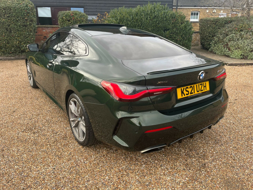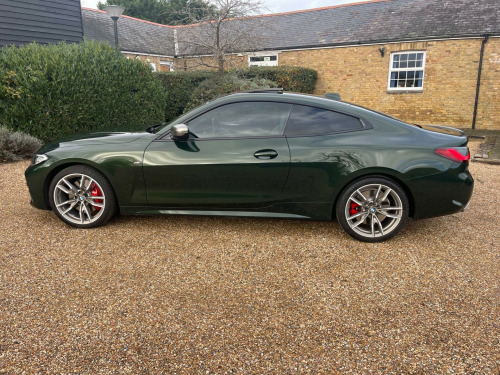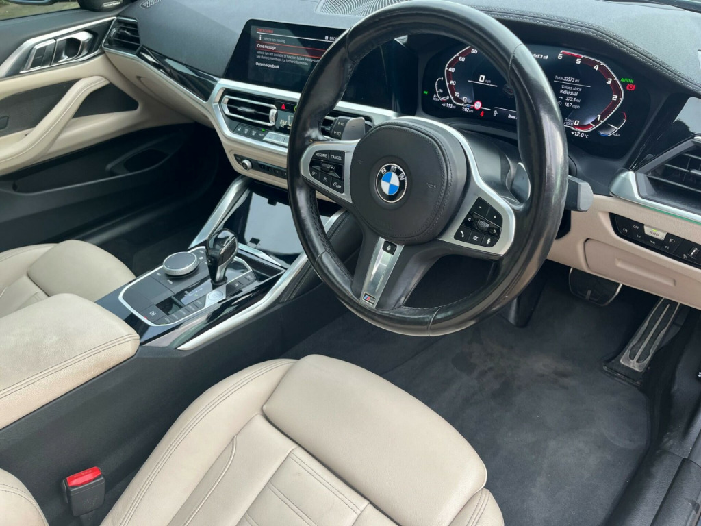This 2021 BMW 4 Series M440d boasts an exceptionally low mileage for its age, having covered just 32,000 miles, and benefits from a full dealership service history, with its last service completed on 2025-03-04 at 27,318 miles. This Euro 6 compliant model features a powerful 3.0L Diesel Hybrid engine paired with Four Wheel Drive for assured handling. A clear vehicle history check and 12 months MOT provided on purchase offer complete peace of mind. Notable features include an Electric Glass Sunroof, the Comfort Plus Package which adds Keyless Entry, Seats with Memory function, and a Heated Steering Wheel, alongside BMW Individual Piano Black interior trim and an Incorrect Fuelling Protection System.The BMW 4 Series M440d offers a compelling blend of performance and practicality. Its low insurance group rating is a significant advantage, making it more affordable to own and run compared to similar vehicles. You will also appreciate the generous boot space, which is larger than you might expect, providing ample room for luggage or shopping. The inclusion of a heated steering wheel and electric sunroof further enhances the driving experience, ensuring comfort in all conditions.Please call 07976 200011 for further detailsAppointment only, mfort plus package, technology package, electric glass sunroof, loudspeaker system - harman kardon, interior trim - bmw individual - piano black, front lumbar support, steering wheel - heated, vernasca leather - oyster with grey stitching, 12v power socket in front centre console, 19in alloy wheels - m light double spoke style - 792 m - bicolour cerium grey with mixed tyres, 2 headrests - non-folding - rear, 2 three-point seat belts - outer, 2x free-form exhaust tailpipe finishers, abs - anti lock braking system, active guard plus, adaptive m suspension, air conditioning - automatic with three-zone, airbags, alarm system - thatcham 1 with remote control and engine immobiliser, ambient lighting with welcome light carpet, armrest - integrated in door trim front and rear and in front on the centre console, attentiveness assistant, bmw connected package professional, bmw connecteddrive online services, bmw emblem on engine compartment lid and tailgate, bmw emergency call, bmw live cockpit professional, bmw teleservices, battery safety cut-off in the event of an accident, bluetooth hands-free facility with usb audio interface and audio streaming, brake energy regeneration, brake pad wear indicator - front and rear, bumper system - front and rear, central locking switch for all doors - fuel filler cap - luggage compartment, centre armrest for rear seats - include two cup holders, centre console rear storage compartment, cerium grey finish mirror caps - kidney grilles - exterior air inlets and model designation, check control warning system for monitoring of lights and door-luggage compartment open warning, child proof locking system - rear doors, child seat isofix attachment for the two outer rear seats, condition based service, crash sensor, cruise control with brake function, cup holders in centre console - front - 2 cupholder inserts with clamping elements - inlay matt black, dab digital radio, dsc - dynamic stability control plus, deletion lumbar support-width adjustment passenger side, door exit lighting - front and rear - left-right, door pockets - front and rear, door sill finishers front - aluminium - with bmw designation, drive performance control with eco pro - comfort and sport modes, driving experience modes, dynamic brake lights, eps - electric power steering, electric windows - front and rear - drivers side for all 4 windows - anti-trap facility, electro mechanical parking brake with automatic drive-away release and auto-hold function, enhanced active sound designs, exhaust tailpipes - split left and right - 90mm diameter, exterior mirrors - electrically folding with anti dazzle, exterior trim - high-gloss shadowline, first aid kit and warning triangle, floor mats - velour, footwell lights - front and rear, front apron - plastic in body colour, fuel filler cap - right - rear - in body colour, glove compartment - illuminated - with separate small compartment, grab handles - integrated in roof lining, headlight beam-throw control - automatic - load dependant regulating reaction - dynamic compensation of braking dive and acceleration squat, headlights - adaptive led, headlining - anthracite, heat protection glazing with green tint, illuminated armrest storage compartment, illuminated bow-type door handles - in body colour - drivers side with door lock, incorrect fuelling protection system, instrument cluster, instrument panel in sensatec, interior lighting - front centre over interior mirror with soft-light and rear centre, interior rear-view mirror with automatic anti-dazzle function, interior trim - aluminium tetragon, led tail lights, lashing eyelets in luggage compartment - 4 pieces, license plate panel integrated into front bumper and tailgate, luggage compartment - light, m aerodynamic bodystyling, m designation on front side panels - left and right, m rear spoiler - body colour, m seat belts, m sport brakes with red calipers, m sport differential, m sport leather multifunction steering wheel - three spoke, make-up mirror lights, manual deactivation of front passenger airbag, mild hybrid technology, model designation on tailgate - right, obc - on-board computer, oil sensor for level and grade - warning by check control system, one-piece front bumper cover including towing eye cover in body colour, optimum shift indicator, pdc - park distance control - front and rear, parking assistant, preparation for high-beam assistant, rain sensor with automatic headlight activation, reading lights - front and rear, rear seats, remote control including integrated key - 2, reversing assist camera, roof fin in body colour, run flat tyres, seat backrest width adjustment, seat belt security check for driver and front passenger, seat heating for driver and front pas