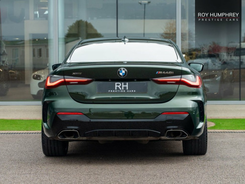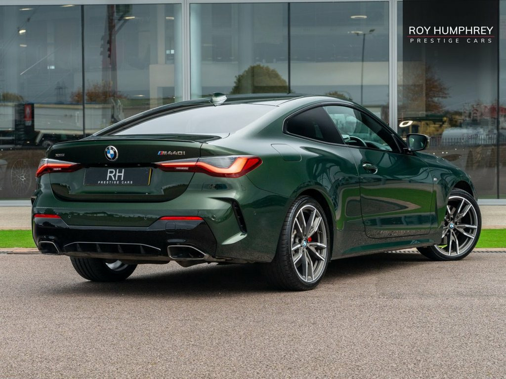 2021 (71) BMW M440i MHT Coupe finished in Sanremo Green with Vernasca Leather - Black with Grey Stitching. Further specification includes but is not limited to, Comfort Package | 19in Alloy Wheels - M Light Double Spoke Style - 792 M - Bicolour Cerium Grey with Mixed Tyres | Air Conditioning - Automatic with Three-Zone | Ambient Lighting with Welcome Light Carpet | BMW Connected Package Professional | Bluetooth Hands-Free Facility with USB Audio Interface and Audio Streaming | Cerium Grey Finish Mirror Caps - Kidney Grilles - Exterior Air Inlets and Model Designation | Cruise Control with Brake Function | M Aerodynamic Bodystyling | M Rear Spoiler - Body Colour | M Sport Brakes with Red Calipers | M Sport Differential | M Sport Leather Multifunction Heated Steering Wheel - Three Spoke | PDC - Park Distance Control - Front and Rear | Parking Assistant | Reversing Assist Camera | Seat Heating for Driver and Front Passenger 12V Power Socket in Front Centre Console, 19in Alloy Wheels - M Light Double Spoke, 2 Headrests - Non-Folding - Rear, 2 Three-Point Seat Belts - Outer, 2x Free-Form Exhaust Tailpipe Finishers, ABS - Anti Lock Braking System, Active Guard Plus, Adaptive M Suspension, Air Conditioning - Automatic with Three-, Airbags, Alarm System - Thatcham 1 with Remote Co, Ambient Lighting with Welcome Light Carp, Armrest - Integrated in Door Trim Front , Attentiveness Assistant, BMW Connected Package Professional, BMW ConnectedDrive Online Services, BMW Emblem on Engine Compartment Lid and, BMW Emergency Call, BMW Live Cockpit Professional, BMW TeleServices, Battery Safety Cut-Off in the Event of a, Blueto