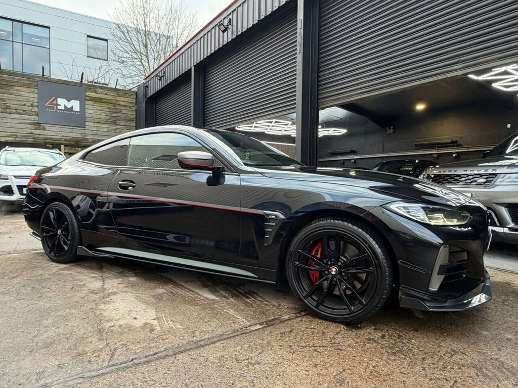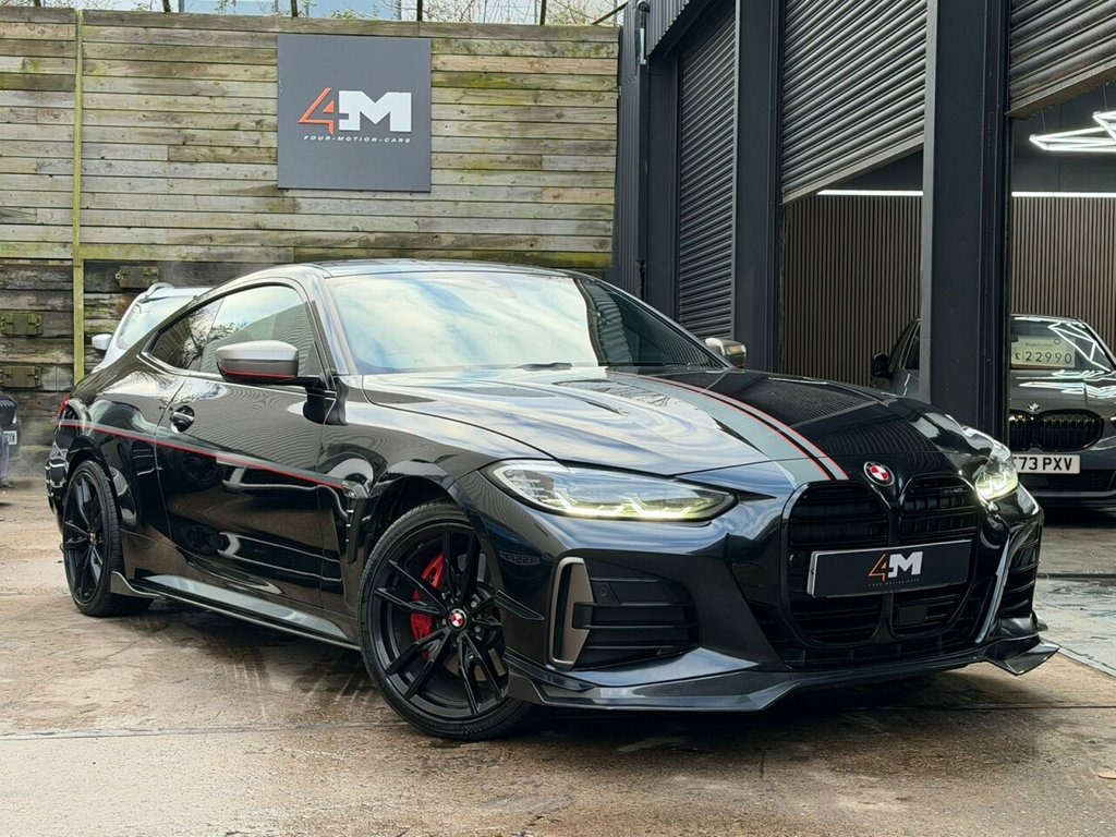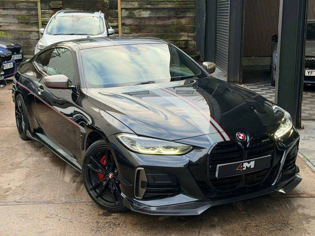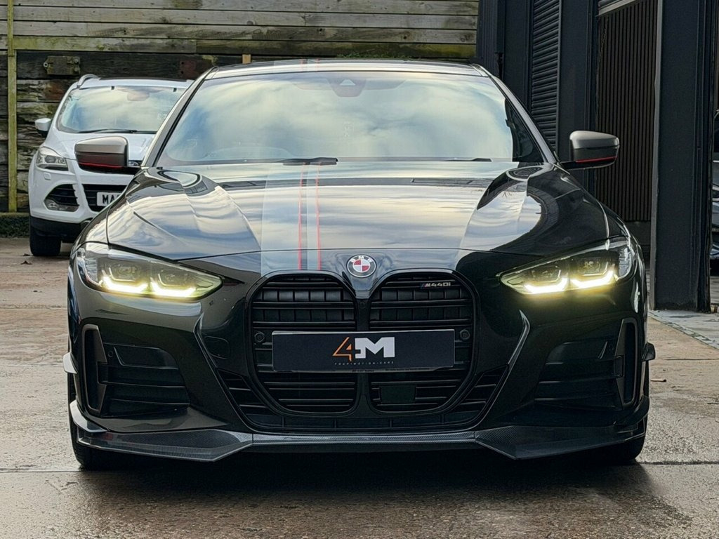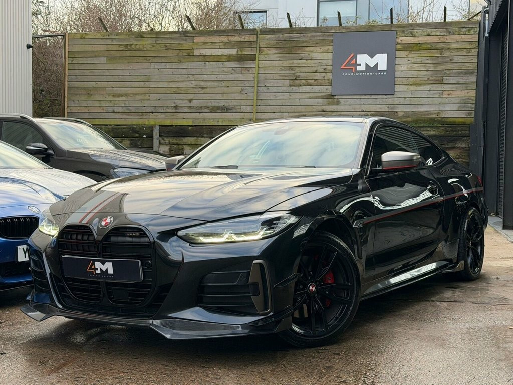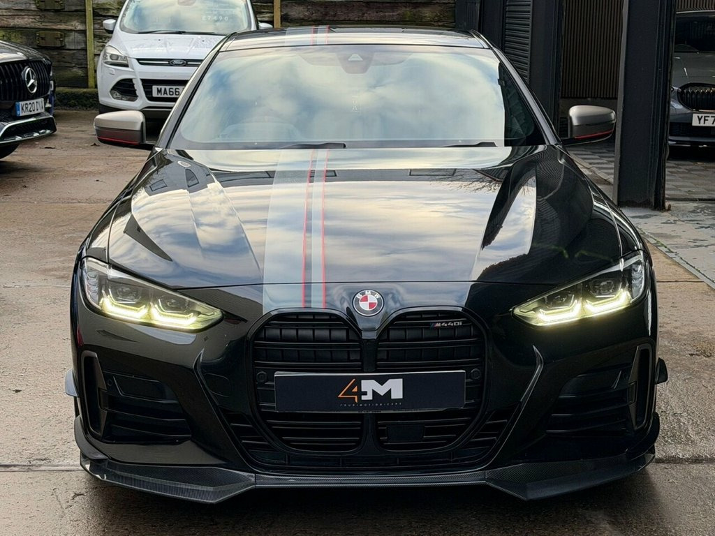 Boasting a full dealership service history and a clear vehicle history check, this 2021 BMW 4 Series M440i offers excellent peace of mind. This four wheel drive coupe is powered by a 3.0 litre petrol hybrid engine and meets Euro 6 emissions standards. It comes equipped with a premium Harman Kardon loudspeaker system, a Technology Package featuring a Head Up Display, and a three zone automatic air conditioning system for ultimate comfort. The BMW Live Cockpit Professional with Bluetooth connectivity and a comprehensive Parking Assistant, including front and rear sensors and a rear camera, further enhance the driving experience. This M440i is presented with a 6 month warranty, ensuring your investment is protected. Its low insurance group rating indicates that running costs are favourable compared to similar vehicles. The combination of its advanced features, robust provenance, and efficient hybrid powertrain makes this BMW 4 Series a compelling choice for those seeking a sophisticated and well maintained coupe. 19in Alloy Wheels - M Double Spoke Style, 12V Power Socket in Front Centre Console, 19in Alloy Wheels - M Light Double Spoke, 2 Headrests - Non-Folding - Rear, 2 Three-Point Seat Belts - Outer, 2x Free-Form Exhaust Tailpipe Finishers, ABS - Anti Lock Braking System, Active Guard Plus, Adaptive M Suspension, Air Conditioning - Automatic with Three-, Airbags, Alarm System - Thatcham 1 with Remote Co, Ambient Lighting with Welcome Light Carp, Armrest - Integrated in Door Trim Front , Attentiveness Assistant, BMW Connected Package Professional, BMW ConnectedDrive Online Services, BMW Emblem on Engine Compartment Lid and, BMW Emergency Call, BMW Live Cockpit Professional, BMW TeleServices, Batter