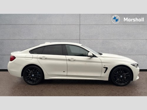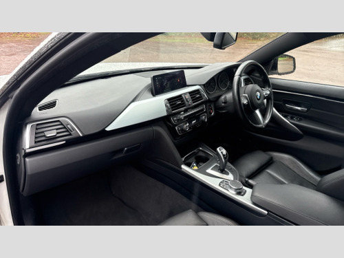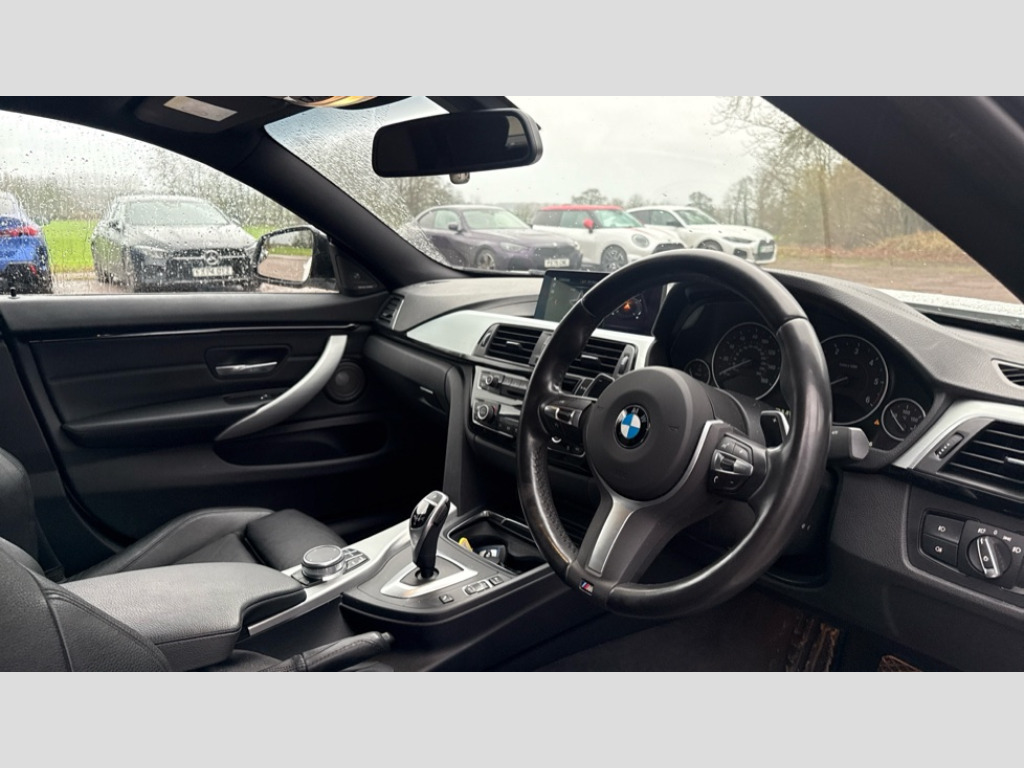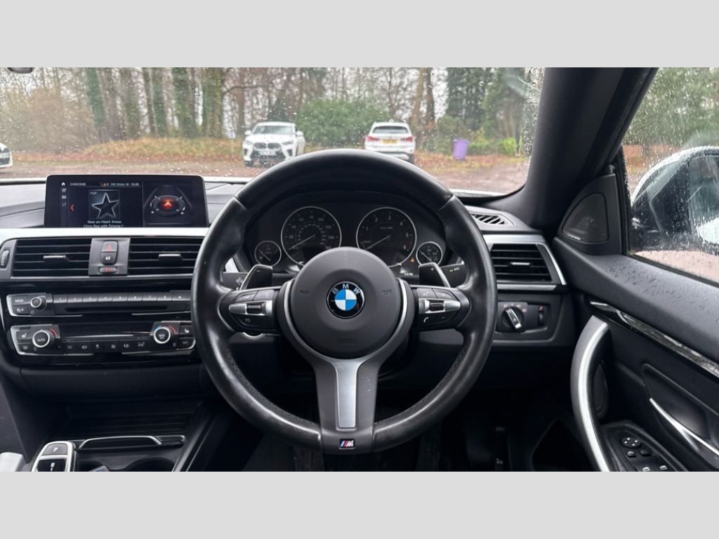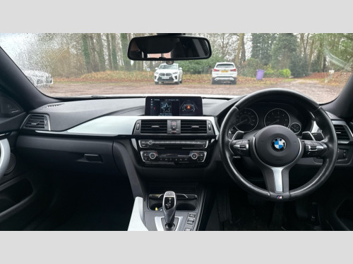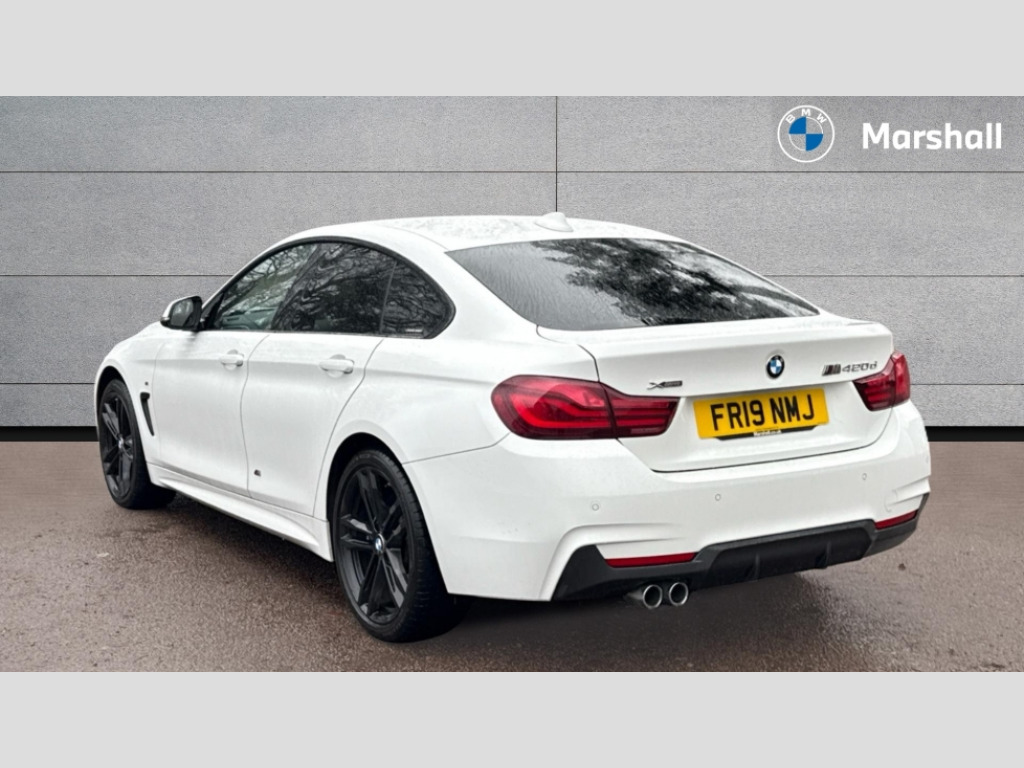 BMW 4 Series 420d [190] xDrive M Sport 5dr Auto [Prof Media] Auto start-stop, Automatic tailgate operation, BMW Online services, BMW remote services, BMW Teleservices, Brake pad wear indicator warning light, Check Control warning system for monitoring of lights and door/luggage compartment open warning, Control display - 6.5" colour display screen, Front/rear park distance control (PDC), iDrive Controller with 8 favourite buttons, Instrument cluster with speedometer with mph readout, tachometer, fuel gauge and oil temperature gauge, Lights on warning by audio warning signal when ignition is switched off, M Sport instrument cluster, Oil sensor for level and grade, warning by check control system, On board computer - average speed, fuel consumption, outside temp display with acoustic warning, clock/date, service interval, odometer/trip meter, Optimum shift indicator, Personal Profile - automatic lock when driving away selectable, Professional multimedia navigation system, Run flat indicator, Aluminium front suspension, Diesel particulate filter, Drive performance control with ECO PRO comfort + sport mode, Electronic differential lock, Five link rear suspension, Incorrect fuelling protection, Sport automatic transmission with steering-wheel mounted gearshift paddles and launch control, DAB tuner, Auto dimming rear view mirror, Body colour door handles, Body colour front bumper, Body colour mirror caps, Body colour rear bumper, Body colour roof mouldings, Chrome kidney grille with extra wide black, high gloss black vertical slats, Direction indicator, side repeaters, integrated in exterior mirrors, Door sill finishers with M designation, Dual exhaust tailpipes in left with chrome finisher, Dynamic brake lights, Electric front windows with fingertip open/close + anti-trap facility, Follow me home headlights, Front air inlet with high gloss black finish, Front and rear bumper system, Green tinted heat protection glazing, Heated windscreen washer jets, Heated, electrically adjustable exterior mirror aspheric on driver side, convex on passenger side, High gloss black air breather, High gloss black rear bumper insert, High gloss shadow line exterior trim, High level third brake light, LED daytime running lights, LED direction indicator lenses, LED eyebrow light, LED front fog lights, LED tail lights with 3D L-shaped LED light design, Lightweight engineering, M aerodynamic bodystyling, Model designation, Rain sensor including auto headlights activation, Shark fin antenna, Two speed adjustable intervals windscreen wipers, Visible VIN plate, Welcome lighting, Windscreen with grey shadeband, 12V sockets in front centre console and passenger footwell, 2 Rear seat headrests, 3 spoke leather M sport multifunction sports steering wheel, 4 grab handles, Air conditioning and radio control panel in high gloss black, Anthracite headlining, Automatic air conditioning with two zone control, Chrome centre console panel highlight, Driver and front passenger seat heating, Folding storage compartment with glasses holder + coin tray, Front and rear side armrests integrated into door trim, Front door storage with bottle holder, Front folding sliding armrest with storage compartment, Front head restraints, Front sports seats with electric side bolster adjustment, Glove compartment, Glove compartment opener with chrome trim, Interior lighting, front centre over interior mirror and rear centre automatic interior light activation when door is opened, Leather gearknob and handbrake lever, Load lashing eyes in luggage compartment, Reach + rake adjustable steering column, Rear centre armrest with 2 cupholders, Rear child seat isofix attachment with passenger airbag deactivation, Rear coded belt buckles, Storage compartment in rear centre console, Sunvisors with vanity mirrors and ticket pocket, Toolkit located in luggage compartment, Two front cup holders with a sliding lid, Velour floor mats, Extended lighting package - 4 Series Gran coupe, Non Smokers pack, Airbag - Front driver and passenger, front and rear head, front side, curtain head protection, manual deactivation of front passenger airbag possible, Anti lock braking system (ABS) with brake assist, Automatic Stability Control (ASC), Battery safety cut-off, BMW emergency call, Brake drying, Brake energy regeneration, Brake pretensioning, Cornering brake control (CBC), Crash sensor activating central locking release, hazard warning lights, Dynamic brake control, Dynamic stability control + (DSC+), Dynamic Traction Control - DTC, Front and rear ventilated brake disc, Front seatbelt force limiters, Hill start assistant, Pyrotechnically pre-tensioned front seatbelts, Seat belt security check for driver, Side impact protection, Twin horns, Tyre pressure monitoring with three level warning strategy, Variable torque distribution, Warning triangle and first aid kit, Central locking switch for all doors, fuel filler cap and luggage compartment, Electronic engine immobiliser, Remote control integrated key with blue inset, Start/stop button with Comfort Go keyless engine start and auto Start/stop deactivation button, Thatcham category 1 alarm, Reduced rolling resistance tyres, Run flat tyres