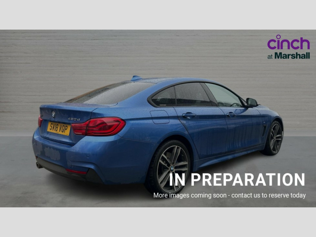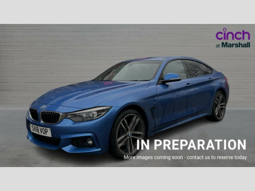 BMW 4 Series 420d [190] xDrive M Sport 5dr Auto [Prof Media] Automatic tailgate opening, BMW Online services, BMW remote services, BMW Teleservices, Brake pad wear indicator warning light, Check control system, Door/boot open warning, Front/rear Parking distance control, iDrive controller and display with 6.5" monitor, Lights on warning, Oil temperature gauge, On board computer, Outside temperature display, Real time traffic information, Run flat indicator, Service interval indicator, Stop/start button, Diesel particulate filter, Drive Performance Control, Electronic differential lock, Sports function on gearbox with steering wheel mounted gearshift paddles, Bluetooth audio streaming, BMW professional radio/CD/MP3, DAB Digital radio, 2 speed adjustable intermittent wipers with wash/wipe function, Auto dimming rear view mirror, Body colour bumpers, Body colour door handles, Body colour door mirrors, Body colour roof mouldings, Chrome kidney grille with black vertical slats, Door sill finishers, Dual chrome exhaust, Electric adjustable heated door mirrors, Electric front and rear windows with fingertip open/close + anti-trap all round, Follow me home headlights, Headlight range control, Heat insulating tinted glass, Heated windscreen washer jets, High gloss shadow line, LED daytime running lights, LED front fog lights, LED tail lights, M aerodynamic bodystyling, Rain sensor including auto headlights activation, Welcome lighting, Windscreen with grey shadeband, 12V sockets in front centre console and passenger footwell, 3 spoke leather M sport multifunction sports steering wheel, 4 grab handles, Anthracite headlining, Anthracite Velour floor mats, Dual zone climate control, Folding front centre armrest with storage compartment, Folding storage compartment with glasses holder + coin tray, Front cupholders x 2, Front door storage with bottle holder, Front head restraints, Front sports seats with electric side bolster adjustment, Front/rear armrests within door panels, Glovebox with lid, Heated front seats, Integrated rear head restraints, ISOFIX child seat preparation+airbag deactivation, Lashing eyelets in boot, Leather gearknob, Leather handbrake grip, Reach + rake adjustable steering column, Rear centre armrest with 2 cupholders, Toolkit located in luggage compartment, Extended lights package - 4 Series, 3 point seatbelts on all seats, ABS/EBD, Automatic Stability Control (ASC), BMW emergency call, Brake assist function, Brake energy regeneration, Cornering brake control (CBC), Crash Sensor - activates hazard/interior lighting + unlocks doors, Driver seatbelt warning indicator, Driver/Front Passenger airbags, DSC+, Dynamic brake control, Dynamic Traction Control - DTC, Front passenger airbag deactivation, Front seatbelt force limiters, Front seatbelt pretensioner, Front side airbags, Hill start assist, ITS head airbags for front/rear, Side impact protection, Tyre pressure monitor, Warning triangle and first aid kit, Central locking including fuel filler and boot, Drive away door locking, Electronic immobiliser, Remote control Thatcham category 1 alarm