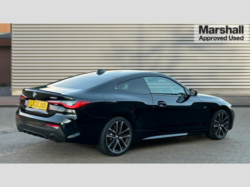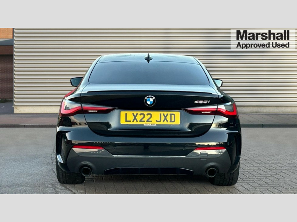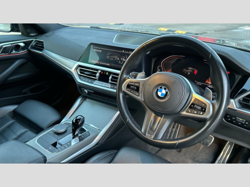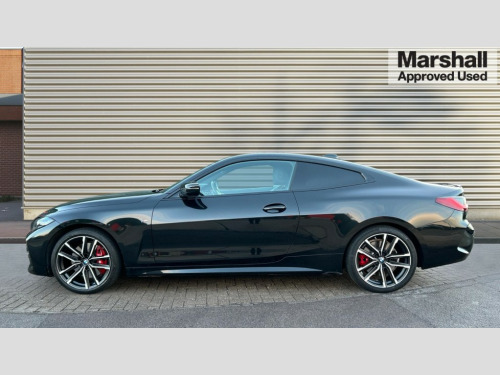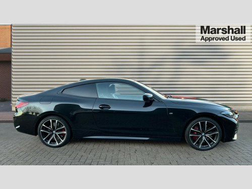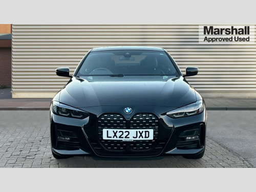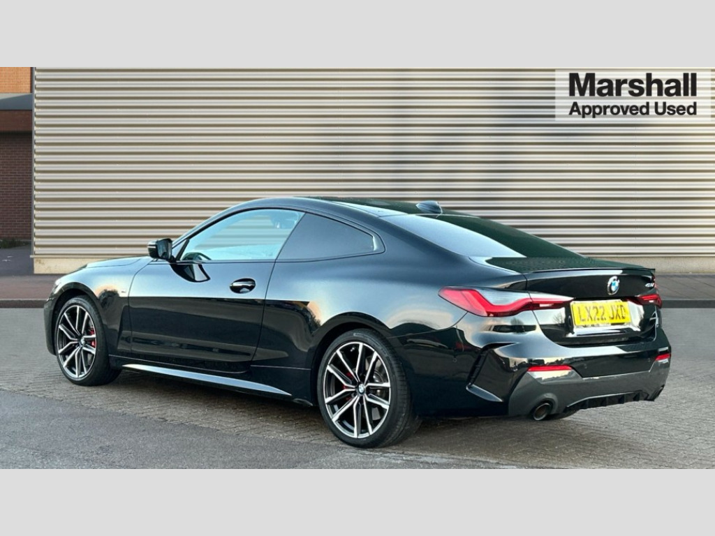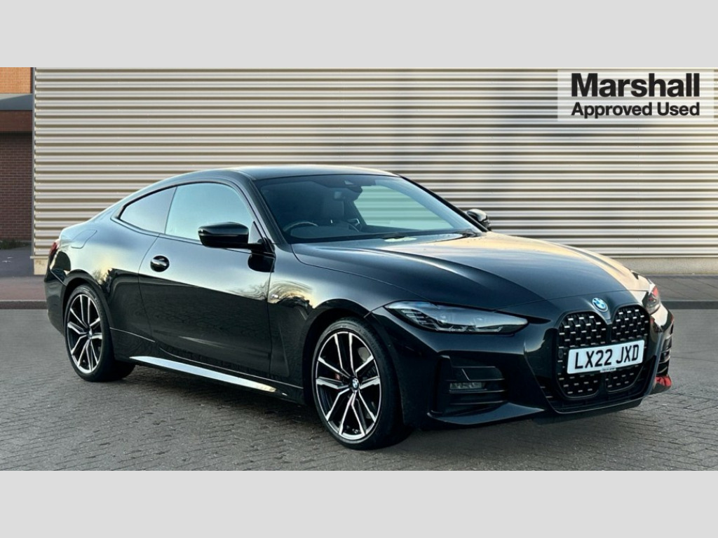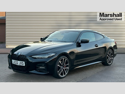 BMW 4 Series 420i M Sport 2dr Step Auto Active guard plus, Attentiveness assist, Auto start-stop, BMW ConnectedDrive online services, BMW iDrive controller on centre console, BMW Live Cockpit Professional Nav with 12.3" instrument display + 10.25" display, Intelligent Voice Assist, BMW OS 7, HDD, 2USB, 4G LTE connect, BMW service history, BMW Teleservices, Brake pad wear indicator in front and rear, Check Control warning system for monitoring of lights and door/luggage compartment open warning, Condition based service, Cruise control with brake assist, Electric power steering with Servotronic steering optimised at all speed ranges, Gearshift time display in manual mode, Instrument cluster with speedometer with mph readout, tachometer, fuel gauge and oil temperature gauge, Integrated owners handbook, Oil sensor for level and grade, warning by check control system, On board computer - average speed, fuel consumption, outside temp display with acoustic warning, clock/date, service interval, odometer/trip meter, Optimum shift indicator, Touch control functionality for BMW Live Cockpit Professional Nav, Variable sport steering, 8 speed automatic steptronic transmission with gearshift paddles, Balanced 50/50 weight distribution, Double VANOS, Drive performance control - ECO PRO, comfort and sport modes, High precision injection, Low centre of gravity, M sport suspension, Petrol Particulate Filter, Stroke dependent dampers, VALVETRONIC engine management, DAB tuner, Electronic service booklet, Acoustic glazing, Automatic headlight beam throw control with load dependent regulating reaction, dynamic compensation of braking dive and acceleration squat, Automatic windscreen wipers and automatic headlight, Automatically dimming electrochromatic rear view mirror, BMW emblem on engine compartment lid and tailgate, BMW kidney grille with mesh grille front side of the nuggets in matt aluminium and frame in chrome high gloss, Body colour fuel filler flap, Body colour M sport rear spoiler, Body colour roof fin, Brushed aluminium inserts in the front door sill finishers with BMW designation, Dynamic brake lights, Electric windows - front and rear, with open/close fingertip control, anti trap facility and comfort closing function all round, Exhaust tailpipe - split left and right, Exterior mirrors - electrically folding with anti-dazzle, Fading support, Follow me home headlights, Front and rear bumper system, Front apron plastic in body colour, Green tinted heat protection glazing, High gloss shadow line exterior trim, Illuminated bow type door handles in body colour drivers side with door lock, Interior rear view electrochromatic mirror with automatic anti dazzle function, LED daytime running lights, LED front fog lights, Licence plate panel integrated into front bumper and tailgate, Lightweight engineering, M designation on front side panels, left and right, M rear boot spoiler, Model designation on right side of tailgate, One piece front bumper cover including towing eye cover in body colour, Preparation for high beam assistant, Rear boot, Reversing light, Side frame decorative moulding black matt, Two part LED tailights in L-shape with components in smoked glass, brake light, LED turn indicator and rear fog light, Visible VIN plate, Welcome lights in interior and door handle area, Widened track and increased camber values for max transverse dynamics, agility and steering precision, Window recess cover black high gloss, Windscreen wipers with integrated heated washing jets, 12V power socket in front centre console, 2 front cupholder in centre console with clamping elements and matt black inlay, 2 Rear seat headrests, 2 seat bench in second row, 3 spoke M sport leather multifunction steering wheel, 3 zone automatic air conditioning, 4 pieces lashing eyelets in luggage compartment, 40:20:40 split folding rear seat and rear centre armrest with two cupholders, Ambient lighting with welcome carpet light, Anthracite headlining, Armrest integrated in front and rear door trim + front centre console armrest, Driver seat backrest width adjustment, Four grab handles integrated in roof lining, Front and rear door pockets, Front and rear footwell lights, Front and rear reading lights, Front headrests, Front passenger seat, Front sport seats, Heated driver and front passenger seats, Height adjustable mechanically and infinitely variable steering column, Illuminated armrest storage compartment, Illuminated glove compartment with separate small compartment, Luggage compartment light, Make-up mirror lights, Storage compartment in rear centre console, Sunvisors with vanity mirrors and ticket pocket, Toolkit located in luggage compartment, USB type - C cable charging function in the rear centre console, Velour front floor mats, Vernasca leather upholstery, Connected professional package - 4 Series, M sport exterior styling pack - 4 Series, Park assist pack - 4 Series, 2 x 3-point rear seatbelts, Battery safety cut-off, BMW emergency call, Brake energy regeneration, Braking pre-tensioning, Child seat ISOFIX attachment for the two outer rear seats, Coasting in idle in ECO PRO mode, Cornering brake control (CBC), Crash sensor activating of airbags, Unlocking doors, hazard warning lights, interior light, safety battery terminal, Driver and front passenger side airbags, integrated in the door side seat backrest bolsters for all seat variants, Driver/Front Passenger airbags, Dry braking, Dynamic brake control, Dynamic stability control + (DSC+) - Anti-lock Braking System (ABS) with brake assist and cornering brake control + Automatic Stability Control (ASC), Dynamic Traction Control - DTC, Electric parking brake including automatic hold function and automatic release of the parking brake when driving off, Electronic differential lock control (EDLC), Front and rear ventilated brake disc, Front passenger manual airbag deactivation, Head airbags for all 4 outer seats, Hill start assistant, Seat belt security check for driver and fro