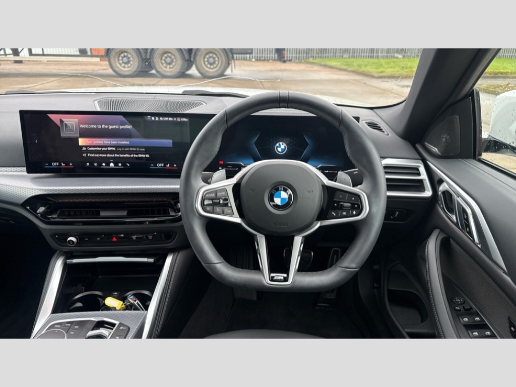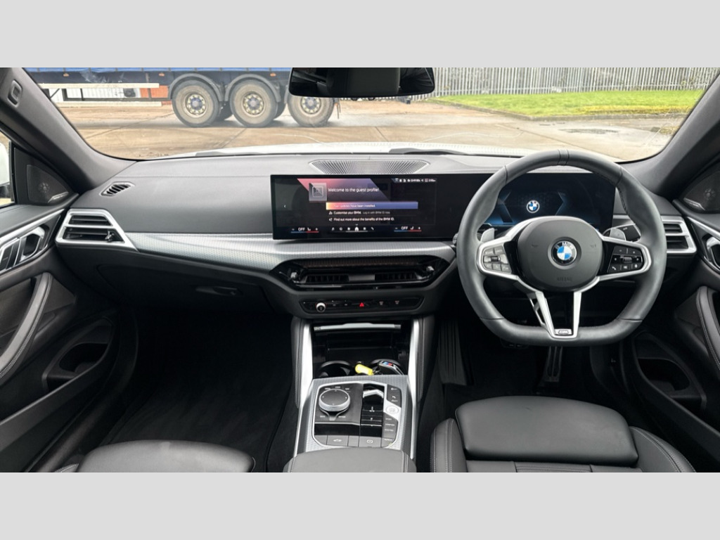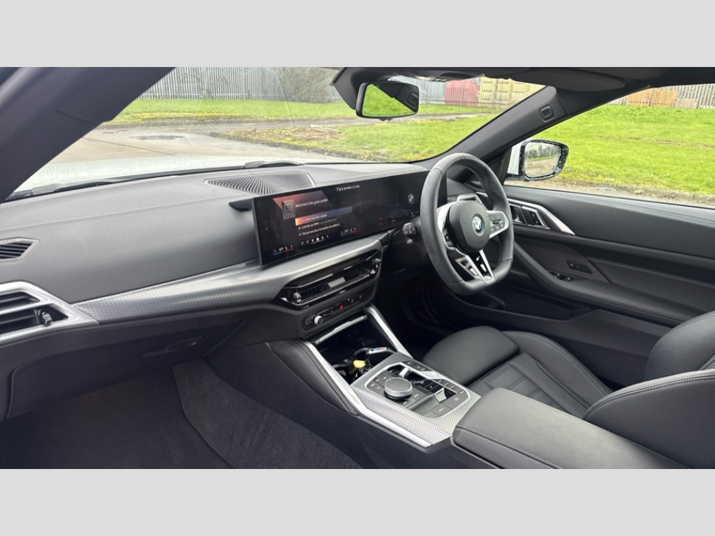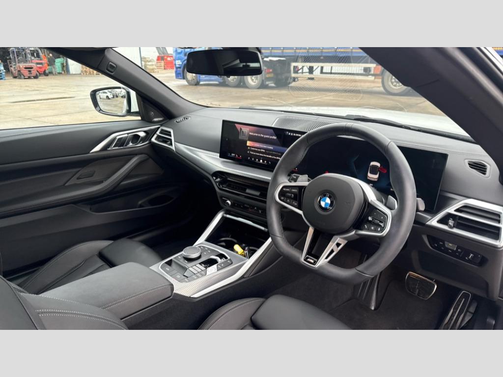 BMW 4 Series 420i M Sport 2dr Step Auto Active guard plus, Attentiveness assist, Automatic start/stop function, BMW ConnectedDrive online services, BMW iDrive controller on centre console, BMW service history, BMW Teleservices, Brake pad wear indicator in front and rear, Check Control warning system for monitoring of lights and door/luggage compartment open warning, Condition based service, Electric power steering with Servotronic steering optimised at all speed ranges, Instrument cluster with speedometer with mph readout, tachometer, fuel gauge and oil temperature gauge, Integrated owners handbook, Language version English, Oil sensor for level and grade, On board computer - average speed, fuel consumption, outside temp display with acoustic warning, clock/date, service interval, odometer/trip meter, Run flat indicator, Shifting point display, Start/stop button in black, Variable sport steering, 8 speed automatic steptronic transmission with gearshift paddles, Balanced 50/50 weight distribution, Double joint spring strut front axle, Drive experience mode switch - Comfort mode, ECO PRO mode and SPORT mode, Electronic differential lock control (EDLC), Low centre of gravity, Petrol Particulate Filter, Stroke dependent dampers, DAB tuner, Personal eSim, Acoustic glazing, Automatic headlight beam throw control with load dependent regulating reaction, dynamic compensation of braking dive and acceleration squat, Automatic windscreen wipers and automatic headlight, BMW radiator grille with mesh grille, end face of the nuggets in aluminium matt and frame in chrome matt, Body colour fuel filler flap, Body colour roof fin, Bonnet and tailgate badge, Electric folding wing mirrors - Driver side electrochromic, auto anti dazzle function & front passenger side auto parking function without anti dazzle, Electric windows - front and rear, with open/close fingertip control, anti trap facility and comfort closing function all round, Follow me home headlights, Front and rear bumper system, Front apron plastic in body colour, Green tinted heat protection glazing, Illuminated bow type door handles in body colour drivers side with door lock, Interior rear view electrochromatic mirror with automatic anti dazzle function, LED 3rd brake light, LED daytime running lights, LED front fog lights, LED front indicators, Licence plate panel integrated into front bumper and tailgate, Low and high beam headlights in Bi-LED, M designation on front side panels, left and right, M Sport entry door sill strips, Model designation on right side of tailgate, One piece front bumper cover including towing eye cover in body colour, Preparation for high beam assistant, Rear boot, Reversing light, Side frame trim strip black matt, Two part LED tailights in L-shape with components in smoked glass, brake light, LED turn indicator and rear fog light, Visible exhaust tailpipe finisher, Visible VIN plate, Welcome lights in interior and door handle area, Widened track and increased camber values for max transverse dynamics, agility and steering precision, Wind deflector, Windscreen washer jets concealed underneath bonnet, 12V power socket in front centre console, 2 2nd row folding seats, 2 front cupholder in centre console with clamping elements and matt black inlay, 2 Rear seat headrests, 2 zone automatic air conditioning, 3 spoke flat bottom M sport leather multifunction steering wheel, 4 pieces lashing eyelets in luggage compartment, Anthracite headlining, Armrest integrated in front and rear door trim + front centre console armrest, Battery in luggage compartment, BMW ID, Electric memory seats - electrically adjustable seats with drivers seat memory, exterior mirrors memory and automatic parking function, Extended storage - Luggage compartment partition net on left side trim panel, Bag hook on both sides of the luggage compartment, Front and rear door pockets, Front footwell lights, Front sport seats, Heated driver and front passenger seats, Height adjustable front headrests, Illuminated armrest storage compartment, Illuminated glove compartment with separate small compartment, Interior light and front reading light, Luggage compartment light, Single front passenger seat, Steering column adjustment - Infinitely variable in height and length, Sunvisors with illuminated vanity mirrors and ticket pocket, Toolkit located in luggage compartment, Velour front floor mats, Ambient lighting pack - 4 Series, BMW Live Cockpit Plus pack - 4 Series, Connected professional package - 4 Series, M High gloss shadowline exterior trim pack - 4 Series, M sport exterior styling pack - 4 Series, Park assist pack - 4 Series, 2 x 3-point rear seatbelts, BMW emergency call, Brake energy regeneration, Braking pre-tensioning, Child seat ISOFIX attachment for the two outer rear seats, Crash sensor activating of airbags, Unlocking doors, hazard warning lights, interior light, safety battery terminal, Driver and front passenger side airbags, integrated in the door side seat backrest bolsters for all seat variants, Driver/Front Passenger airbags, Dry braking, Dynamic brake control, Dynamic stability control + (DSC+) - Anti-lock Braking System (ABS) with brake assist and cornering brake control + Automatic Stability Control (ASC), Dynamic Traction Control - DTC, Electric parking brake including automatic hold function and automatic release of the parking brake when driving off, Front and rear ventilated brake disc, Front passenger manual airbag deactivation, Head airbags for all 4 outer seats, Hill start assistant, Seat belt security check for driver and front passenger, Seat belt with belt stopper, pyrotechnic belt tensioners and belt force limiters, Seat occupancy detection for driver and passenger side, Side impact protection, Tyre pressure sensors, Warning triangle and first aid kit, Alarm system for monitoring doors, engine compartment,interior movement sensor,tilt sensor and siren with emergency power supply, Centre lock switch - Button in driver's side front d