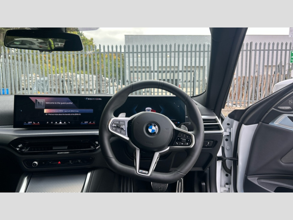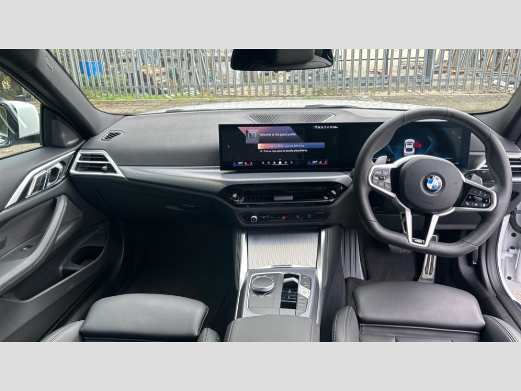 BMW 4 Series 420i M Sport 2dr Step Auto Active guard plus, Attentiveness assist, Auto start-stop, Bluetooth hands free facility with USB audio interface with audio streaming, BMW ConnectedDrive online services, BMW iDrive controller on centre console, BMW Live Cockpit Plus Nav-12.3" instrument&14.9" control Widescreen curved display/Intelligent Voice Assist/iDrive touch/Access 3rd party app/4G LTE, BMW service history, BMW Teleservices, Brake pad wear indicator in front and rear, Check Control warning system for monitoring of lights and door/luggage compartment open warning, Condition based service, Electric power steering with Servotronic steering optimised at all speed ranges, Gearshift time display in manual mode, Instrument cluster with speedometer with mph readout, tachometer, fuel gauge and oil temperature gauge, Integrated owners handbook, Language version English, Oil sensor for level and grade, warning by check control system, On board computer - average speed, fuel consumption, outside temp display with acoustic warning, clock/date, service interval, odometer/trip meter, Optimum shift indicator, Run flat indicator, Shifting point display, Variable sport steering, 8 speed automatic steptronic transmission with gearshift paddles, Active sound design, Balanced 50/50 weight distribution, Double joint spring strut front axle, Double VANOS, Drive performance control - ECO PRO, comfort and sport modes, High precision injection, Low centre of gravity, Petrol Particulate Filter, Sprint mode, Stroke dependent dampers, VALVETRONIC engine management, 1x USB type A with data transfer and 1.5 Amp charging function in the centre console, 1x USB type C with 3 Amp charging function in the front centre armrest, DAB tuner, Electronic service booklet, Personal eSim, Acoustic glazing, Adaptive LED Headlights, Automatic headlight beam throw control with load dependent regulating reaction, dynamic compensation of braking dive and acceleration squat, Automatic windscreen wipers and automatic headlight, Automatically dimming electrochromatic rear view mirror, BMW emblem on engine compartment lid and tailgate, BMW Individual high gloss shadow line with extended contents, BMW individual lights shadow line, BMW radiator grille with mesh grille, end face of the nuggets in aluminium matt and frame in chrome matt, Body colour fuel filler flap, Body colour roof fin, Bonnet and tailgate badge, Brushed aluminium inserts in the front door sill finishers with BMW designation, Door sill strips, Dynamic brake lights, Electric windows - front and rear, with open/close fingertip control, anti trap facility and comfort closing function all round, Exterior mirrors - electrically folding with anti-dazzle, Fading support, Follow me home headlights, Front and rear bumper system, Front apron plastic in body colour, Green tinted heat protection glazing, High beam assistant, High gloss shadow line exterior trim, Illuminated bow type door handles in body colour drivers side with door lock, Interior rear view electrochromatic mirror with automatic anti dazzle function, LED 3rd brake light, LED daytime running lights, LED front fog lights, LED front indicators, Licence plate panel integrated into front bumper and tailgate, Lightweight engineering, M designation on front side panels, left and right, M rear boot spoiler, One piece front bumper cover including towing eye cover in body colour, Preparation for high beam assistant, Rear boot, Reversing light, Side frame trim strip black matt, Two part LED tailights in L-shape with components in smoked glass, brake light, LED turn indicator and rear fog light, Visible exhaust tailpipe finisher, Visible VIN plate, Welcome lights in interior and door handle area, Widened track and increased camber values for max transverse dynamics, agility and steering precision, Window recess finisher strip in matt black, Windscreen wipers with integrated heated washing jets, 12V power socket in front centre console, 2 front cupholder in centre console with clamping elements and matt black inlay, 2 Rear seat headrests, 2 seat bench in second row, 2 zone automatic air conditioning, 3 spoke flat bottom M sport leather multifunction steering wheel, 4 pieces lashing eyelets in luggage compartment, 40:20:40 split folding rear seat and rear centre armrest with two cupholders, Anthracite headlining, Armrest integrated in front and rear door trim + front centre console armrest, Battery in luggage compartment, BMW ID, Extended storage - Luggage compartment partition net on left side trim panel, Bag hook on both sides of the luggage compartment, Four grab handles integrated in roof lining, Front and rear door pockets, Front and rear reading lights, Front footwell lights, Heated driver and front passenger seats, Height adjustable front headrests, Height adjustable mechanically and infinitely variable steering column, Illuminated armrest storage compartment, Illuminated glove compartment with separate small compartment, Luggage compartment light, Make-up mirror lights, Single front passenger seat, Storage compartment in rear centre console, Sunvisors with illuminated vanity mirrors and ticket pocket, Through load system, Toolkit located in luggage compartment, Velour front floor mats, Ambient lighting pack - 4 Series, Connected professional package - 4 Series, M sport exterior styling pack - 4 Series, Park assist pack - 4 Series, 2 x 3-point rear seatbelts, Battery safety cut-off, BMW emergency call, Brake energy regeneration, Braking pre-tensioning, Child seat ISOFIX attachment for the two outer rear seats, Coasting in idle in ECO PRO mode, Cornering brake control (CBC), Crash sensor activating of airbags, Unlocking doors, hazard warning lights, interior light, safety battery terminal, Driver and front passenger side airbags, integrated in the door side seat backrest bolsters for all seat variants, Driver/Front Passenger airbags, Dry braking, Dynamic brake control, Dynamic stability control + (DSC+) - Anti-lock 