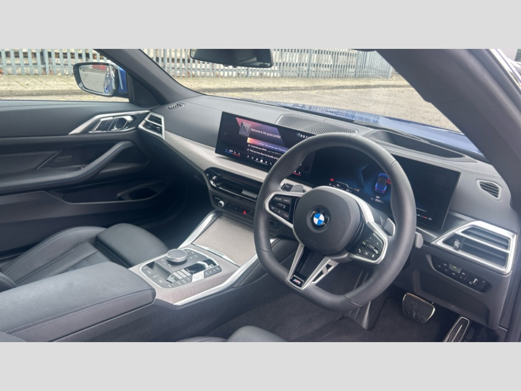 BMW 4 Series 420i M Sport 2dr Step Auto Active guard plus, Attentiveness assist, Auto start-stop, Bluetooth hands free facility with USB audio interface with audio streaming, BMW ConnectedDrive online services, BMW iDrive controller on centre console, BMW service history, BMW Teleservices, Brake pad wear indicator in front and rear, Check Control warning system for monitoring of lights and door/luggage compartment open warning, Condition based service, Electric power steering with Servotronic steering optimised at all speed ranges, Gearshift time display in manual mode, Instrument cluster with speedometer with mph readout, tachometer, fuel gauge and oil temperature gauge, Integrated owners handbook, Language version English, Oil sensor for level and grade, warning by check control system, On board computer - average speed, fuel consumption, outside temp display with acoustic warning, clock/date, service interval, odometer/trip meter, Optimum shift indicator, Run flat indicator, Shifting point display, Variable sport steering, 8 speed automatic steptronic transmission with gearshift paddles, Active sound design, Balanced 50/50 weight distribution, Double joint spring strut front axle, Double VANOS, Drive performance control - ECO PRO, comfort and sport modes, High precision injection, Low centre of gravity, Petrol Particulate Filter, Sprint mode, Stroke dependent dampers, VALVETRONIC engine management, 1x USB type A with data transfer and 1.5 Amp charging function in the centre console, 1x USB type C with 3 Amp charging function in the front centre armrest, DAB tuner, Electronic service booklet, Personal eSim, Acoustic glazing, Adaptive LED Headlights, Automatic headlight beam throw control with load dependent regulating reaction, dynamic compensation of braking dive and acceleration squat, Automatic windscreen wipers and automatic headlight, Automatically dimming electrochromatic rear view mirror, BMW emblem on engine compartment lid and tailgate, BMW Individual high gloss shadow line with extended contents, BMW individual lights shadow line, BMW radiator grille with mesh grille, end face of the nuggets in aluminium matt and frame in chrome matt, Body colour fuel filler flap, Body colour roof fin, Bonnet and tailgate badge, Brushed aluminium inserts in the front door sill finishers with BMW designation, Door sill strips, Dynamic brake lights, Electric windows - front and rear, with open/close fingertip control, anti trap facility and comfort closing function all round, Exterior mirrors - electrically folding with anti-dazzle, Fading support, Follow me home headlights, Front and rear bumper system, Front apron plastic in body colour, Green tinted heat protection glazing, High beam assistant, High gloss shadow line exterior trim, Illuminated bow type door handles in body colour drivers side with door lock, Interior rear view electrochromatic mirror with automatic anti dazzle function, LED 3rd brake light, LED daytime running lights, LED front fog lights, LED front indicators, Licence plate panel integrated into front bumper and tailgate, Lightweight engineering, M designation on front side panels, left and right, One piece front bumper cover including towing eye cover in body colour, Preparation for high beam assistant, Rear boot, Reversing light, Side frame trim strip black matt, Two part LED tailights in L-shape with components in smoked glass, brake light, LED turn indicator and rear fog light, Visible exhaust tailpipe finisher, Visible VIN plate, Welcome lights in interior and door handle area, Widened track and increased camber values for max transverse dynamics, agility and steering precision, Wind deflector, Window recess finisher strip in matt black, Windscreen wipers with integrated heated washing jets, 12V power socket in front centre console, 2 2nd row folding seats, 2 front cupholder in centre console with clamping elements and matt black inlay, 2 Rear seat headrests, 2 zone automatic air conditioning, 2nd row centre armrest with built-in cupholders, 3 spoke flat bottom M sport leather multifunction steering wheel, 4 pieces lashing eyelets in luggage compartment, Anthracite headlining, Armrest integrated in front and rear door trim + front centre console armrest, Battery in luggage compartment, BMW ID, Driver seat backrest width adjustment, Electric memory seats - electrically adjustable seats with drivers seat memory, exterior mirrors memory and automatic parking function, Extended storage - Luggage compartment partition net on left side trim panel, Bag hook on both sides of the luggage compartment, Front and rear door pockets, Front and rear reading lights, Front footwell lights, Front sport seats, Heated driver and front passenger seats, Height adjustable front headrests, Height adjustable mechanically and infinitely variable steering column, Illuminated armrest storage compartment, Illuminated glove compartment with separate small compartment, Luggage compartment light, Make-up mirror lights, Single front passenger seat, Storage compartment in rear centre console, Sunvisors with illuminated vanity mirrors and ticket pocket, Toolkit located in luggage compartment, Velour front floor mats, Ambient lighting pack - 4 Series, Connected professional package - 4 Series, M sport exterior styling pack - 4 Series, 2 x 3-point rear seatbelts, Battery safety cut-off, BMW emergency call, Brake energy regeneration, Braking pre-tensioning, Child seat ISOFIX attachment for the two outer rear seats, Coasting in idle in ECO PRO mode, Cornering brake control (CBC), Crash sensor activating of airbags, Unlocking doors, hazard warning lights, interior light, safety battery terminal, Driver and front passenger side airbags, integrated in the door side seat backrest bolsters for all seat variants, Driver/Front Passenger airbags, Dry braking, Dynamic brake control, Dynamic stability control + (DSC+) - Anti-lock Braking System (ABS) with brake assist and cornering brake control + Automatic Stability