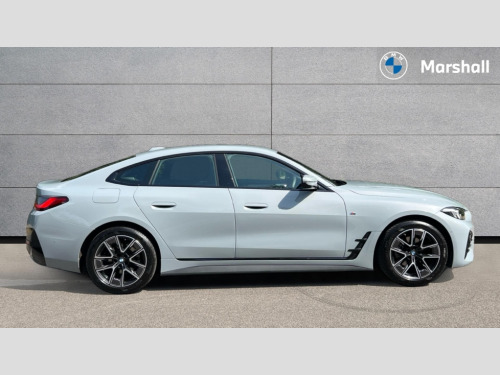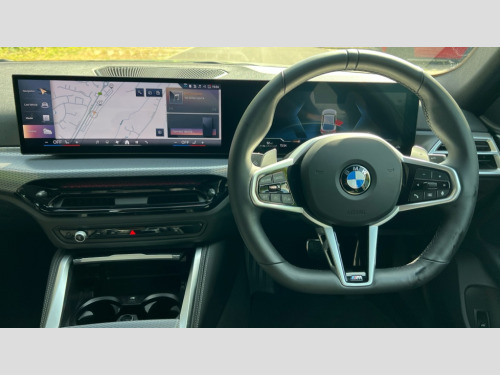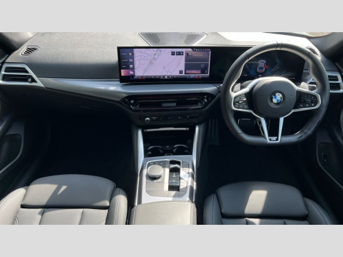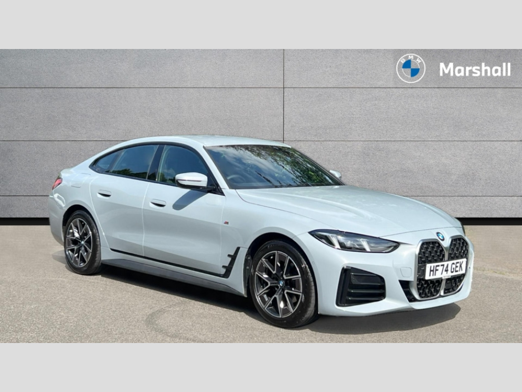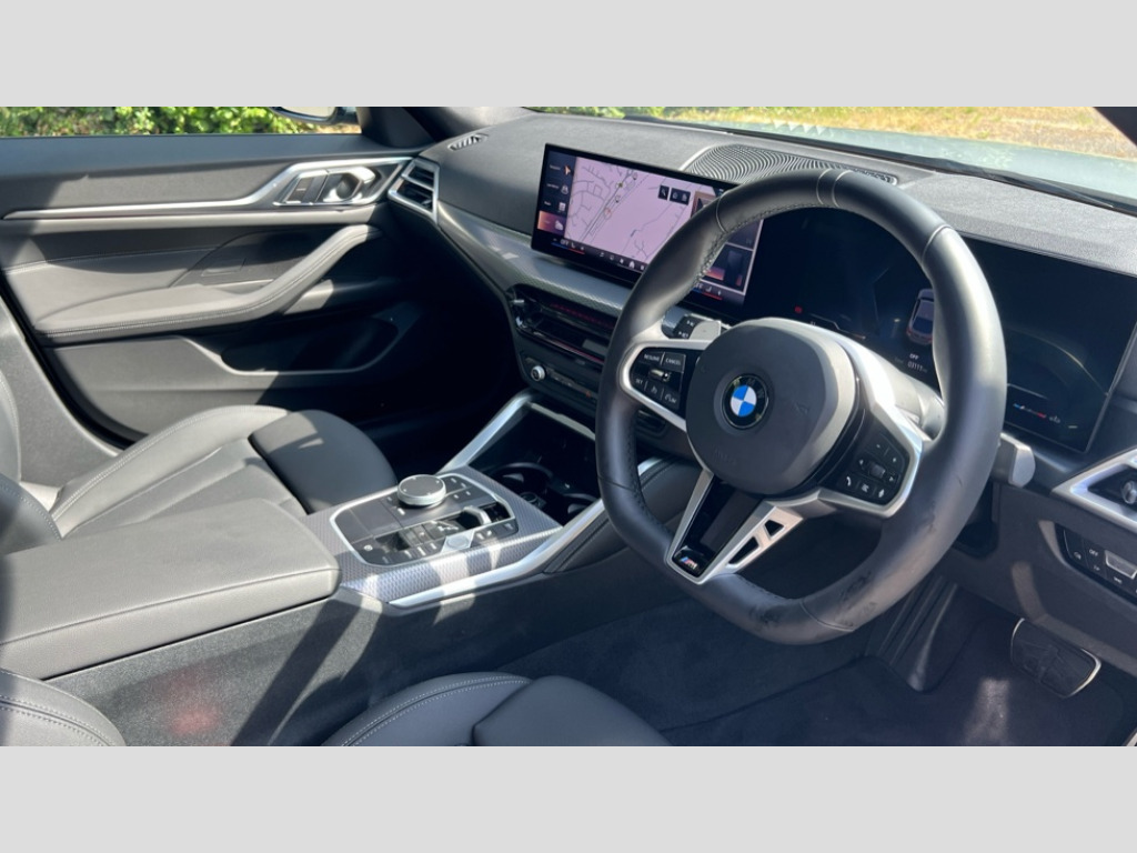 BMW 4 Series 420i M Sport 5dr Step Auto Active guard plus, Attentiveness assist, Auto start-stop, Bluetooth hands free facility with USB audio interface with audio streaming, BMW ConnectedDrive online services, BMW iDrive controller on centre console, BMW Live Cockpit Plus Nav-12.3" instrument&14.9" control Widescreen curved display/Intelligent Voice Assist/iDrive touch/Access 3rd party app/4G LTE, BMW service history, BMW Teleservices, Brake pad wear indicator in front and rear, Check Control warning system for monitoring of lights and door/luggage compartment open warning, Condition based service, Electric bootlid, Electric power steering with Servotronic steering optimised at all speed ranges, Gearshift time display in manual mode, Instrument cluster with speedometer with mph readout, tachometer, fuel gauge and oil temperature gauge, Integrated owners handbook, Language version English, Oil sensor for level and grade, warning by check control system, On board computer - average speed, fuel consumption, outside temp display with acoustic warning, clock/date, service interval, odometer/trip meter, Optimum shift indicator, Run flat indicator, Shifting point display, Tailgate, Variable sport steering, 8 speed automatic steptronic transmission with gearshift paddles, Balanced 50/50 weight distribution, Double joint spring strut front axle, Double VANOS, Drive performance control - ECO PRO, comfort and sport modes, High precision injection, Low centre of gravity, Petrol Particulate Filter, Stroke dependent dampers, VALVETRONIC engine management, 1x USB type A with data transfer and 1.5 Amp charging function in the centre console, 1x USB type C with 3 Amp charging function in the front centre armrest, DAB tuner, Electronic service booklet, Personal eSim, Acoustic glazing, Automatic headlight beam throw control with load dependent regulating reaction, dynamic compensation of braking dive and acceleration squat, Automatic windscreen wipers and automatic headlight, Automatically dimming electrochromatic rear view mirror, BMW emblem on engine compartment lid and tailgate, BMW kidney grille with mesh grille front side of the nuggets in matt aluminium and frame in chrome high gloss, Body colour fuel filler flap, Body colour roof fin, Brushed aluminium inserts in the front door sill finishers with BMW designation, Door sill strips, Dynamic brake lights, Electric windows - front and rear, with open/close fingertip control, anti trap facility and comfort closing function all round, Exterior mirrors - electrically folding with anti-dazzle, Fading support, Follow me home headlights, Front and rear bumper system, Front apron plastic in body colour, Green tinted heat protection glazing, High gloss shadow line exterior trim, Illuminated bow type door handles in body colour drivers side with door lock, Interior rear view electrochromatic mirror with automatic anti dazzle function, LED 3rd brake light, LED daytime running lights, LED front fog lights, LED front indicators, Licence plate panel integrated into front bumper and tailgate, Lightweight engineering, Low and high beam headlights in Bi-LED, M designation on front side panels, left and right, M rear boot spoiler, One piece front bumper cover including towing eye cover in body colour, Preparation for high beam assistant, Rear side wing doors, Rear wiper, Reversing light, Side frame decorative moulding black matt, Two part LED tailights in L-shape with components in smoked glass, brake light, LED turn indicator and rear fog light, Visible exhaust tailpipe finisher, Visible VIN plate, Welcome lights in interior and door handle area, Widened track and increased camber values for max transverse dynamics, agility and steering precision, Window recess finisher strip in matt black, Windscreen wipers with integrated heated washing jets, 12V power socket in front centre console, 2 front cupholder in centre console with clamping elements and matt black inlay, 3 rear headrests, 3 seat bench in 2nd row, 3 spoke flat bottom M sport leather multifunction steering wheel, 3 zone automatic air conditioning, 4 pieces lashing eyelets in luggage compartment, 40:20:40 split folding rear seat and rear centre armrest with two cupholders, Anthracite headlining, Armrest integrated in front and rear door trim + front centre console armrest, Battery in luggage compartment, BMW ID, Extended storage in Combination with sport seat net pocket on rear backrest, Four grab handles integrated in roof lining, Front and rear door pockets, Front and rear reading lights, Front footwell lights, Heated driver and front passenger seats, Height adjustable front headrests, Height adjustable mechanically and infinitely variable steering column, Illuminated armrest storage compartment, Illuminated glove compartment with separate small compartment, Luggage compartment light, Luggage compartment seprating net on side trim left/right, Bag hook,12V socket,TTH button, USB C charging in rear, Folding compartment on driver side, Make-up mirror lights, Single front passenger seat, Storage compartment in rear centre console, Sunvisors with illuminated vanity mirrors and ticket pocket, Toolkit located in luggage compartment, Velour front floor mats, Ambient lighting pack - 4 Series, Connected professional package - 4 Series, M sport exterior styling pack - 4 Series, Park assist pack - 4 Series, 3 point seatbelts on all seats, Battery safety cut-off, BMW emergency call, Brake energy regeneration, Braking pre-tensioning, Child seat ISOFIX attachment for the two outer rear seats, Coasting in idle in ECO PRO mode, Cornering brake control (CBC), Crash sensor activating of airbags, Unlocking doors, hazard warning lights, interior light, safety battery terminal, Driver and front passenger side airbags, integrated in the door side seat backrest bolsters for all seat variants, Driver/Front Passenger airbags, Dry braking, Dynamic brake control, Dynamic stability control + (DSC+) - Anti-lock Braking System (ABS) with