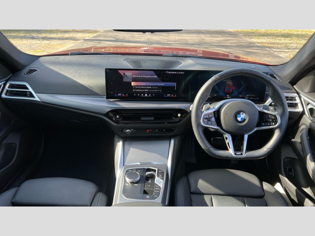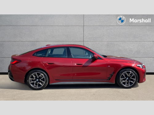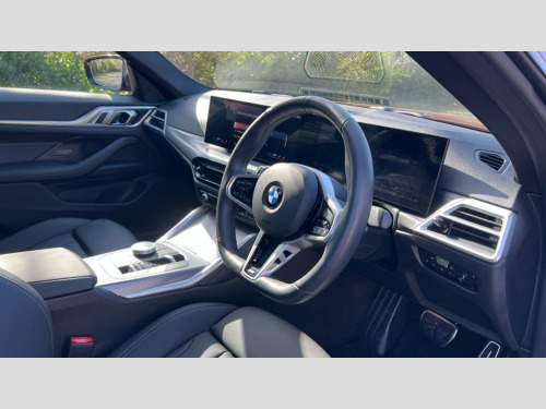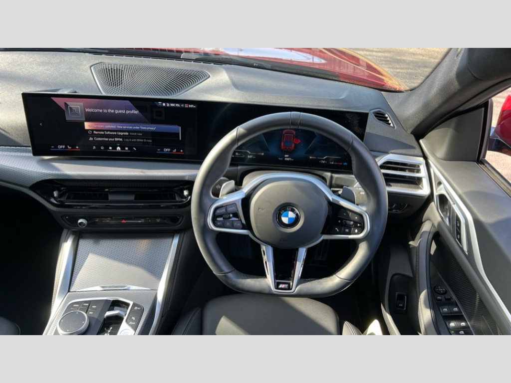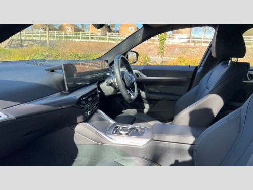 BMW 4 Series 420i M Sport 5dr Step Auto Active guard plus, Auto start-stop, Bluetooth hands free facility with USB audio interface with audio streaming, BMW ConnectedDrive online services, BMW iDrive controller on centre console, BMW Live Cockpit Plus Nav-12.3" instrument&14.9" control Widescreen curved display/Intelligent Voice Assist/iDrive touch/Access 3rd party app/4G LTE, BMW service history, BMW Teleservices, Brake pad wear indicator in front and rear, Check Control warning system for monitoring of lights and door/luggage compartment open warning, Condition based service, Electric bootlid, Electric power steering with Servotronic steering optimised at all speed ranges, Fatigue detection system, Gearshift time display in manual mode, Instrument cluster with speedometer with mph readout, tachometer, fuel gauge and oil temperature gauge, Integrated owners handbook, Language version English, Oil sensor for level and grade, warning by check control system, On board computer - average speed, fuel consumption, outside temp display with acoustic warning, clock/date, service interval, odometer/trip meter, Optimum shift indicator, Shifting point display, Tailgate, Variable sport steering, 8 speed automatic steptronic transmission with gearshift paddles, Double joint spring strut front axle, Double VANOS, Drive performance control - ECO PRO, comfort and sport modes, High precision injection, Low centre of gravity, Petrol Particulate Filter, Stroke dependent dampers, VALVETRONIC engine management, 2x USB Type C ports in front centre console for charging and data transfer, 2x USB Type C ports in rear centre console for charging, DAB tuner, Electronic service booklet, Acoustic glazing, Automatic headlight beam throw control with load dependent regulating reaction, dynamic compensation of braking dive and acceleration squat, Automatic windscreen wipers and automatic headlight, Automatically dimming electrochromatic rear view mirror, BMW emblem on engine compartment lid and tailgate, BMW kidney grille with mesh grille front side of the nuggets in matt aluminium and frame in chrome high gloss, Body colour fuel filler flap, Body colour roof fin, Brushed aluminium inserts in the front door sill finishers with BMW designation, Door sill strips, Dynamic brake lights, Electric windows - front and rear, with open/close fingertip control, anti trap facility and comfort closing function all round, Exterior mirrors - electrically folding with anti-dazzle, Fading support, Follow me home headlights, Front and rear bumper system, Front apron plastic in body colour, Green tinted heat protection glazing, High gloss shadow line exterior trim, Illuminated bow type door handles in body colour drivers side with door lock, Interior rear view electrochromatic mirror with automatic anti dazzle function, LED 3rd brake light, LED daytime running lights, LED front fog lights, LED front indicators, LED Headlights, Licence plate panel integrated into front bumper and tailgate, Lightweight engineering, M sport rear boot spoiler with body colour gurney, One piece front bumper cover including towing eye cover in body colour, Preparation for high beam assistant, Rear side wing doors, Rear wiper, Reversing light, Side frame decorative moulding black matt, Two part LED tailights in L-shape with components in smoked glass, brake light, LED turn indicator and rear fog light, Visible exhaust tailpipe finisher, Visible VIN plate, Welcome lights in interior and door handle area, Widened track and increased camber values for max transverse dynamics, agility and steering precision, Window recess cover black high gloss, Windscreen wipers with integrated heated washing jets, 12V power socket in front centre console, 2 front cupholder in centre console with clamping elements and matt black inlay, 3 rear headrests, 3 seat bench in 2nd row, 3 spoke M sport leather multifunction steering wheel, 3 zone automatic air conditioning, 4 pieces lashing eyelets in luggage compartment, 40:20:40 split folding rear seat and rear centre armrest with two cupholders, Anthracite headlining, Armrest integrated in front and rear door trim + front centre console armrest, Battery in luggage compartment, BMW ID, Extended storage in Combination with sport seat net pocket on rear backrest, Four grab handles integrated in roof lining, Front and rear door pockets, Front and rear footwell lights, Front and rear reading lights, Front sport seats, Heated driver and front passenger seats, Height adjustable front headrests, Height adjustable mechanically and infinitely variable steering column, Illuminated armrest storage compartment, Illuminated glove compartment with separate small compartment, Luggage compartment lighting, Luggage compartment seprating net on side trim left/right, Bag hook,12V socket,TTH button, USB C charging in rear, Folding compartment on driver side, Make-up mirror lights, Single front passenger seat, Storage compartment in rear centre console, Sunvisors with illuminated vanity mirrors and ticket pocket, Toolkit located in luggage compartment, Velour front floor mats, Ambient lighting pack - 4 Series, Connected professional package - 4 Series, M sport exterior styling pack - 4 Series, Park assist pack - 4 Series, 3 point seatbelts on all seats, Battery safety cut-off, BMW emergency call, Brake energy regeneration, Braking pre-tensioning, Child proof locking system in rear door, Child seat ISOFIX attachment for the two outer rear seats, Coasting in idle in ECO PRO mode, Cornering brake control (CBC), Crash sensor activating of airbags, Unlocking doors, hazard warning lights, interior light, safety battery terminal, Driver and front passenger side airbags, integrated in the door side seat backrest bolsters for all seat variants, Driver/Front Passenger airbags, Dry braking, Dynamic brake control, Dynamic stability control + (DSC+) - Anti-lock Braking System (ABS) with brake assist and cornering brake control + Automatic Stability Control (ASC), Dynam