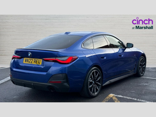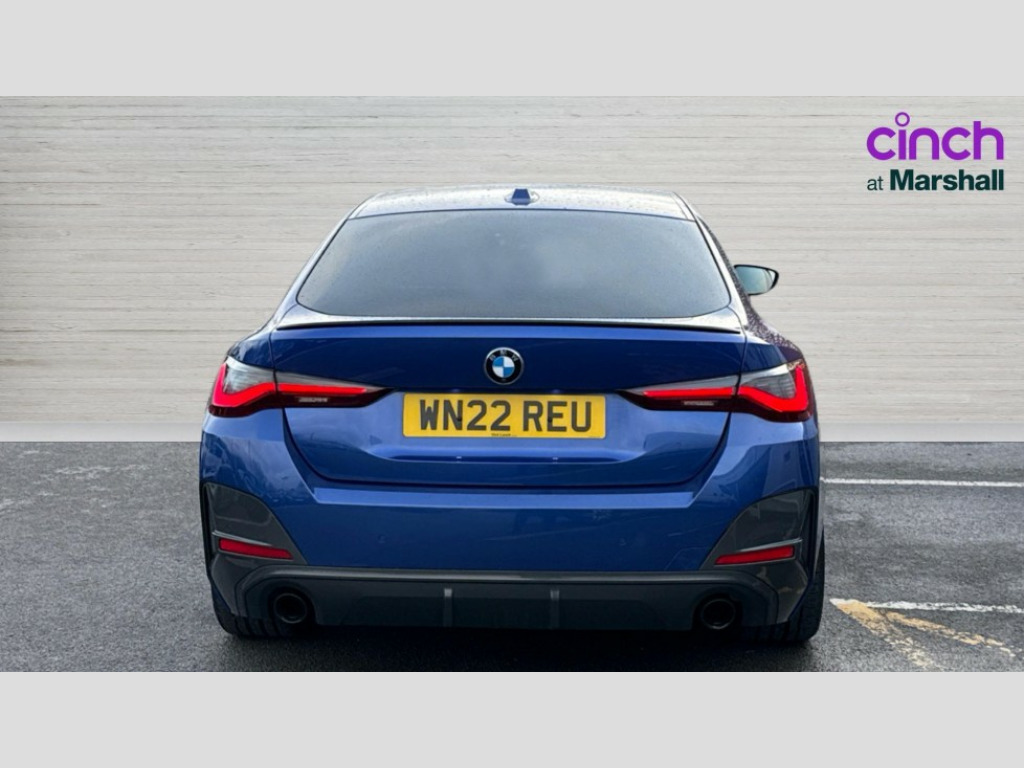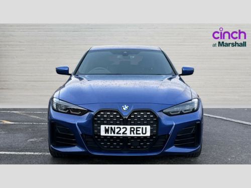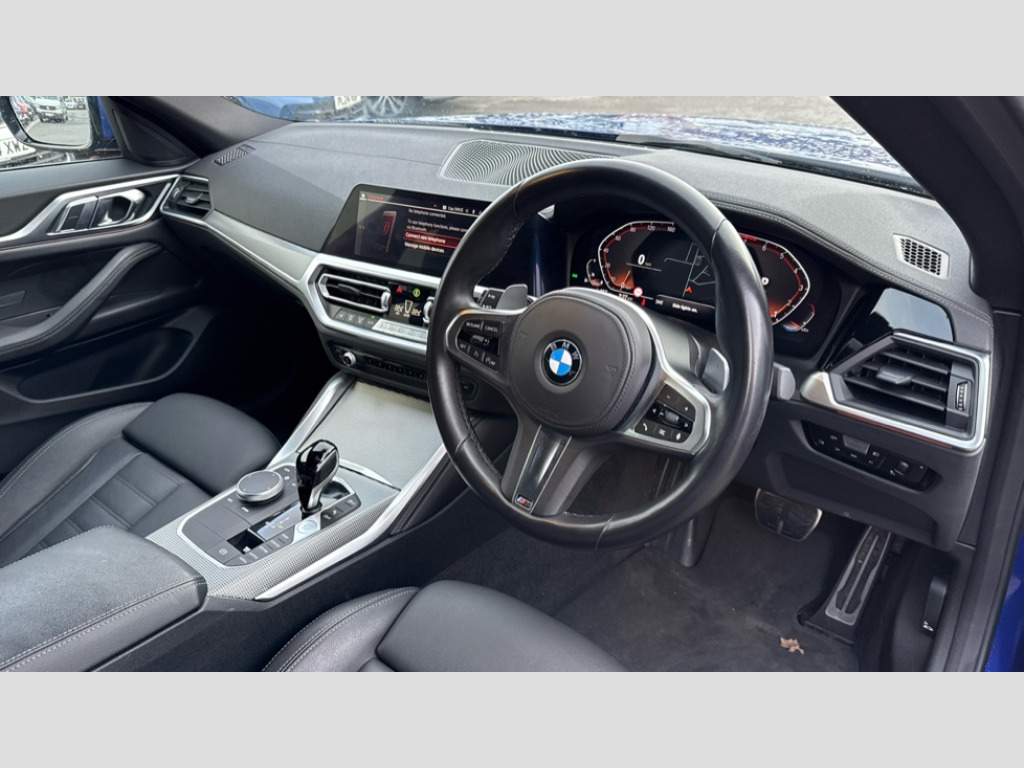 BMW 4 Series 420i M Sport 5dr Step Auto Active guard plus, Attentiveness assist, Auto start-stop, BMW ConnectedDrive online services, BMW iDrive controller on centre console, BMW Live Cockpit Professional Nav with 12.3" instrument display + 10.25" display, Intelligent Voice Assist, BMW OS 7, HDD, 2USB, 4G LTE connect, BMW service history, BMW Teleservices, Brake pad wear indicator in front and rear, Check Control warning system for monitoring of lights and door/luggage compartment open warning, Condition based service, Cruise control with brake assist, Electric bootlid, Electric power steering with Servotronic steering optimised at all speed ranges, Gearshift time display in manual mode, Instrument cluster with speedometer with mph readout, tachometer, fuel gauge and oil temperature gauge, Integrated owners handbook, Oil sensor for level and grade, warning by check control system, On board computer - average speed, fuel consumption, outside temp display with acoustic warning, clock/date, service interval, odometer/trip meter, Optimum shift indicator, Tailgate, Variable sport steering, 8 speed automatic steptronic transmission with gearshift paddles, Double VANOS, Drive performance control - ECO PRO, comfort and sport modes, Electronic differential lock control (EDLC), High precision injection, Low centre of gravity, M sport suspension, Petrol Particulate Filter, Stroke dependent dampers, VALVETRONIC engine management, DAB tuner, Electronic service booklet, Acoustic glazing, Automatic headlight beam throw control with load dependent regulating reaction, dynamic compensation of braking dive and acceleration squat, Automatic windscreen wipers and automatic headlight, Automatically dimming electrochromatic rear view mirror, BMW emblem on engine compartment lid and tailgate, BMW kidney grille with mesh grille front side of the nuggets in matt aluminium and frame in chrome high gloss, Body colour fuel filler flap, Body colour M sport rear spoiler, Body colour roof fin, Brushed aluminium inserts in the front door sill finishers with BMW designation, Dynamic brake lights, Electric windows - front and rear, with open/close fingertip control, anti trap facility and comfort closing function all round, Exhaust tailpipe - split left and right, Exterior mirrors - electrically folding with anti-dazzle, Fading support, Follow me home headlights, Front and rear bumper system, Front apron plastic in body colour, Green tinted heat protection glazing, High gloss shadow line exterior trim, Illuminated bow type door handles in body colour drivers side with door lock, Interior rear view electrochromatic mirror with automatic anti dazzle function, LED daytime running lights, LED front fog lights, Licence plate panel integrated into front bumper and tailgate, Lightweight engineering, M designation on front side panels, left and right, Model designation on right side of tailgate, One piece front bumper cover including towing eye cover in body colour, Preparation for high beam assistant, Rear side wing doors, Rear wiper, Reversing light, Side frame decorative moulding black matt, Two part LED tailights in L-shape with components in smoked glass, brake light, LED turn indicator and rear fog light, Visible VIN plate, Welcome lights in interior and door handle area, Widened track and increased camber values for max transverse dynamics, agility and steering precision, Window recess cover black high gloss, Windscreen wipers with integrated heated washing jets, 12V power socket in front centre console, 2 front cupholder in centre console with clamping elements and matt black inlay, 3 rear headrests, 3 seat bench in 2nd row, 3 spoke M sport leather multifunction steering wheel, 3 zone automatic air conditioning, 4 pieces lashing eyelets in luggage compartment, 40:20:40 split folding rear seat and rear centre armrest with two cupholders, Ambient lighting with welcome carpet light, Anthracite headlining, Armrest integrated in front and rear door trim + front centre console armrest, Driver seat backrest width adjustment, Four grab handles integrated in roof lining, Front and rear door pockets, Front and rear footwell lights, Front and rear reading lights, Front headrests, Front sport seats, Heated driver and front passenger seats, Height adjustable mechanically and infinitely variable steering column, Illuminated armrest storage compartment, Illuminated glove compartment with separate small compartment, Luggage compartment light, Make-up mirror lights, Single front passenger seat, Storage compartment in rear centre console, Sunvisors with vanity mirrors and ticket pocket, Toolkit located in luggage compartment, Velour front floor mats, Vernasca leather upholstery, Connected professional package - 4 Series, M sport exterior styling pack - 4 Series, Park assist pack - 4 Series, 3 point seatbelts on all seats, Battery safety cut-off, BMW emergency call, Brake energy regeneration, Braking pre-tensioning, Child proof locking system in rear door, Child seat ISOFIX attachment for the two outer rear seats, Coasting in idle in ECO PRO mode, Cornering brake control (CBC), Crash sensor activating of airbags, Unlocking doors, hazard warning lights, interior light, safety battery terminal, Driver and front passenger side airbags, integrated in the door side seat backrest bolsters for all seat variants, Driver/Front Passenger airbags, Dry braking, Dynamic brake control, Dynamic stability control + (DSC+) - Anti-lock Braking System (ABS) with brake assist and cornering brake control + Automatic Stability Control (ASC), Dynamic Traction Control - DTC, Electric parking brake including automatic hold function and automatic release of the parking brake when driving off, Front and rear ventilated brake disc, Front passenger manual airbag deactivation, Head airbags for all 4 outer seats, Hill start assistant, Seat belt security check for driver and front passenger, Seat belt with belt stopper, pyrotechnic belt tensioners and belt force limiters