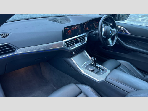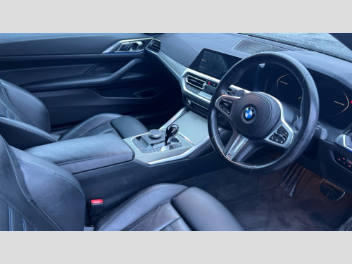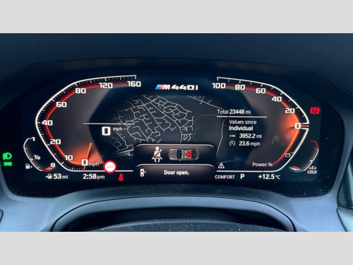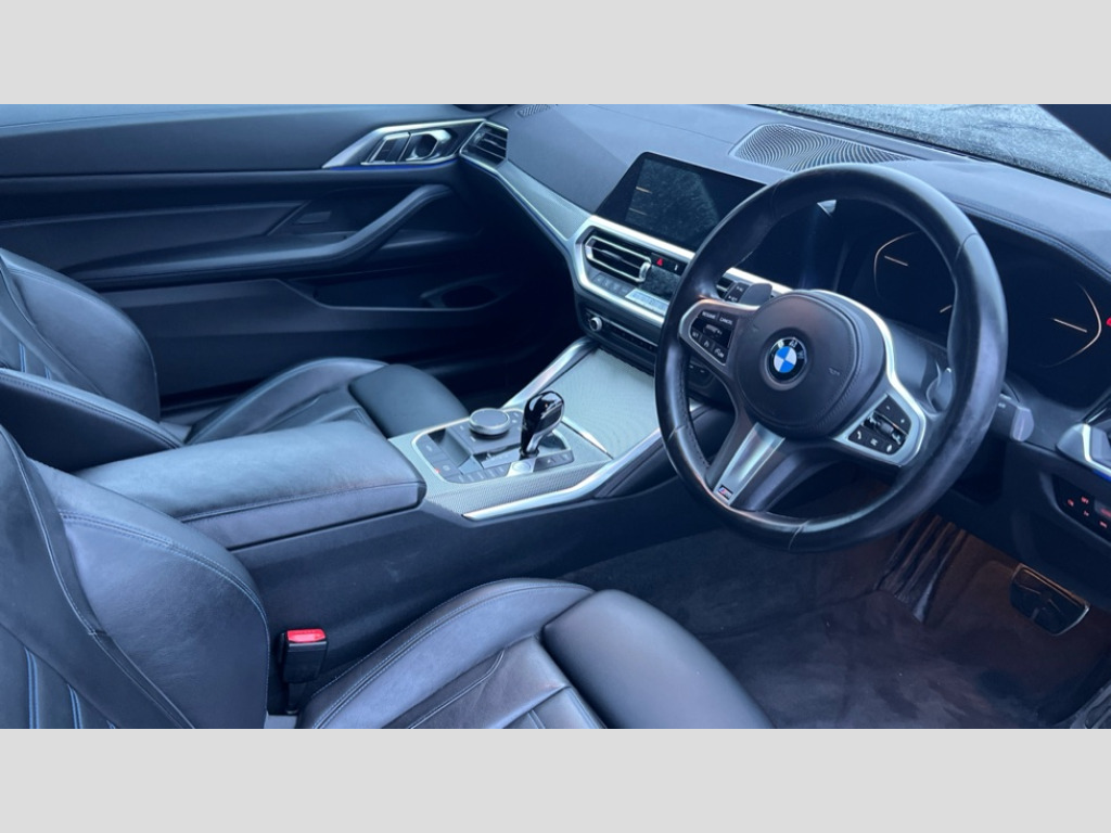 BMW 4 Series M440i xDrive MHT 2dr Step Auto Active guard plus, Attentiveness assist, Auto start-stop, BMW ConnectedDrive online services, BMW iDrive controller on centre console, BMW Live Cockpit Professional Nav with 12.3" instrument display + 10.25" display, Intelligent Voice Assist, BMW OS 7, HDD, 2USB, 4G LTE connect, BMW service history, BMW Teleservices, Brake pad wear indicator in front and rear, Check Control warning system for monitoring of lights and door/luggage compartment open warning, Condition based service, Electric power steering with Servotronic steering optimised at all speed ranges, Gearshift time display in manual mode, Instrument cluster with speedometer with mph readout, tachometer, fuel gauge and oil temperature gauge, Integrated owners handbook, Oil sensor for level and grade, warning by check control system, On board computer - average speed, fuel consumption, outside temp display with acoustic warning, clock/date, service interval, odometer/trip meter, Optimum shift indicator, Variable sport steering, 48V Mild hybrid technology, 8 speed automatic steptronic transmission with gearshift paddles, Adaptive M suspension, Balanced 50/50 weight distribution, Driving experience modes - Comfort,ECO PRO,Sport and Sport+ mode, Low centre of gravity, M Sport differential, Petrol Particulate Filter, Stroke dependent dampers, xDrive system permanent all-wheel drive variable torque distribution, DAB tuner, Electronic service booklet, Acoustic glazing, Automatic headlight beam throw control with load dependent regulating reaction, dynamic compensation of braking dive and acceleration squat, Automatic windscreen wipers and automatic headlight, Automatically dimming electrochromatic rear view mirror, BMW emblem on engine compartment lid and tailgate, Body colour fuel filler flap, Body colour roof fin, Brushed aluminium inserts in the front door sill finishers with BMW designation, Dynamic brake lights, Electric windows - front and rear, with open/close fingertip control, anti trap facility and comfort closing function all round, Exterior mirrors - electrically folding with anti-dazzle, Fading support, Front and rear bumper system, Front apron plastic in body colour, Green tinted heat protection glazing, Illuminated bow type door handles in body colour drivers side with door lock, Interior rear view electrochromatic mirror with automatic anti dazzle function, LED daytime running lights, Licence plate panel integrated into front bumper and tailgate, Lightweight engineering, M designation on front side panels, left and right, One piece front bumper cover including towing eye cover in body colour, Preparation for high beam assistant, Rear boot, Side frame decorative moulding black matt, Third brake light, Twin exhaust tailpipes x2, Two part LED tailights in L-shape with components in smoked glass, brake light, LED turn indicator and rear fog light, Visible VIN plate, Welcome lights in interior and door handle area, Widened track and increased camber values for max transverse dynamics, agility and steering precision, Window recess cover black high gloss, Windscreen wipers with integrated heated washing jets, xDrive designation on left tailgate, 12V power socket in front centre console, 2 2nd row folding seats, 2 front cupholder in centre console with clamping elements and matt black inlay, 2 Rear seat headrests, 2nd row centre armrest with built-in cupholders, 3 spoke M sport leather multifunction steering wheel, 3 zone automatic air conditioning, 4 pieces lashing eyelets in luggage compartment, Ambient lighting with welcome carpet light, Armrest integrated in front and rear door trim + front centre console armrest, Electric seat adjustment with memory, Four grab handles integrated in roof lining, Front and rear door exit lighting (left / right), Front and rear door pockets, Front and rear footwell lights, Front and rear reading lights, Front headrests, Heated driver and front passenger seats, Height adjustable mechanically and infinitely variable steering column, Illuminated armrest storage compartment, Illuminated glove compartment with separate small compartment, Luggage compartment light, Make-up mirror lights, Single front passenger seat, Storage compartment in rear centre console, Sunvisors with vanity mirrors and ticket pocket, Toolkit located in luggage compartment, USB type - C cable charging function in the rear centre console, Velour front floor mats, Connected professional package - 4 Series, M sport exterior styling pack - 4 Series M440i, 2 x 3-point rear seatbelts, Battery safety cut-off, BMW emergency call, Brake energy regeneration, Braking pre-tensioning, Child proof rear door locking, Child seat ISOFIX attachment for the two outer rear seats, Coasting in idle in ECO PRO mode, Cornering brake control (CBC), Crash sensor activating of airbags, Unlocking doors, hazard warning lights, interior light, safety battery terminal, Driver and front passenger side airbags, integrated in the door side seat backrest bolsters for all seat variants, Driver/Front Passenger airbags, Dry braking, Dynamic brake control, Dynamic stability control + (DSC+) - Anti-lock Braking System (ABS) with brake assist and cornering brake control + Automatic Stability Control (ASC), Dynamic Traction Control - DTC, Electric parking brake including automatic hold function and automatic release of the parking brake when driving off, Electronic differential lock control (EDLC), Front and rear ventilated brake disc, Front passenger manual airbag deactivation, Head airbags for all 4 outer seats, Hill start assistant, M Sport seatbelts, Seat belt security check for driver and front passenger, Seat belt with belt stopper, pyrotechnic belt tensioners and belt force limiters, Side impact protection, Tyre pressure monitoring with three level warning strategy, Warning triangle and first aid kit, Alarm system (Thatcham 1) with remote control and electronic engine immobiliser, Central locking switch for all doors,