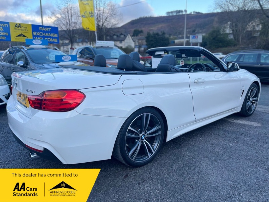 Welcome to the sale of this BMW 435i M Sport Convertible. This is a standout example that perfectly blends performance, luxury and everyday usability. With just 36,000 miles covered backed with a full service history consisting of 4 BMW services and 3 independent services you can rest assured knowing you are buying an exceptional example. Finished in Alpine White with a contrasting black Dakota leather interior, it has a timeless, sporty look that suits the M Sport styling perfectly. Under the bonnet sits BMW?s superb 3.0-litre straight-six turbo petrol engine, delivering strong, smooth performance of 302bhp coupled with the 8-speed automatic gearbox so whether you are cruising comfortably or enjoying a more spirited drive this is a more than capable car. As standard the M Sport has an amazing spec of: Alpine White M Sport Body Styling M aerodynamic front & rear bumpers M side skirts M Sport Braking System Xenon Headlights with LED Angel Eyes LED Rear Lights Front & Rear Parking Sensors (PDC) Heated, electrically adjustable & folding door mirrors Twin Exhaust System M Sport Exterior Badging Hard-top electric folding roof Black Dakota Leather Interior M Sport Leather Steering Wheel Brushed Aluminium Interior Trim Dual-Zone Automatic Climate Control Ambient Interior Lighting Auto-dimming Rear View Mirror M Door Sill Plates Leather Armrest Split-fold Rear Seats BMW iDrive Controller with Touch Function Bluetooth Hands-Free & Audio Streaming DAB Digital Radio USB & AUX Connectivity BMW ConnectedDrive Services On-Board Computer Digital Service History (BMW iDrive) Driving & Performance Features Driving Experience Control ECO PRO Comfort Sport Sport+ Paddle Shift Gear Change Start/Stop Technology Dynamic Stability Control (DSC) Dynamic Traction Control (DTC) M Sport Suspension Cruise Control with Speed Limiter As well as that massive standard spec this low mileage exceptional example also benefits from the added factory options: ? Professional Media Package ? Widescreen BMW Professional Navigation ? Larger iDrive display ? Hard-drive navigation ? Enhanced Bluetooth ? Voice control ? Front & Rear Parking Sensors (PDC) ? Heated Front Seats ? Electric Memory Seats ? Electric seat adjustment ? Memory function (driver side) ? M Sport Braking System ? Larger M-branded brake calipers ? M Sport Plus Elements ? Upgraded wheels ? Enhanced interior detailing With only 36k from new, full service history, 2 keys, full book pack, full V5 and HPI clear and this spec you will not find another one nicer for this price. On top of all that, For a car of this standard we will also include a Brand New MOT with no advisories, 12 Months Nationwide warranty, 12 Months Breakdown cover and welcome any independent inspection. What's Included in every Sale... **BEST PRICES GURANTEED** *Min 3 Months Warranty *12 Months AA Breakdown Cover *Min 6 Months MOT *Oil & Filter change before Sale *Full HPI Report *AA & TSI Trading Standards Approved Dealer *Low Rate Competitive Finance (Subject to status) *Walkaround Video Of Every Car available on Tic Tok *Nationwide Delivery *chargeable *Extended Warranties *5 Day Drive Away Insurance *chargable *Same Day Collection **More Pictures and walkaround Videos of every car on our Tic Tok Page BlueMotors Aberdare**To Apply for Finance Please call us directly