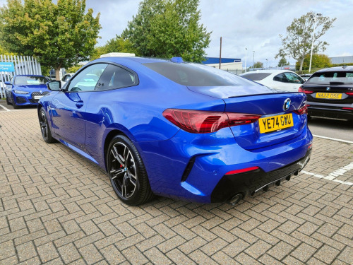 This BMW 4 Series 420i M Sport stands out with its impressive fuel economy of 44 mpg, low CO2 emissions, and a low insurance group, indicating it is more economical to run than many similar vehicles. You will also appreciate the large boot space, making it a practical choice for everyday use and longer journeys. Sport Automatic Transmission with Gearsh, Heated Steering Wheel, BMW Individual Lights Shadow Line, M Sport Brakes with Red Calipers, Electric Bootlid, Comfort Access, M Sport Seat Belts, Sun Protection Glass, Front Lumbar Support, Driver Seat Backrest Width Adjustment, High-Beam Assistant, Driving Assistant, Parking Assistant Plus, Adaptive LED Headlights and Laser Tail L, Wireless Charging Tray, Live Cockpit Pro with Head up Display, Harman/Kardon Surround Sound Audio, Indv. high-gloss shadowline- extended, M Sport Spoiler, Control D, M Sport Pro Pack, Technology Pack, Comfort Pack, EU6 RDE II exhaust emissions standard, 18 848 M Light Double-spoke Bicolour Al, Tyre Repair Kit, Variable Sport Steering, Alarm System, Aluminium Rhombicle Interior Trim, Ambient Lighting, Ext. mirrors- folding with anti-dazzle, Rear-view Mirror with Auto dimming, Extended storage, Heated front seats, Active Guard Plus, Automatic Air Conditioning, Cruise Control, BMW TeleServices, BMW Emergency Call, BMW Online Services, Connected Package Pro, Personal eSIM, DAB Radio, M Sport Suspension, M Sport Exterior Styling, High-gloss Shadowline Exterior Trim, Anthracite Headlining, COC additional contents, Active Pedestrian Safety, Control DAS 18, M Sport Package