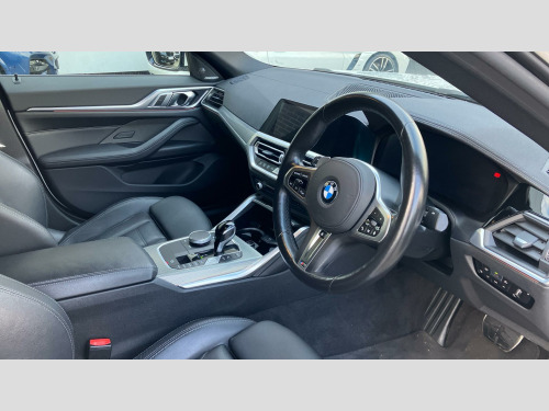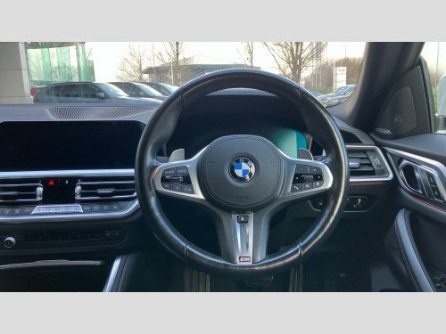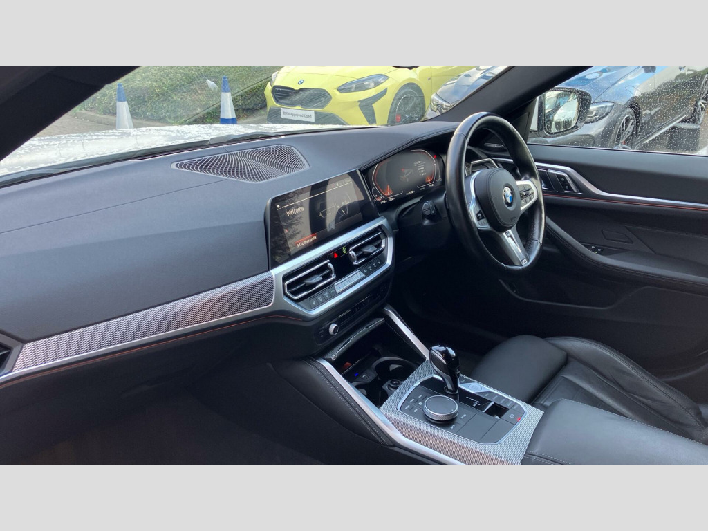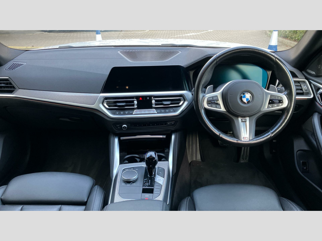 The spacious boot offers ample room for all your needs, making it a versatile choice for both daily commutes and longer journeys. Its acceleration is impressive, reaching 0-62mph in a swift 7.9 seconds, demonstrating its dynamic performance. These attributes, combined with its low mileage, position this 4 Series Gran Coupe as a standout option compared to other vehicles in its class. Deletion of Head-Up Display, Sport Automatic Transmission with Gearsh, M Adaptive Suspension, Heated Steering Wheel, 19" 859 M Y-spoke Bicolour Jet Black All, BMW Individual Lights Shadow Line, M Sport Brakes with Red Calipers, M Sport Seat Belts, Sun Protection Glass, Enhanced Bluetooth- wireless charging, WiFi Hotspot, Harman/Kardon Surround Sound Audio, Indv. high-gloss shadowline- extended, M Sport Spoiler, Special Steering Bluetooth Wifi, M Sport Pro Pack, Technology Pack, M Sport Pro Pack, EU6 RDE II exhaust emissions standard, Tyre Repair Kit, Variable Sport Steering, Alarm System, Sensatec Dashboard, Aluminium Tetragon Interior Trim, Ambient Lighting, Ext. mirrors- folding with anti-dazzle, Rear-view Mirror with Auto dimming, Driver Seat Backrest Width Adjustment, Heated front seats, Active Guard Plus, Parking Assistant, Automatic Air Conditioning, Cruise Control, BMW TeleServices, BMW Emergency Call, BMW Online Services, Connected Package Pro (limited duration), Live Cockpit Pro with Head up Display, DAB Radio, M Sport Exterior Styling, High-gloss Shadowline Exterior Trim, Anthracite Headlining, Active Pedestrian Safety, OAAS Prep High-beam Assist, M Sport Package