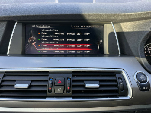 This 2015 BMW 5 Series Gran Turismo 535d M Sport is a standout example, having been cherished by just one owner from new and boasting a clear vehicle history check. This Euro 6 compliant model features a powerful 3.0L diesel engine, delivering impressive performance with a 0-62mph acceleration time of just 5.7 seconds. The M Sport trim enhances its dynamic appeal, while practical features like front and rear Park Distance Control, including parking assistance sensors, make manoeuvring effortless. Inside, you'll find automatic four zone climate control for personalised comfort, electric front seats with driver memory, and bright Xenon headlights for superior visibility.The generous boot space offers excellent practicality for all your needs, further enhancing the appeal of this already well equipped vehicle. The combination of its potent diesel engine, swift acceleration, and advanced technology clearly sets this BMW 5 Series Gran Turismo apart from other similar models on the market, offering a refined and capable driving experience. v power socket - front x2, 12v power socket - rear of centre console x2, 19in alloy wheels - m light v spoke - 302 m, 20gb memory, abs - anti lock braking system, asc - automatic stability control, air conditioning - automatic with four zone control, air microfilter, airbags - curtain head protection system, airbags - driver, airbags - front side, airbags - passenger, airbags - passenger deactivation, alarm - thatcham cat 1 and immobiliser, ambient lighting - switchable bmw classic orange - cold white - led, armrest - front with storage compartment, armrest - rear centre, automatically dimming rear view mirror, auxiliary input, bmw apps interface, bmw connecteddrive online services, bmw emergency call, bmw professional radio - single cd and mp3, bmw teleservices, bluetooth hands free with audio streaming, bluetooth hands free with usb audio interface, brake drying, brake fade compensation, brake force display, bumpers - body colour, cbc - cornering brake control, central locking - remote, child proof locking system - rear doors, comfort go keyless start, concierge service, crash sensor, cruise control with brake function, cup holders - front and rear, dab - digital radio, dbc - dynamic brake control, dsc - dynamic stability control plus, dtc - dynamic traction control, display - 6.5in colour screen, door handles - body colour, door mirrors - body coloured housing, drive performance control - eco pro - comfort - sport and sport plus, ebd - electronic brake-force distribution, electric windows - front and rear with fingertip control and anti pinch, electro mechanical parking brake, exterior mirrors - automatically dimming - folding, exterior trim - high-gloss shadowline, first aid kit, floor mats - velour, footwell lights - front, full black panel display, headlight range control - electric, headlight wash, headlights - auto on, headlining - m anthracite, hill start assistant, isofix - rear, information plus, interior trim - palladium grey, kidney grille - chrome with chrome vertical slats, luggage compartment - securing straps x2, m aerodynamic bodystyling, m sport package, navigation system - bmw professional multimedia, pdc - park distance control - front and rear, pdc - park distance control - rear, panoramic glass sunroof, passenger seat occupancy sensor - front, personal profile, power socket - 12v in luggage compartment, power steering - electric with servotronic, rain sensor with automatic headlight activation, real time traffic information, remote services, run flat tyres, seat adjustment - front - part electric, seats - front electric adjustment with driver memory, seats - front heated, seats - front sports, seats - height adjustable drivers, securing rings in luggage compartment x4, self-levelling air suspension - rear, shark fin aerial, smokers package, speakers x6, steering column - reach and rake manual adjustment, steering wheel - leather - m sport, steering wheel - multifunction controls, sun visors with illuminated vanity mirrors, suspension - m sport, tpms - tyre pressure monitoring system, tailgate operation - powered, toolkit, traffic jam assistant, usb connection, windows - heated protection glazing with green tint, windscreen washer jets - heated, xenon headlights, idrive controller with shortcut buttons, automatic transmission with gearshift paddles, dakota leather with exclusive stitching - black with black interior