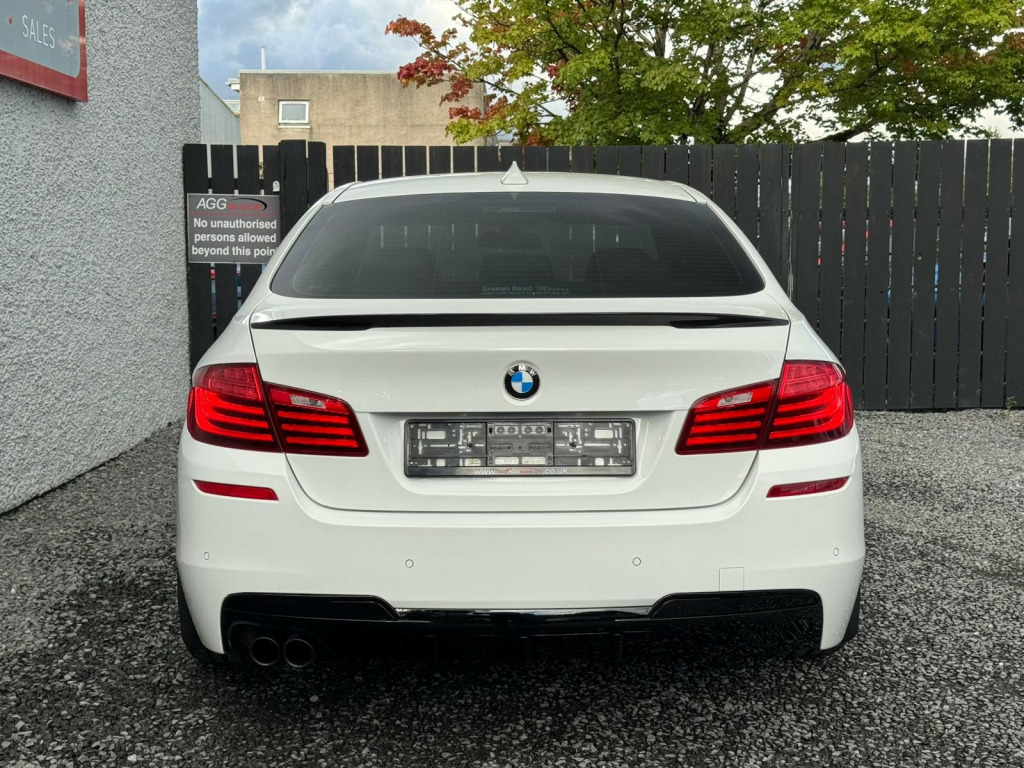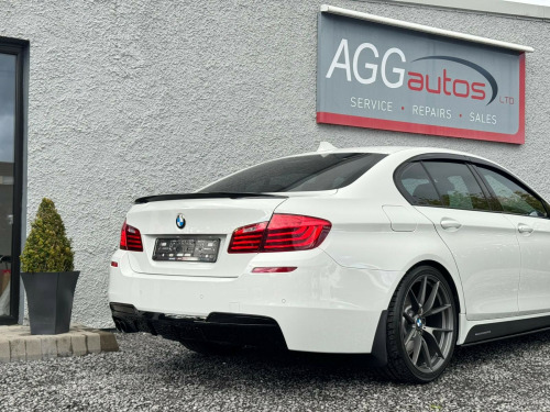 BMW 5 SERIES M SPORT, AUTOMATIC, £35 TAX, FULL M PERFORMANCE BODYKIT, HEATED SEATS, BLUETOOTH MEDIAApply for finance via our website today 104k miles 2014 Full years MOT M Sport model2.0 diesel£35 TAX Automatic Brand new M Performance kitFully serviced centre armrest Multi function steering wheel handsfree bluetooth rear privacy Glass Alloys in the pictures are an optional extra on top of the advertised sale price costing you £795 View our other stock www.aggautos.co.uk All cars come Serviced and ValetedWide range of Finance lenders to suit you Delivery available to NI and ROI customers Call Aaron on 02882160496 / 07793070171AGG Autos LTD Unit 11 Gortrush Industrial EstateOmagh, Co TyroneBT78 5EJ v power socket - front, 12v power socket - rear of centre console, auxiliary input, bmw emergency call, bmw navigation business system, bmw professional radio - single cd and mp3, bmw teleservices, bluetooth hands free with audio streaming, bluetooth hands free with usb audio interface, dab - digital radio, display - 6.5in colour screen, full black panel display, navigation system - bmw business advanced, shark fin aerial, speakers x6, usb connection, 18in alloy wheels - light m double spoke style - 613m, bumpers - body colour, door handles - body colour, door mirrors - body coloured housing, door mirrors - electric and heated - aspheric drivers side, electric windows - front and rear with fingertip control and anti pinch, exterior trim - chromeline, exterior trim - high-gloss shadowline, kidney grille - chrome with chrome vertical slats, m aerodynamics package, m sport package, run flat tyres, wheels - locking wheel nuts, windows - heated protection glazing with green tint, windscreen washer jets - heated, abs - anti lock braking system, asc - automatic stability control, airbags - curtain head protection system, airbags - driver, airbags - front side, airbags - passenger, airbags - passenger deactivation, alarm - thatcham cat 1 and immobiliser, brake drying, brake fade compensation, brake pre-tensioning, cbc - cornering brake control, central locking - remote, child proof locking system - rear doors, crash sensor, dbc - dynamic brake control, dtc - dynamic traction control, dynamic brake lights, ebd - electronic brake-force distribution, electro mechanical parking brake, first aid kit, hill start assistant, isofix - rear, passenger seat occupancy sensor - front, speed limit function, air conditioning - automatic with two-zone control, air microfilter, armrest - front with storage compartment, armrest - rear centre, automatically dimming rear view mirror, comfort go keyless start, cup holders - front and rear, door sill finishers - illuminated, floor mats - velour, footwell lights - front, headlining - m anthracite, interior trim - aluminium hexagon, model designation deletion, personal profile, rain sensor with automatic headlight activation, seat adjustment - front - part electric, seats - front heated, seats - front sports, seats - height adjustable drivers, securing rings in luggage compartment x4, smokers package, steering column - reach and rake manual adjustment, steering wheel - leather - m sport, steering wheel - multifunction controls, sun visors with illuminated vanity mirrors, toolkit, brake pad wear indicator, cruise control with brake function, drive performance control with eco pro - comfort and sport modes, obc - on board computer, pdc - park distance control - front, pdc - park distance control - front and rear, pdc - park distance control - rear, power steering - electric with servotronic, suspension - m sport, tpms - tyre pressure monitoring system, idrive controller with shortcut buttons, headlight range control - electric, headlight wash, headlights - auto on, led fog lights - front, xenon headlights