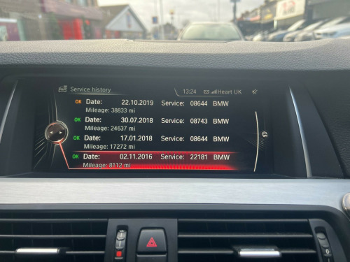 EURO6, Sat Nav, PDC, Full Service History, Excellent drive. v power socket - front, 12v power socket - rear of centre console, 18in alloy wheels - light m double spoke style - 613m, abs - anti lock braking system, asc - automatic stability control, air conditioning - automatic with two-zone control, air microfilter, airbags - curtain head protection system, airbags - driver, airbags - front side, airbags - passenger, airbags - passenger deactivation, alarm - thatcham cat 1 and immobiliser, armrest - front with storage compartment, armrest - rear centre, automatically dimming rear view mirror, auxiliary input, bmw emergency call, bmw navigation business system, bmw professional radio - single cd and mp3, bmw teleservices, bluetooth hands free with audio streaming, bluetooth hands free with usb audio interface, brake drying, brake fade compensation, brake pad wear indicator, brake pre-tensioning, bumpers - body colour, cbc - cornering brake control, central locking - remote, child proof locking system - rear doors, comfort go keyless start, crash sensor, cruise control with brake function, cup holders - front, cup holders - rear, dab - digital radio, dbc - dynamic brake control, dsc - dynamic stability control plus, dtc - dynamic traction control, display - 6.5in colour screen, door handles - body colour, door mirrors - body coloured housing, door mirrors - electric and heated - aspheric drivers side, door sill finishers - illuminated, drive performance control with eco pro - comfort and sport modes, dynamic brake lights, ebd - electronic brake-force distribution, electric windows - front and rear with fingertip control and anti pinch, electro mechanical parking brake, exterior trim - high-gloss shadowline, first aid kit, floor mats - velour, footwell lights - front, full black panel display, headlight range control - electric, headlight wash, headlights - auto on, headlining - m anthracite, hill start assistant, isofix - rear, interior trim - aluminium hexagon, kidney grille - chrome with chrome vertical slats, led fog lights - front, m aerodynamic bodystyling, navigation system - bmw business advanced, obc - on board computer, pdc - park distance control - front, pdc - park distance control - front and rear, pdc - park distance control - rear, passenger seat occupancy sensor - front, personal profile, power steering - electric with servotronic, rain sensor with automatic headlight activation, reading lights - front and rear, run flat tyres, seat adjustment - front - part electric, seats - front heated, seats - front sports, seats - height adjustable drivers, securing rings in luggage compartment x4, shark fin aerial, smokers package, speakers x6, speed limit function, steering column - reach and rake manual adjustment, steering wheel - leather - m sport, steering wheel - multifunction controls, sun visors with illuminated vanity mirrors, suspension - m sport, tpms - tyre pressure monitoring system, toolkit, usb connection, warning triangle, wheels - locking wheel nuts, windows - heated protection glazing with green tint, windscreen washer jets - heated, xenon headlights, idrive controller with shortcut buttons, navigation system - bmw professional multimedia, m sport plus package, media package - bmw professional, 19in alloy wheels - light m double spoke style - 351m, speaker system - harman kardon, sun protection glazing, exterior mirrors - automatically dimming - folding, concierge service, m rear spoiler, automatic transmission with gearshift paddles, remote services, interior trim - fine brushed aluminium, dakota leather - black with black interior