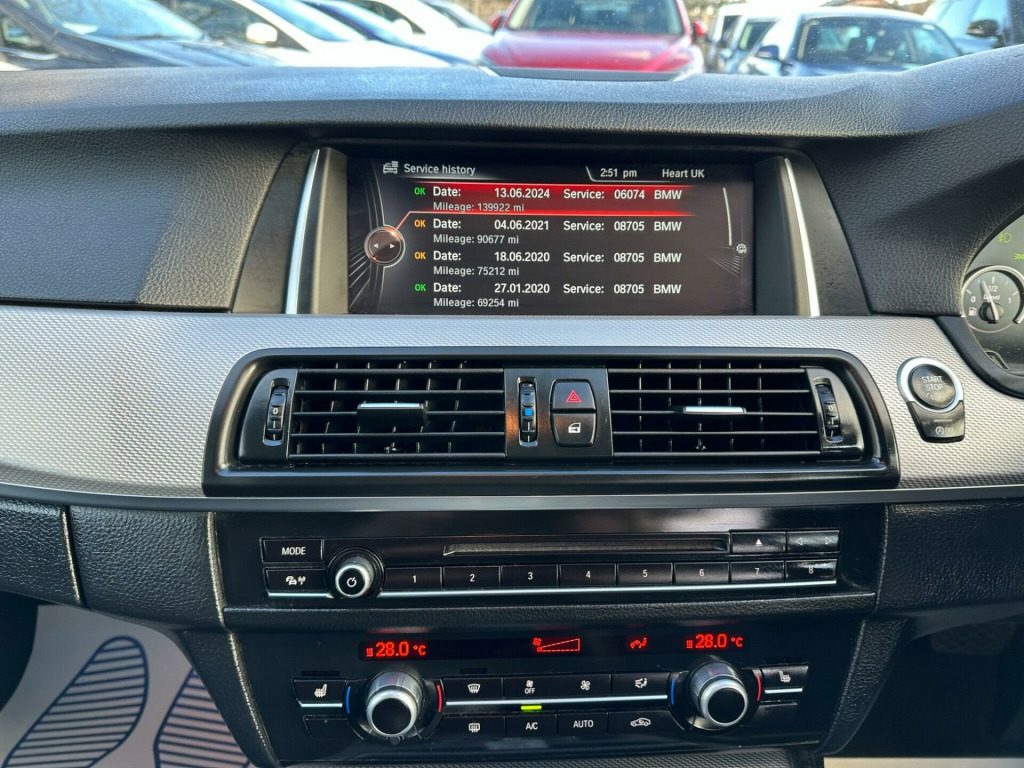 This 2015 BMW 5 Series 520d M Sport offers an exceptional blend of performance and efficiency, boasting a remarkable fuel economy of up to 63 miles per gallon. As a Euro 6 compliant vehicle, it meets stringent emission standards. This M Sport model comes equipped with the desirable M Sport trim, enhancing its sporty appeal. Under the bonnet lies a capable 2.0 litre diesel engine, providing a balanced driving experience.Inside, you will find a wealth of technology and comfort features designed to elevate your journey. The Harman Kardon speaker system delivers premium audio, while the BMW Professional Media Package, including the BMW Professional Multimedia Navigation System, ensures seamless connectivity and entertainment. Enhanced Bluetooth Telephone Preparation with USB Audio Interface and Voice Control allows for effortless communication on the go, further complemented by the convenient Concierge Service. This BMW 5 Series also offers generous boot space, making it a practical choice for everyday use and longer trips.. 12V Power Socket - Front, 12V Power Socket - Rear of Centre Console, 18in Alloy Wheels - Light M Double Spoke Style - 613M, ABS - Anti Lock Braking System, ASC - Automatic Stability Control, Air Conditioning - Automatic with Two-Zone Control, Air Microfilter, Airbags - Curtain Head Protection system, Airbags - Driver, Airbags - Front Side, Airbags - Passenger, Airbags - Passenger Deactivation, Alarm - Thatcham Cat 1 and Immobiliser, Armrest - Front with Storage Compartment, Armrest - Rear Centre, Automatically Dimming Rear View Mirror, Auxiliary Input, BMW Emergency Call, BMW Navigation Business System, BMW Professional Radio - Single CD and MP3, BMW TeleServices, Bluetooth Hands Free with Audio Streaming, Bluetooth Hands Free with USB Audio Interface, Brake Drying, Brake Fade Compensation, Brake Pad Wear Indicator, Brake Pre-Tensioning, Bumpers - Body Colour, CBC - Cornering Brake Control, Central Locking - Remote, Child Proof Locking System - Rear Doors, Comfort Go Keyless Start, Crash Sensor, Cruise Control with Brake Function, Cup Holders - Front and Rear, DAB - Digital Radio, DBC - Dynamic Brake Control, DTC - Dynamic Traction Control, Display - 6.5in Colour Screen, Door Handles - Body Colour, Door Mirrors - Body Coloured Housing, Door Mirrors - Electric and Heated - Aspheric Drivers Side, Door Sill Finishers - Illuminated, Drive Performance Control with ECO PRO - Comfort and Sport Modes, Dynamic Brake Lights, EBD - Electronic Brake-Force Distribution, Electric Windows - Front and Rear with Fingertip Control and Anti Pinch, Electro Mechanical Parking Brake, Exterior Trim - Chromeline, Exterior Trim - High-Gloss Shadowline, First Aid Kit, Floor Mats - Velour, Footwell Lights - Front, Full Black Panel Display, Headlight Range Control - Electric, Headlight Wash, Headlights - Auto On, Headlining - M Anthracite, Hill Start Assistant, ISOFIX - Rear, Interior Trim - Aluminium Hexagon, Kidney Grille - Chrome with Chrome Vertical Slats, LED Fog Lights - Front, M Aerodynamics Package, M Sport Package, Navigation System - BMW Business Advanced, OBC - On Board Computer, PDC - Park Distance Control - Front, PDC - Park Distance Control - Front and Rear, PDC - Park Distance Control - Rear, Passenger Seat Occupancy Sensor - Front, Personal Profile, Power Steering - Electric with Servotronic, Rain Sensor with Automatic Headlight Activation, Run Flat Tyres, Seat Adjustment - Front - Part Electric, Seats - Front Heated, Seats - Front Sports, Seats - Height Adjustable Drivers, Securing Rings in Luggage Compartment x4, Shark Fin Aerial, Smokers Package, Speakers x6, Speed Limit Function, Steering Column - Reach and Rake Manual Adjustment, Steering Wheel - Leather - M Sport, Steering Wheel - Multifunction Controls, Sun Visors with Illuminated Vanity Mirrors, Suspension - M Sport, TPMS - Tyre Pressure Monitoring System, Toolkit, USB Connection, Wheels - Locking Wheel Nuts, Windows - Heated Protection Glazing with Green Tint, Windscreen Washer Jets - Heated, Xenon Headlights, iDrive Controller with Shortcut Buttons, Navigation System - BMW Professional Multimedia, M Sport Plus Package, Media Package - BMW Professional, 19in Alloy Wheels - Light M Double Spoke Style - 351M, Speaker System - Harman Kardon, Enhanced Bluetooth Telephone Preparation with USB Audio Interface and Voice Control, Sun Protection Glazing, Exterior Mirrors - Automatically Dimming - Folding, Concierge Service, M Rear Spoiler, Automatic Transmission with Gearshift Paddles, Remote Services, Dakota Leather - Black with Black Interior. Full service history