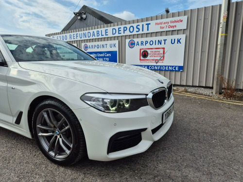 This 2018 BMW 5 Series 520d M Sport boasts a full service history and has only covered 59,572 miles, which is notably low for its age. This Euro 6 compliant, four wheel drive model features a 2.0L diesel engine and comes with an MOT valid until January 2027. The M Sport trim enhances its appeal, and you'll find the xDrive designation on the tailgate. Inside, comfort is assured with front seat heating, while convenience is provided by a reversing assist camera, rain sensor with automatic headlight activation, and front and rear park distance control.The impressive acceleration of 0-62mph in just 7.3 seconds highlights the dynamic performance of this BMW 5 Series, setting it apart from many similar vehicles. Furthermore, the generous boot space offers practicality for all your needs, making this a well rounded and capable saloon.. 18in Alloy Wheels - Light M Double Spoke - 662M, 20GB Hard Disc Drive HDD Memory, Access to BMW Connected Plus for 12 Months from Vehicle Production - Subscription Required, Active Air Stream Kidney Grille, Active Guard, Air Conditioning - Automatic, Airbags, Alarm System - Thatcham 1 with Remote Control and Engine Immobiliser, All Round Anti-Corrosion System, Ambient Lighting, Anti Roll Bars - Front and Rear, Armrests, BMW ConnectedDrive Online Services, BMW ConnectedDrive Services, BMW Emergency Call, BMW Professional Radio with Single CD Player - MP3 and DVD Playback Compatibility, BMW TeleServices, Battery in Luggage Compartment with Jump Start Facility in Engine Bay, Bluetooth Hands Free with USB Audio Interface, Brake Force Display, Child Seat ISOFIX Attachment Two in Rear - Includes Top Tether, Control Display - 10.25in Colour Touch Sensitive Display Screen, Crash Sensor - Activating Central Locking - Hazard Warning Lights - Fuel Cut Off - Interior Lights, Cruise Control with Brake Function, Cup Holders - Front x2 and Rear x2, DAB Digital Radio, DSC - Dynamic Stability Control - Stabilises the Vehicle in Extreme Situations - Controls Traction, Daytime Running Lights - LED, Deformation Zones - Front and Rear, Digital Cockpit, Door Sill Inlays - BMW M Designation Illuminated, Drive Performance Control with ECO PRO - Comfort and Sport Modes, Dynamic Brake Lights with LED Technology, EPS - Electric Power Steering with Servotronic, Electric Windows - Front and Rear with Open-Close Fingertip Control - Anti-Trap Facility and Comfort Closing Function, Electro Mechanical Parking Brake With Automatic Drive-Away and Auto-Hold Function, Engine Cover with TwinPower Turbo Designation, Exhaust Tailpipes - Single - Left and Right - Chrome - Quadrilateral, Exterior Door Handle Illumination, Exterior Mirrors - Electrically Adjustable and Heated includes Integrated Direction Indicators, Exterior Trim - High Gloss Shadowline, Favourite Buttons, First Aid Kit and Warning Triangle, Follow Me Home Headlight Function, Footwell Lights - Front and Rear, Glove Compartment - Lockable and Illuminated, Head Restraints - Front Anti-Whiplash, Headlining - Anthracite, Instrument Panel in Sensatec - Artificial Leather, Interior Rear-View Mirror with Automatic Anti-Dazzle Function, Interior Trim - Aluminium Rhombicle with Highlight Trim Finishers Pearl Chrome, LED Fog Lights - Front, LED Headlights, Locking Wheel Bolts - Thatcham Approved, M Aerodynamic Bodystyling, M Designation on Front Side Panels - Left and Right, M Specific Floor Mats, M Specific Key, M Specific Pedals, M Specific Steering Wheel, M Sport Multi-Function Leather Steering Wheel - Three-Spoke, M Sport Package, M Sport Suspension, Multi-Functional Instrument Panel, Navigation System - BMW Professional Multimedia, OBC - On-Board Computer, OBD - On Board Diagnosis, Oil Sensor For Level and Grade, PDC - Park Distance Control - Front and Rear, Power Sockets 12V - 2x Front - 1x Rear, Rain Sensor with Automatic Headlight Activation, Reading Lights - Front and Rear, Real Time Traffic Information, Remote Control Locking, Seat Belts - Front - Inertia Reel with Pyrotechnical Belt Latch Tensioner - Belt Force Limiter and Belt Restrainer, Seat Belts - Rear - Three with Inertia Reel, Seat Heating - Front, Seats - Front with Partial Electric Adjustment, Side Impact Protection, Speed Limit Function, Sport Seats - Front, Steering Column with Adjustable Height and Length - Activation via Lateral Lever on Steering Column, Steering Wheel - Gearshift Paddles, TPMS - Tyre Pressure Monitoring System, Two Tone Horn, Windscreen Washer Jets - Heated, iDrive Touch Controller with Shortcut Buttons, xDrive Designation on Tailgate, Reversing Assist Camera, Dakota Leather with Exclusive Stitching - Black with Black Interior. Full service history