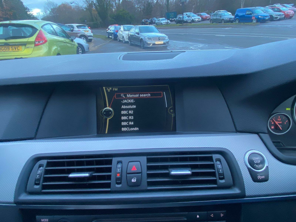 The car has got: 6 speed,BLUETOOTH,CRUISE CONTROL,HATED SEATS,MEDIA CONNECTIVITY,RADIO CD.This 2011 BMW 5 Series 520d M Sport presents an exceptional ownership proposition, having been cherished by just one owner from new and boasting a remarkably low mileage of only 80,100 miles for its age. This particular example comes with a full service history, confirming its diligent maintenance, and a clear vehicle history check, offering complete peace of mind. The M Sport trim enhances its already sophisticated appeal, while the powerful yet efficient 2.0L diesel engine ensures a rewarding driving experience. Notable features include Xenon headlights with a washer system for superior visibility, a DVD changer for entertainment, and Bluetooth telephone preparation for seamless connectivity.Further enhancing its appeal, this BMW 5 Series offers impressive fuel economy, achieving an outstanding 58 miles per gallon, which is a significant advantage for running costs compared to similar vehicles. Its low CO2 emissions also contribute to its environmental credentials. Practicality is not overlooked, with generous boot space making it ideal for families or those who require ample storage. The DualZone automatic air conditioning ensures a comfortable cabin environment for all occupants, regardless of the external temperature. v power socket - rear of centre console, 12v power sockets, 18in alloy wheels - light m double spoke - 350m, 18in light alloy m double- spoke style 350m, 6 speaker loudspeaker system, abs - anti lock braking system, air conditioning - automatic - dual zone, airbags - driver, airbags - driver and front passenger side, alarm system thatcham 1 with remote control, armrest - front centre, armrest - rear centre, automatically dimming rear view mirror, auxiliary input, bmw connecteddrive- assist, bmw connecteddrive- online, bmw online services, bmw professional radio - single cd and mp3, bmw teleservices, bluetooth telephone preparation, bluetooth telephone preparation with telematics, cbc - cornering brake control, check control warning system, child seat isofix attachment - front and rear, crash sensor, crash sensor - activating central locking release, cruise control with brake function, cup holders - front x2 and rear x2, dsc - dynamic stability control - stabilises the vehicle in extreme situations - controls traction, deformation zones - front and rear, delete m sports suspension, delete smokers pack, door mirrors - aspheric electric adjustment, door mirrors - heated, dualzone automatic air conditioning, ebd - electronic brake-force distribution, electric windows - front and rear with open-close fingertip control, enhanced bluetooth telephone functionality, exterior trim - chromeline, exterior trim - high-gloss shadowline, floor mats - velour, front fog lights, full black panel display, headlining - anthracite, heated windscreen washer jets, hexagon aluminium trim, high gloss shadow line, incorrect fuelling protection system, interior trim - aluminium hexagon, interior trim - bmw individual - piano black, m aerodynamic bodystyling, m sport package, m sport suspension, m sports suspension, matt aluminium exterior trim, multifunction controls for steering wheel, obc - on-board computer, obd - on board diagnosis, pdc - park distance control - front and rear, part electric driver & passenger sports seats, power steering - electric, run flat tyres, seats - front - part electric adjustment, seats - front heated, servotronic pas, servotronic steering, side impact protection, smokers package, sports seats - front part electric adjustment, steering column with manual reach and rake adjustment, tpws - tyre pressure warning system, usb audio interface, windows - heat insulated tinted all round, xenon headlights, dvd changer, headlights - washer system, dakota leather - black, dab digital radio, voice control - phone, lane change warning system, enhanced bluetooth telephone functionality with telematics, speed limit display, xenon headlights & auto headlight adjust, air conditioning - automatic with four zone control, heated front seats, heated steering wheel, sun protection glass, park assist
