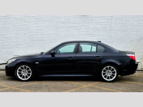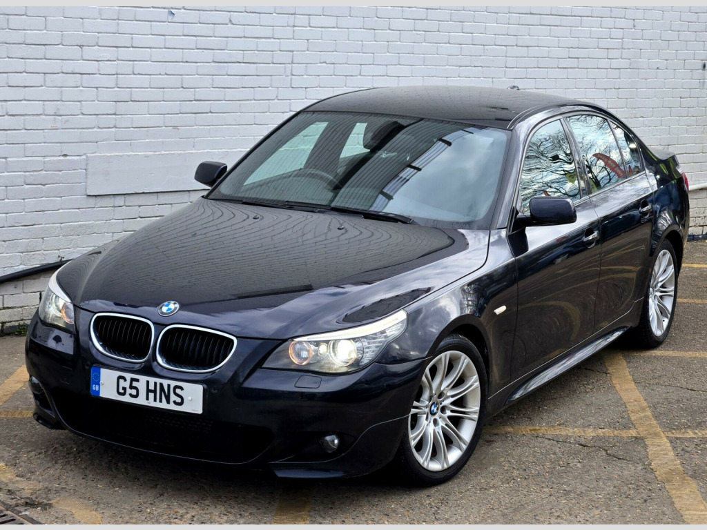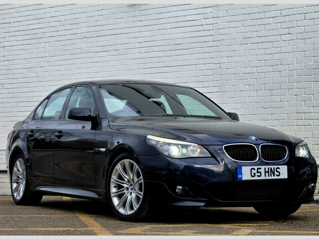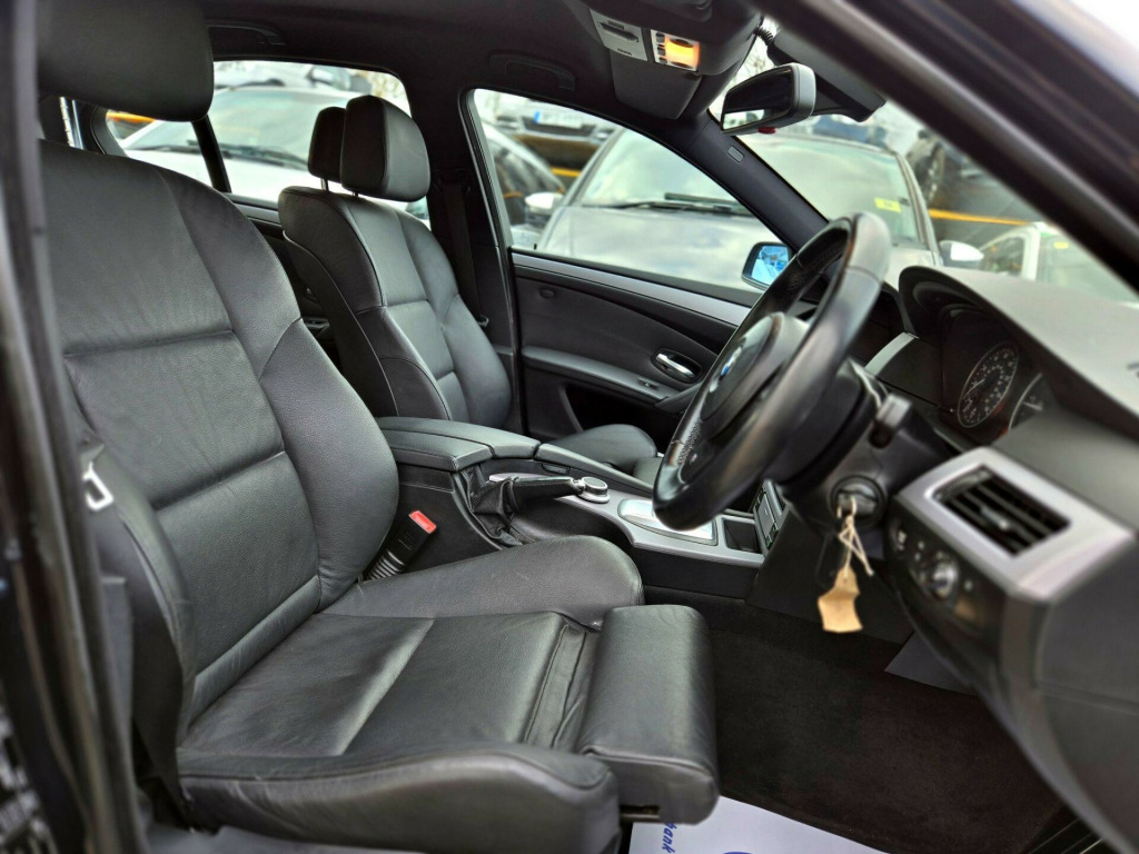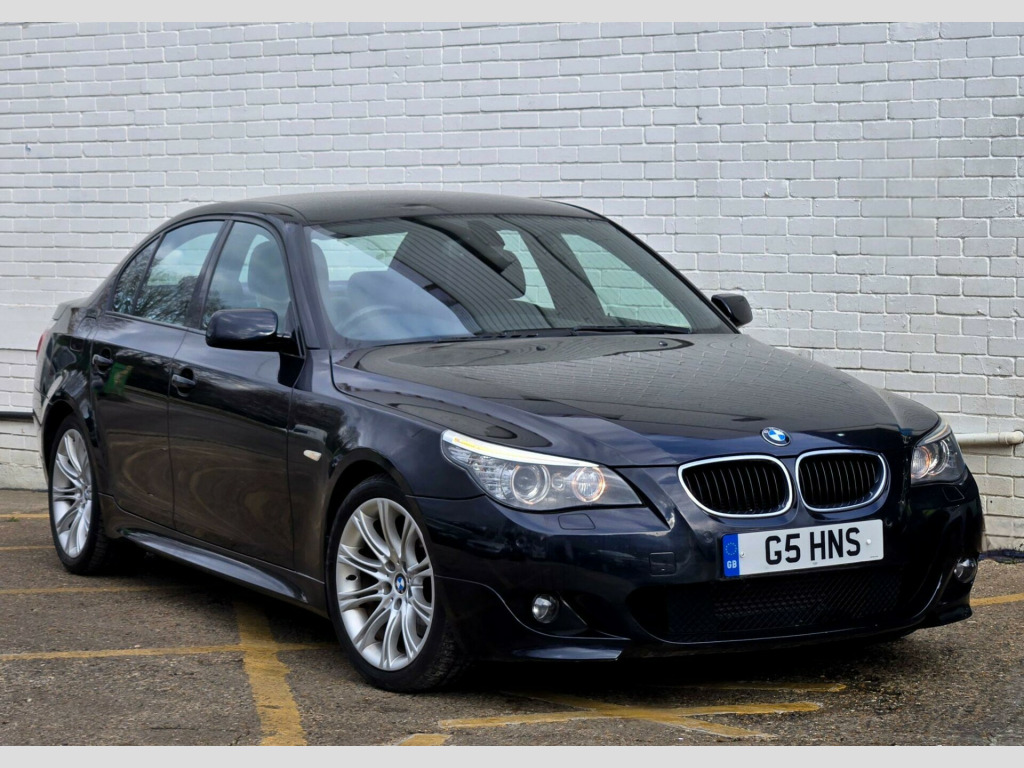 1 FORMER KEEPER ++ PRESENTED IN BLACK WITH FULL SERVICE HISTORY ++ MOT UNTIL 13-MARCH-2026 ++ 2 KEYS ++ SATELLITE NAVIGATION SYSTEM ++ PARKING SENSORS ++ FULL BLACK DAKOTA LEATHER PACKAGE ++ EXTENDED LEATHER PACKAGE ++ HEATED SEATS ++ HPI CLEAR & CERTIFIED ++ NATIONWIDE DELIVERY AVAILABLE ++++This is a BMW 5 Series 520d M Sport, a diesel car first registered in 2008. The vehicle is equipped with a 2.0-litre engine and comes in the stylish M Sport trim. It boasts several features designed for comfort and convenience, including heated front seats and a SatNav Business system. For entertainment, there's a 6CD autochanger located in the glovebox. The car also includes Xenon headlights with automatic headlight adjustment, adaptive headlights, and headlight washer jets, enhancing visibility and safety. Having had only one previous owner, this BMW 5 Series is ready for its next journey.With a fuel economy of 50 mpg, this BMW 5 Series is more efficient than similar vehicles. The generous boot space of 520 litres offers ample room for luggage or shopping, making it more practical than comparable models. Furthermore, its CO2 emissions are 149 grams per kilometre, meaning it is kinder to the environment than other cars in its class. The vehicle also has a towing weight of 1800 kg. in m double spoke alloy wheels- style 135, aluminium pentan trim, anthracite headlining, automatic air conditioning, bmw business radio with single cd player, bmw connecteddrive- assist, bmw connecteddrive- online, brushed aluminium trim, dark poplar wood trim when with nasca & exclusive leather, delete smokers pack, front centre armrest, front isofix attachment & airbag deactivation, headlight range control- electric, high gloss anthracite bamboo interior trim with nasca & exclusive leather, high gloss black interior, light poplar wood trim when with nasca & exclusive leather, model designation deletion, part electric driver & passenger sports seats, runflat tyres, servotronic pas, smokers pack, through load system with ski bag, satnav business, individual anthracite alcantara headlining, xenon headlights & auto headlight adjust, adaptive headlights, heated front seats, 6cd autochanger- glovebox, headlight washer jets, leather- dakota- black