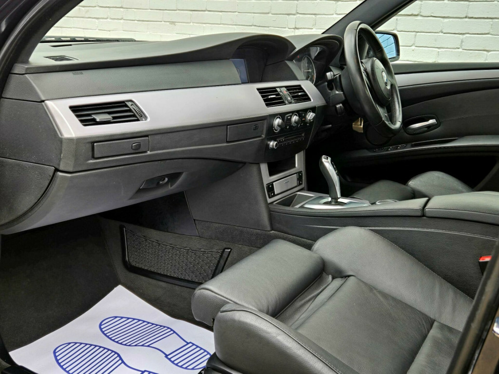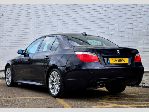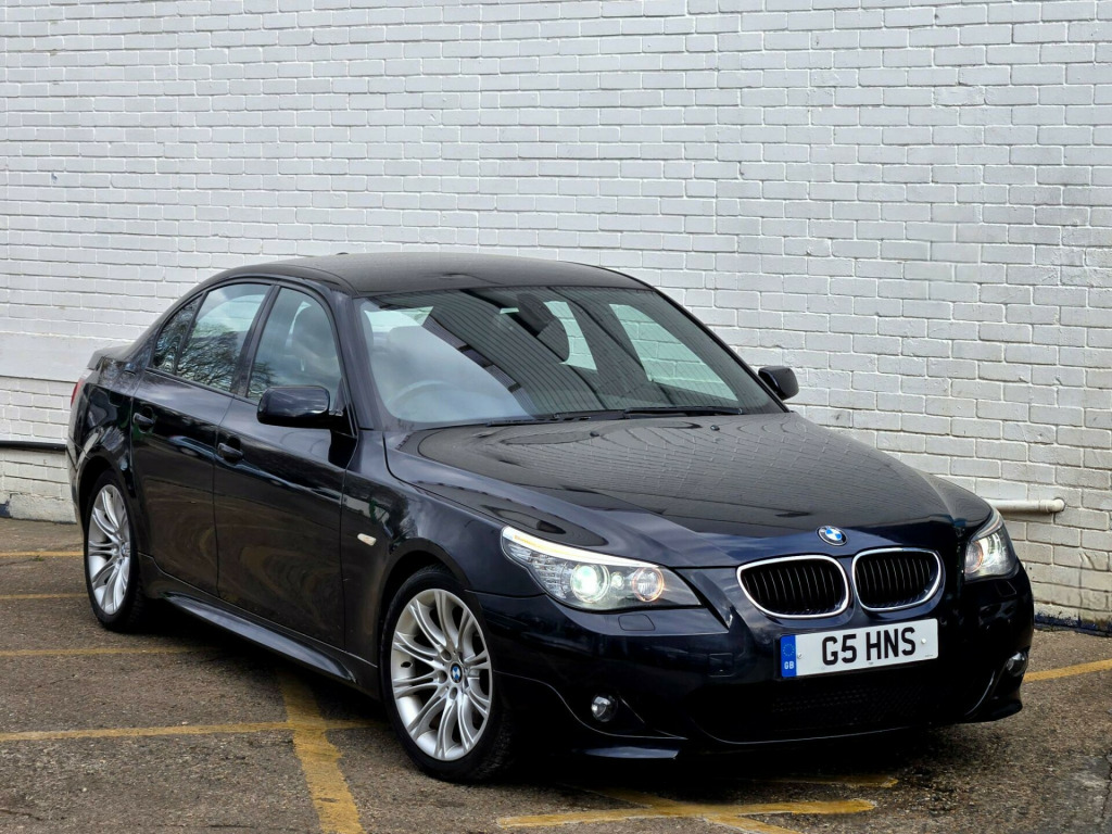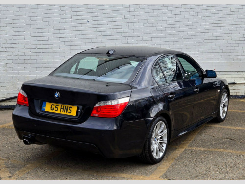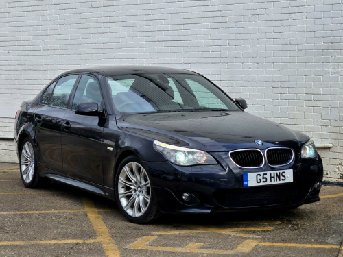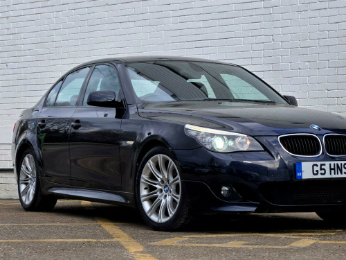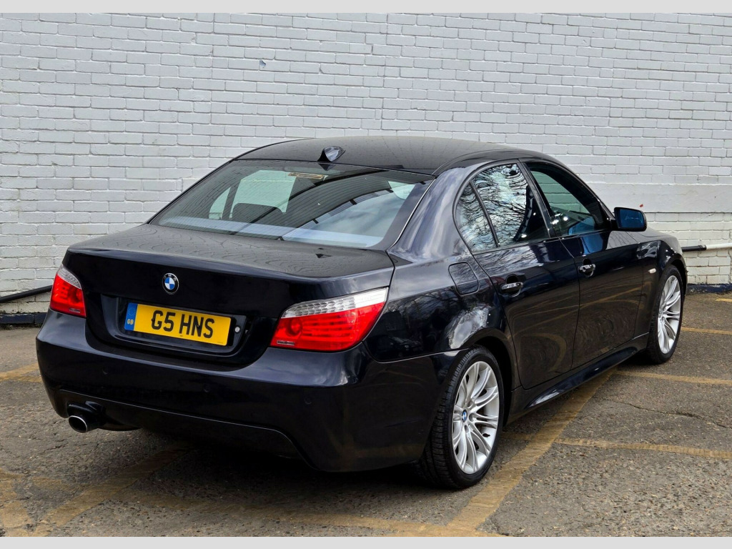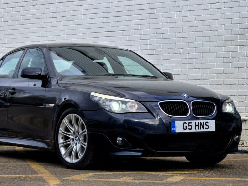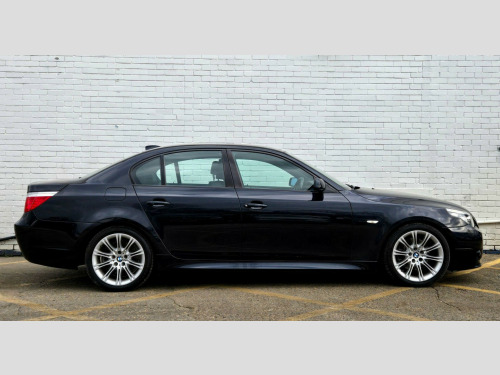 1 FORMER KEEPER ++ PRESENTED IN BLACK WITH FULL SERVICE HISTORY ++ MOT UNTIL 13-MARCH-2026 ++ 2 KEYS ++ SATELLITE NAVIGATION SYSTEM ++ PARKING SENSORS ++ FULL BLACK DAKOTA LEATHER PACKAGE ++ EXTENDED LEATHER PACKAGE ++ HEATED SEATS ++ HPI CLEAR & CERTIFIED ++ NATIONWIDE DELIVERY AVAILABLE ++++This is a BMW 5 Series 520d M Sport, a diesel car first registered in 2008. The vehicle is equipped with a 2.0-litre engine and comes in the stylish M Sport trim. It boasts several features designed for comfort and convenience, including heated front seats and a SatNav Business system. For entertainment, there's a 6CD autochanger located in the glovebox. The car also includes Xenon headlights with automatic headlight adjustment, adaptive headlights, and headlight washer jets, enhancing visibility and safety. Having had only one previous owner, this BMW 5 Series is ready for its next journey.With a fuel economy of 50 mpg, this BMW 5 Series is more efficient than similar vehicles. The generous boot space of 520 litres offers ample room for luggage or shopping, making it more practical than comparable models. Furthermore, its CO2 emissions are 149 grams per kilometre, meaning it is kinder to the environment than other cars in its class. The vehicle also has a towing weight of 1800 kg. in m double spoke alloy wheels- style 135, aluminium pentan trim, anthracite headlining, automatic air conditioning, bmw business radio with single cd player, bmw connecteddrive- assist, bmw connecteddrive- online, brushed aluminium trim, dark poplar wood trim when with nasca & exclusive leather, delete smokers pack, front centre armrest, front isofix attachment & airbag deactivation, headlight range control- electric, high gloss anthracite bamboo interior trim with nasca & exclusive leather, high gloss black interior, light poplar wood trim when with nasca & exclusive leather, model designation deletion, part electric driver & passenger sports seats, runflat tyres, servotronic pas, smokers pack, through load system with ski bag, satnav business, individual anthracite alcantara headlining, xenon headlights & auto headlight adjust, adaptive headlights, heated front seats, 6cd autochanger- glovebox, headlight washer jets, leather- dakota- black