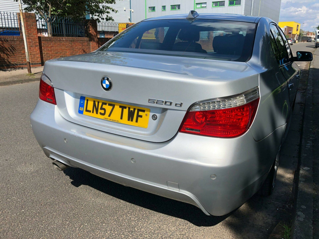 ******** SAME DAY FINANCE AVAILABLE ******** COMES WITH 06 MONTHS FREE WARRANTED ********* *********PERFECT EXAMPLE OF EXCELLENT CAR********* Another Perfect example of 2007 BMW 5 Series 52d 2.0d Auto M-Sports Steptroic Diesel , 16V SE Special Edition 4 dr Saloon 247 bhp with Metallic Silver Colour and Full GREY / BLACK Leather Interior which has just covered 101000 miles (warranted) .A U T O M A T I C , 101000 Miles , 2007 BMW 5 Series 520d 2.0d Auto M-Sports Diesel Steptronic 16V SE Special Edition 4dr Saloon 247 bhp , 5 Seats , 57 Reg , Metallic SILVER Colour , Excellent Condition , Full Grey / Black Leather Interior , Power Steering , Remote Central Locking , Adjustable Steering Column / Wheel , Front and Rear Head Restraints , Immobiliser ,Front and Rear Fog Lights , Traction Control , Iso-fix child seat , A I R C O N D I T I O N I N G / Climate Control , Anchor Points , A B S ,Body colour Bumpers , Multiple Air - bags , Electric Mirrors , Radio / CD Player , Alloy Wheels , Just been Fully Valeted , Full Service History + Old m.o.ts to Prove Mileage , 4 Good Tyres , M.O.T Till JANUARY 2027 , Ideal First / Family Car , Very Clean in and out , Cheap to Run and insure , Cheap to Tax , Price for Quick sale . ather- dakota- black, media pack 520d, usb & audio interface, high beam assistant, rear side airbags & outer rear seatbelt pretensioners, 19in double spoke alloy wheels- style 172, space saver spare wheel, front comfort seats, heated front seats, interior lights pack, visibility pack, 18in m double spoke alloy wheels- style 135, automatic air conditioning, bmw assist, bmw business radio with single cd player, brushed aluminium trim, cd changer preparation, dark poplar wood trim when with nasca & exclusive leather, delete smokers pack, front centre armrest, headlight range control- electric, high gloss anthracite bamboo interior trim with nasca & exclusive leather, high gloss black interior, light poplar wood trim when with nasca & exclusive leather, m sport package, model designation deletion, part electric driver & passenger sports seats, smokers pack