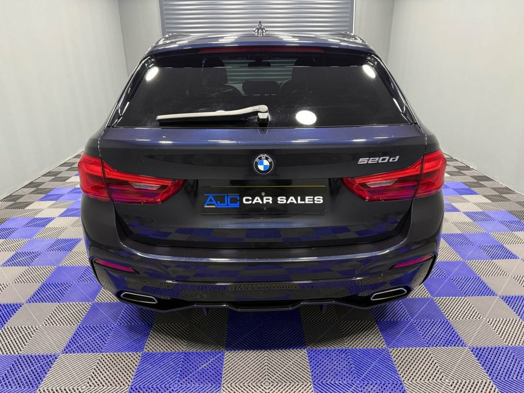 AJC Car Sales presents this stunning BMW 5 SERIES 2.0 520d M Sport Touring 5dr Diesel Auto Euro 6 (s/s) (190 ps) finished off in Carbon Black with 20" Black V Spoke Alloy Wheels, Two keys and a Great Service Record. Discover the perfect blend of dynamic performance, luxury, and practicality with this 2018 BMW 520d M Sport Touring. Powered by a refined 2.0-litre TwinPower Turbo diesel engine delivering 190 PS, this premium estate offers an engaging yet efficient driving experience, enhanced by a smooth 8-speed automatic transmission and compliant with Euro 6 (s/s) emissions standards—making it ULEZ-friendly. Finished in the eye-catching M Sport trim, this 5 Series Touring features sportier styling enhancements including M aerodynamic body styling, sport suspension, and M Sport interior detailing. The long wheelbase and intelligently designed load space make this an ideal vehicle for both family and executive use. Inside, the premium cabin is crafted with high-quality materials and includes a host of comfort and technology features. With generous boot capacity, split-folding rear seats, and BMW's renowned driving dynamics, this Touring model combines everyday versatility with true driving enjoyment. This 520d M Sport Touring delivers style, space, and substance in one compelling package. 20GB Hard Disc Drive HDD Memory, Access to BMW Connected Plus (12 Month S, Bluetooth Hands Free with USB Audio Inte, BMW ConnectedDrive Online Services, BMW ConnectedDrive Services, BMW Emergency Call, BMW Professional Radio with Single CD Pl, BMW TeleServices, Control Display - 10.25in Colour Touch S, DAB Digital Radio, Navigation System - BMW Professional Mul, Power Sockets 12V - 2x Front - 1x Rear, Real Time Traffic Information, Remote Services, 20in Alloy Wheels - BMW Individual Light, 18in Alloy Wheels - Light M Double Spoke, Acoustic Glazing, Active Air Stream Kidney Grille, All Round Anti-Corrosion System, Electric Windows - Front and Rear with O, Engine Cover with TwinPower Turbo Des