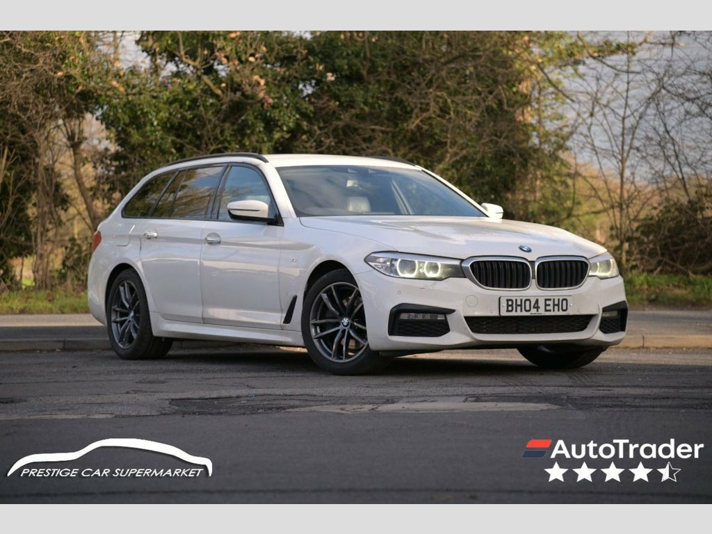 Prestige Car Supermarket in York presents this 2017 BMW 5 Series 2.0 520d M Sport Touring, a 190 ps Euro 6 diesel automatic finished in Alpine White with Dakota Leather in Night Blue featuring exclusive stitching and a Blue interior. Its M Sport specification introduces 18-inch Light M Double Spoke 662M alloys, M Aerodynamic Bodystyling, M Sport suspension, High-Gloss Shadowline trim, illuminated M-design door sill inlays, M specific pedals, three-spoke M Sport leather steering wheel and an independently opening powered tailgate with a retracting load cover. The cabin provides Sport Seats with front heating, partial electric adjustment, anthracite headlining, ambient lighting, aluminium Rhombicle interior trim with Pearl Chrome highlights, a 10.25-inch Control Display, Digital Cockpit, BMW Professional navigation and multimedia, DAB radio, Bluetooth with USB audio, BMW ConnectedDrive services, Real Time Traffic Information, iDrive Touch controller and Remote Services. Practicality is supported by 40-20-40 split folding rear seats with luggage compartment release, a dividing net, cup holders front and rear, lockable illuminated glovebox, multiple 12V power sockets and heated washer jets. Driver and safety technology includes Park Distance Control front and rear, Cruise Control with brake function, Drive Performance Control, LED headlights and fog lights, rain sensor, Active Guard, DSC, EPS, TPMS, ISOFIX, multiple airbags, crash sensors, Follow Me Home lighting, speed limit fun 18in Alloy Wheels - Light M Double Spoke, 20GB Hard Disc Drive HDD Memory, Access to BMW Connected Plus (12 Month S, Active Air Stream Kidney Grille, Active Guard, Air Conditioning - Automatic, Airbags, Alarm System - Thatcham 1 with Remote Co, All Round Anti-Corrosion System, Ambient Lighting, Anti Roll Bars - Front and Rear, Armrests, Automatically Retracting and Lowering Lo, BMW ConnectedDrive Online Services, BMW ConnectedDrive Services, BMW Emergency Call, BMW Professional Radio with Single CD Pl, BMW TeleServices, Battery in Luggage Compartment with Jump, Bluetooth Hands Free with USB Audio Inte, Brake Force Display, Child Seat ISOFIX Attachment Two in Rear, Control Display - 10.25in C