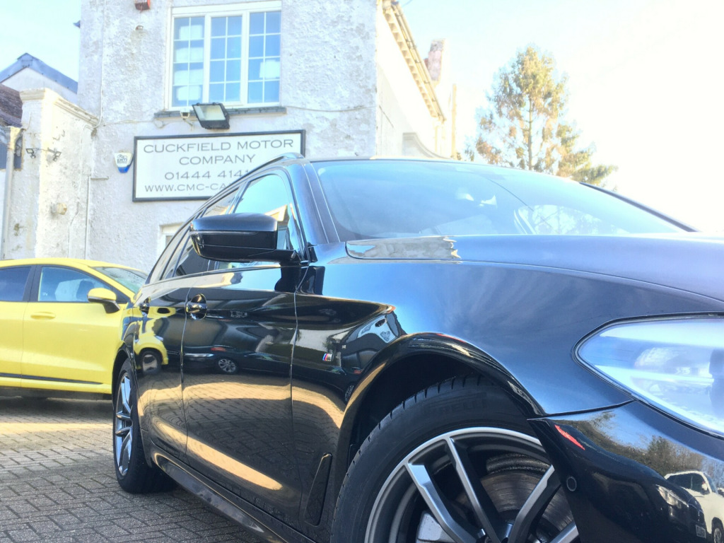 Cuckfield Motor Company are delighted to offer for sale this well presented 2 Owner, BMW 520D M-Sport- Finished in Black Sapphire with Black Leather, this car has BMW Service History with recorded visits at 8936, 22212, 25250, 33941 and 45033 miles. Specification includes Pro Navigation---Rear View Camera---Front & Rear Parking Sensors---Heated Front Seats---Bluetooth Phone & Audio---DAB Radio---USB---Power Tailgate---Privacy Glass---Climate Control---Paddles Shift Gear Selection---18'' Alloy Wheels---Digital Dashboard---Cruise Control and much more.Every car we offer comes with a comprehensive provenance check certificate, Minimum 6 month warranty and new MOT and service where applicable. All part exchanges welcome.We offer extremely competitive finance packages to help you fund your new car.Cuckfield Motor Company Ltd is a family run business FCA approved dealer established for over 20 years, With 30 years experience in the motor trade.We are located in the village of Cuckfield just off the A23, 15 minutes from Gatwick airport and only 5 minutes from Haywards Heath train station.Please contact us via phone/email to view this car today. email us on: salescmc-cars.co.uk01444 414129, in alloy wheels - light m double spoke - 662m, m sport package, led headlights, 2 owners, air conditioning, black leather seats, bluetooth phone & audio, cd player, dab radio, digital dashboard, front & rear parking sensors, full bmw history, heated seats, keyless start, paddle shift, power tailgate, privacy glass, pro sat nav, ulez compliant