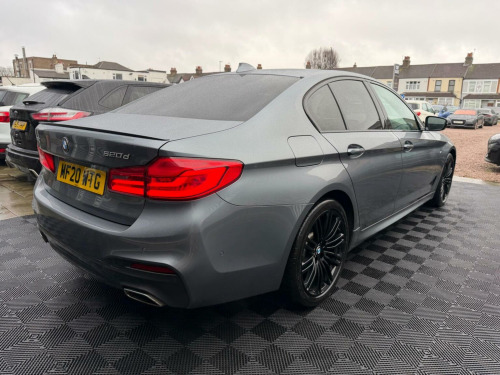 This 2020 BMW 5 Series 520d M Sport boasts a full service history, with its last service completed on 2026 02 03 at 59860 miles, MOT until 10/02/2027 with no advisories, and comes with a 6 month warranty and 2 keys for your peace of mind. This Euro 6 compliant model features a 2.0L Diesel Hybrid engine paired with a Four Wheel Drive drivetrain, ensuring efficient and capable performance. The M Sport trim enhances its sporty appeal, complemented by striking 19in M Light M Double Spoke 664M Black alloy wheels and the M Sport Plus Package. Youll also appreciate the premium Harman Kardon loudspeaker system for an immersive audio experience. The xDrive designation on the tailgate signifies its advanced Four Wheel Drive system, offering superior traction and stability in various driving conditions, setting it apart from many similar vehicles. Inside, the Steering Wheel is heated for added comfort during colder months. This BMW 5 Series also offers generous boot space, making it a practical choice for everyday use and longer journeys alike. Buy with confidence from our garage with our own workshops and service centre. All cars checked and serviced prior to sale, 6 months nationwide warranty included and extended warranty available. Free delivery available. 7 days money back guarantee on all online sales. , We are open 7 days a week, viewings by appointment. All debit and credit cards accepted, finance available, part exchange welcome.