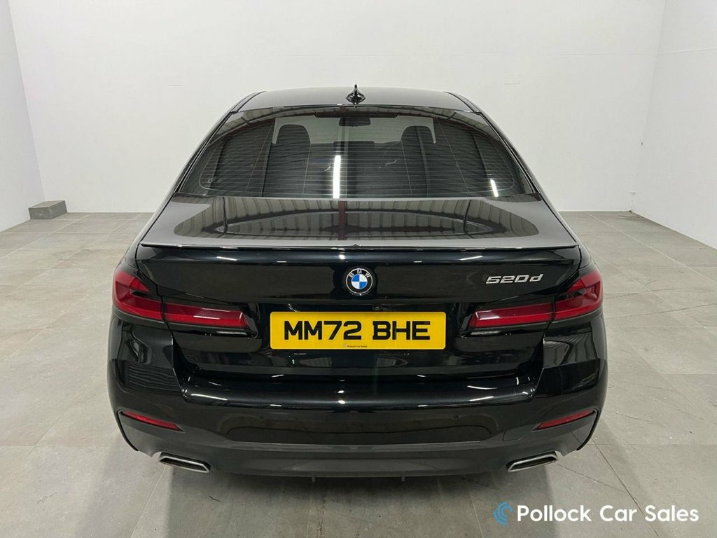 2022 BMW 5 Series 520D M Sport LCi G30 Saloon is in excellent condition with full BMW service History, only 22,000 Miles and many factory M Sport Pro Pack upgrades including: 20" 846M Alloy Wheels with branded tyres all round. Colour Reverse Camera LED Headlights with Auto Dip Function High Gloss Shadow line exterior trims Sun Protection Glass M Sport Exterior Trim Package M Performance Exterior Trim Package Carbon Rear Spoiler Lip It has a full and comprehensive BMW service history including the following: 12,036 Miles - 24/06/2024 - Oil Service, Inspection, Cabin Pollen Filter 21,063 Miles - xx/08/2025 - Oil Service, Inspection Here are the main features of this 520D M Sport Pro 2.0 Diesel 190BHP Engine 8 Speed Automatic Gearbox Sapphire Black Metallic Paint Dakota Black Leather Interior Piano Black Interior Trims M Sport Pro Package Heated Front Seats Electric driver & passenger seat adjustment including Lumbar support BMW Digital cockpit display Smartphone Link - Wireless Apple Car Play / Android Auto Colour Reverse Camera Front & Rear Parking Sensors with visual display Digital Dashboard Display Performance/normal and eco pro drive mode settings. Touch screen Media system AM/FM/DAB Radio Bluetooth Handsfree and Audio streaming Colour 3D Satellite Navigation Black head cloth. Xenon headlights with LED daytime running lights. Front Collision Warning Lane Departure Warning This car is in excellent condition, freshly serviced and prepared, ready to 19in Alloy Wheels - M Y-Spoke Bi-colour , 32GB Hard Disc Drive HDD Memory, Active Air Stream Kidney Grille - High G, Active Guard, Air Conditioning - Automatic - Two-Zone, Airbags, Alarm System - Thatcham 1 with Remote Co, All Round Anti-Corrosion System, Ambient Lighting, Armrests, Automatic Start-Stop Button, Automatic Windscreen Wiper and Headlight, BMW Connected Package Professional, BMW ConnectedDrive Online Services, BMW Emergency Call, BMW Individual Headliner - Anthracite, BMW Individual High-Gloss Shadowline, BMW Live Cockpit Professional, BMW TeleServices, Brake Energy Regeneration, Brake Pad Wear Indicator, Child Seat ISOFIX Attachment - Outer Rea, Chrome Trim, Crash Sensor - Acti