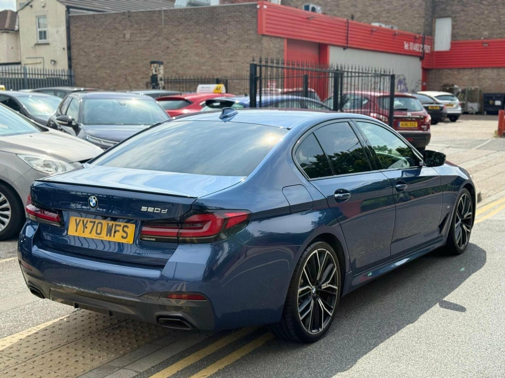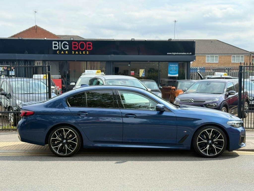 With only one owner form new and low mileage of just 40110 miles for a 2021 registration, this BMW 5 Series 520d M Sport is a superb example of a modern saloon. The vehicle is equipped with a 2.0L Diesel Hybrid engine and meets the Euro 6 emission standards. As an M Sport model, it boasts a sporty trim and includes the M Sport Pro Package. The car rides on striking 20in Alloy Wheels - M Light Y-Spoke Style 846 Bicolour Jet Black, complete with mixed tyres and run-flat technology. Inside, youll find the convenience of automatic air conditioning with dual-zone climate control, as well as a rain sensor that automatically activates the headlights. The BMW Live Cockpit Professional, including Bluetooth connectivity, ensures a connected and modern driving experience. The large boot space makes this vehicle more practical than similar vehicles, offering ample room for luggage, shopping, or equipment. The comprehensive features, combined with its excellent condition, make this BMW 5 Series a compelling choice for those seeking a blend of performance, luxury, and practicality. It also comes with Apple CarPlay and android auto. , Warranty , Long MOT, Finance available, Nationwide delivery