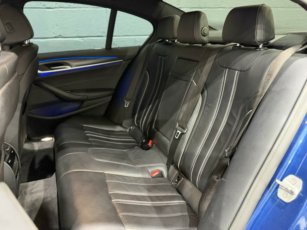 This 2020 BMW 5 Series 520d M Sport offers an exceptional blend of performance and efficiency, featuring a sophisticated 2.0L Diesel Hybrid engine that meets Euro 6 emissions standards. As an M Sport variant, it boasts a dynamic design and enhanced driving experience. Inside, you'll find the advanced BMW Live Cockpit Professional with Bluetooth connectivity, ensuring seamless integration of your devices. Comfort is paramount, with automatic dual zone climate control and a rain sensor that automatically activates the LED headlights, providing clear visibility in all conditions.The M Sport trim level further enhances the appeal of this 5 Series, making it stand out from other vehicles in its class. Practicality is also a key consideration, with ample boot space designed to accommodate your luggage and shopping needs with ease. Navigating tight spaces is made simple thanks to the comprehensive Parking Assistant, which includes front and rear sensors along with a rear camera. These features collectively demonstrate the thoughtful engineering and premium quality that BMW is renowned for, offering a superior driving and ownership experience. n protection glass, dakota leather - black with black exclusive stitching and contrast piping, 19in alloy wheels - m light y-spoke style 845 bicolour jet black with mixed tyres, 32gb hard disc drive hdd memory, active air stream kidney grille - high gloss black, active guard, air conditioning - automatic - dual zone control, airbags, alarm system - thatcham 1 with remote control and engine immobiliser, all round anti-corrosion system, ambient lighting, armrests, automatic start-stop button, bmw connected package professional, bmw connecteddrive online services, bmw connecteddrive services, bmw individual headliner - anthracite, bmw individual high-gloss shadowline, bmw live cockpit professional, bmw teleservices, brake pad wear indicator, child seat isofix attachment - outer rear seats - includes top tether, crash sensor - activating central locking - hazard warning lights - fuel cut off - interior lights, cruise control with brake function, cup holders - front x2 and rear x2, dab digital radio, dsc - dynamic stability control - stabilises the vehicle in extreme situations - controls traction, daytime running lights - led, deformation zones - front and rear, drive performance control with eco pro - comfort and sport modes, driving experience switch, dynamic brake lights with led technology, eps - electric power steering with servotronic, electric windows - front and rear with open-close fingertip control - anti-trap facility and comfort closing function, electro-mechanical parking brake with automatic drive-away release and auto-hold function, engine cover with twinpower turbo designation, enhanced bluetooth with wireless charging, exhaust tailpipe - visible - trapezoidal, expanded exterior mirror package, exterior door handle illumination, exterior mirrors - electrically adjustable and heated includes integrated direction indicators and automatic parking function, favourite buttons, first aid kit and warning triangle, floor mats - velour, follow me home headlight function, footwell lights - front and rear, glove compartment - lockable and illuminated, head restraints - front anti-whiplash, instrument panel in sensatec - artificial leather, intelligent emergency call, interior rear-view mirror with automatic anti-dazzle function, interior trim - aluminium rhombicle smoke grey with highlight trim finisher pearl chrome, led headlights, locking wheel bolts, lumbar support - driver and front passenger, m aerodynamics package, m designation on front side panels - left and right, m designation on front side panels - left and right - chrome, m door sill finishers, m leather steering wheel, m specific floor mats, m specific pedals, m specific steering wheel, m sport braking system, m sport package, m sport suspension, multi-function controls for leather steering wheel, multi-functional instrument panel, obc - on-board computer, obd - on board diagnosis, oil sensor for level and grade, parking assistant, power sockets 12v - 1x front - 1x rear, preparation for high-beam assistant, rain sensor with automatic headlight activation, reading lights - front, rear doors with mechanical childproof lock, rear seat headrests - three, seat heating - front, seats - front with partial electric adjustment, side impact protection, speed limit function, sport seats - front, steering column with adjustable height and length - activation via lateral lever on steering column, steptonic transmission with gearshift paddles - 8-speed with steptronic manual gearshifting by means of paddles on the steering wheel, stereo speaker system, tpms - tyre pressure monitoring system, three-point seat belts, two tone horn, tyre repair kit, windscreen washer jets - heated, idrive touch controller with shortcut buttons
