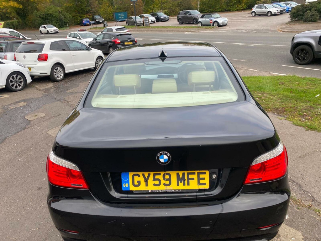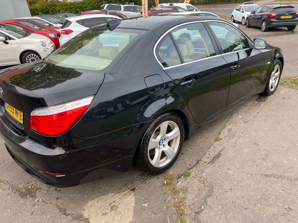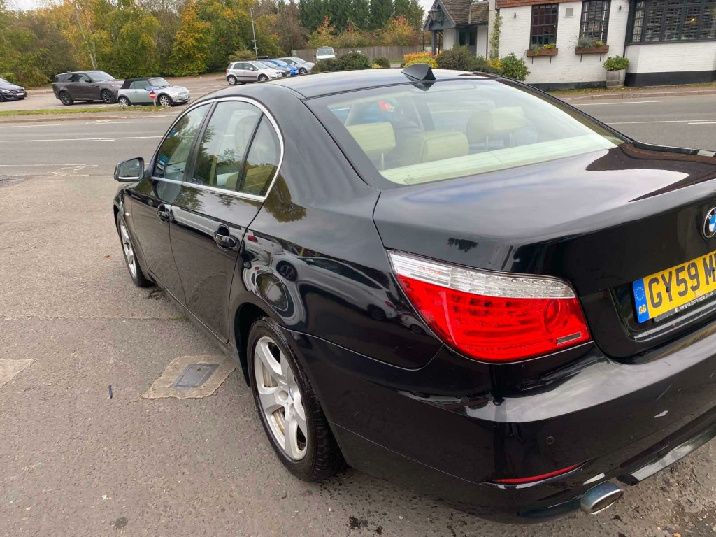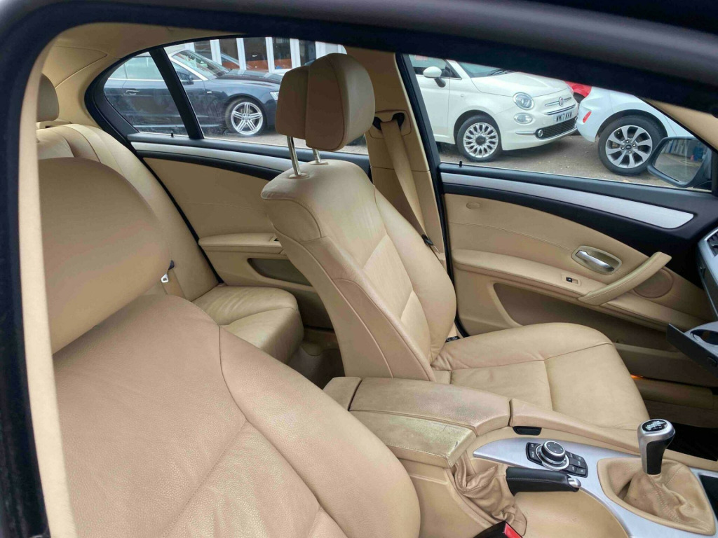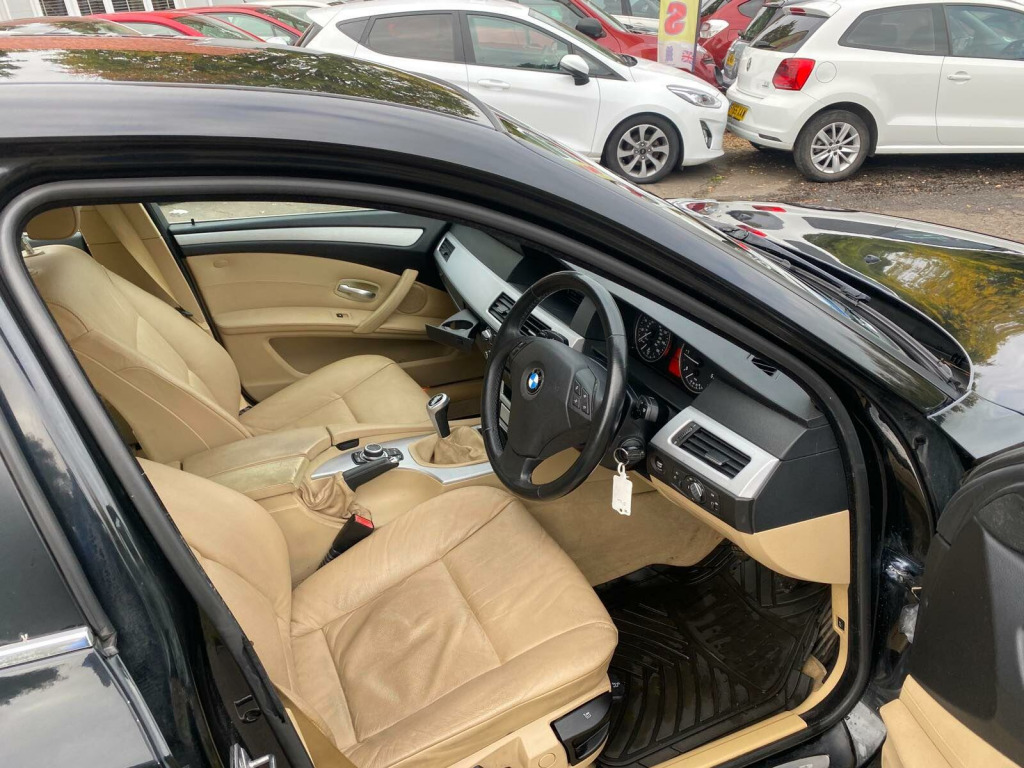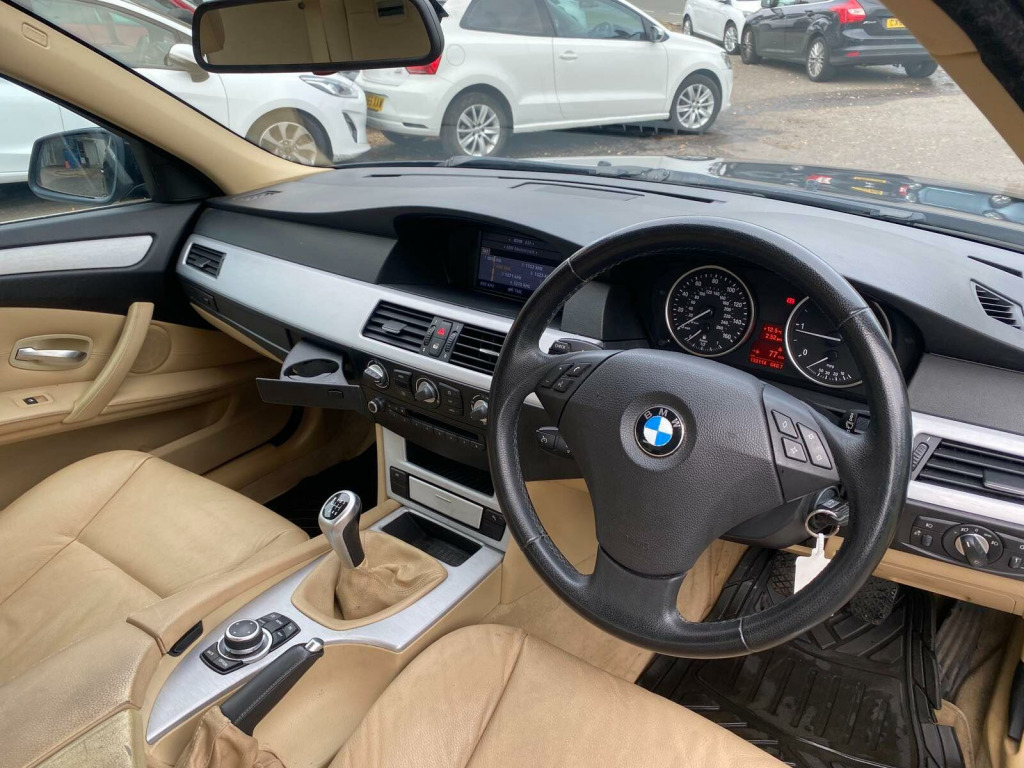 The car has got: 6 speed, AIR CON, AUTO CLIMATE CONTROL, AUTOMATIC LIGHTS,AUTOMATIC WIPERS, FULL LEATHER TRIM, RADIO CD This 2009 BMW 5 Series 520d SE Business Edition boasts a clear vehicle history and has been owned by just one person, offering peace of mind. This well maintained saloon features a 2.0L diesel engine and comes in the desirable SE Business Edition trim. Inside, you'll find sophisticated brushed aluminium trim and automatic air conditioning with climate control, ensuring a comfortable journey for all occupants. The MOT is valid until August 2026, and while the service history is partial, the vehicle history check is clear.The BMW 5 Series 520d SE Business Edition stands out with its impressive fuel economy, achieving a remarkable 55 miles per gallon, which is better than many similar vehicles. This model also offers low CO2 emissions, making it an environmentally conscious choice. Furthermore, the generous boot space provides ample room for luggage or shopping, adding to its practicality for everyday use and longer trips. ushed aluminium trim, leather- dakota- beige, 17in alloy wheels - light v spoke style - 236, 17in star spoke alloy wheels- style 243, 3spoke multifunction leather steering wheel, automatic air conditioning, brushed aluminium trim when with nasca & exclusive leather, chrome exterior trim, dark poplar wood trim when with nasca & exclusive leather, delete smokers pack, headlight range control- electric, high gloss anthracite bamboo interior trim with nasca & exclusive leather, high gloss black interior, high gloss grey interior, light poplar wood trim when with nasca & exclusive leather, model designation deletion, part electric adjust front seats, runflat tyres, satnav business, smokers pack, through load system with ski bag