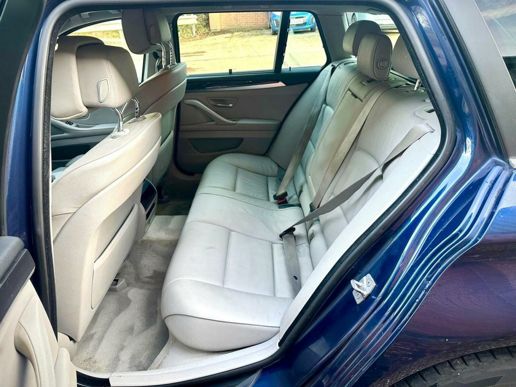 ++ Nationwide delivery available, virtual video viewings and a competitive range of finance solutions ++, BMW 5 Series 2.0 520d SE Touring – 128,000 Miles – Rare Everest Grey Dakota Leather – Professional Navigation, Just arrived – a very well-kept and nicely presented example of the BMW 520d SE Touring, offering both executive comfort and practicality. Covered 128,000 miles and backed by service history, this vehicle has had just 4 owners, with the last keeper owning it for almost 5 years – a clear sign of careful, long-term ownership. Powered by the 2.0 turbo diesel engine paired with an automatic gearbox, the car drives beautifully and combines ample performance with strong economy. Finished in a desirable colour combination with rare Everest Grey Dakota leather upholstery, this car boasts a fantastic spec, including:, BMW Professional Media & Navigation with larger widescreen display, Front & rear parking sensors with both audible and visual alerts, Factory privacy glass, Heated front seats, Electric tailgate, Dual-zone climate control, Cruise control, auto headlights & wipers, Multifunction steering wheel, Recently serviced and benefits from fresh rear brake pads as part of our pre-sale preparation. Supplied with:, 2 keys, Original book pack, Service history, Locking wheel nut, This is a very well-equipped, practical touring model thats been cared for throughout its life and is ready to drive away. ++This vehicle includes a 3 month GOLD level WARRANTY, we are an RAC approved dealer & all vehicles complete an 82 point check, are HPI clear, include 12 months MOT & 12 months RAC breakdown assistance. We operate from a modern indoor showroom, all PART EXCHANGES are considered & we offer a range of COMPETITIVE FINANCE solutions++