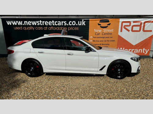 This 2018 BMW 5 Series 520i M Sport is presented with a full 12 months MOT for your peace of mind. As a Euro 6 compliant vehicle, it features a 2.0L petrol engine and is finished in the sporty M Sport trim. Inside, youll find a host of desirable features designed for comfort and convenience, including automatic air conditioning with climate control, a rain sensor that automatically activates the headlights, and front and rear parking distance control to assist with manoeuvring. Enjoy your journeys with heated front seats and seamless connectivity through the Bluetooth hands free system with USB audio interface. This BMW 5 Series offers practical benefits alongside its premium features, boasting a large boot space perfect for luggage or shopping. Its low CO2 emissions highlight its efficiency, making it a more economical choice compared to similar vehicles. The combination of its M Sport styling, advanced technology, and thoughtful features ensures a refined driving experience. We are proud to present this BMW 5 Series 2.0 520i GPF M Sport Auto Euro 6 (s/s) 4dr that comes with a service history for added peace of mind. It comes with 2 keys and has just been serviced. 12 months MOT included, You have the option to purchase RAC warranty with the option to extend.At New Street Car Centre we have over 25 years experience as the largest and most trusted used car dealership in Telford. We offer award winning customer service, great prices and excellent preparation standards. Each vehicle undergoes quality control inspections and a complimentary history check for your added peace of mind.we have also included additional specification but please always check the exact specification details with ourselves prior to purchase as models can vary